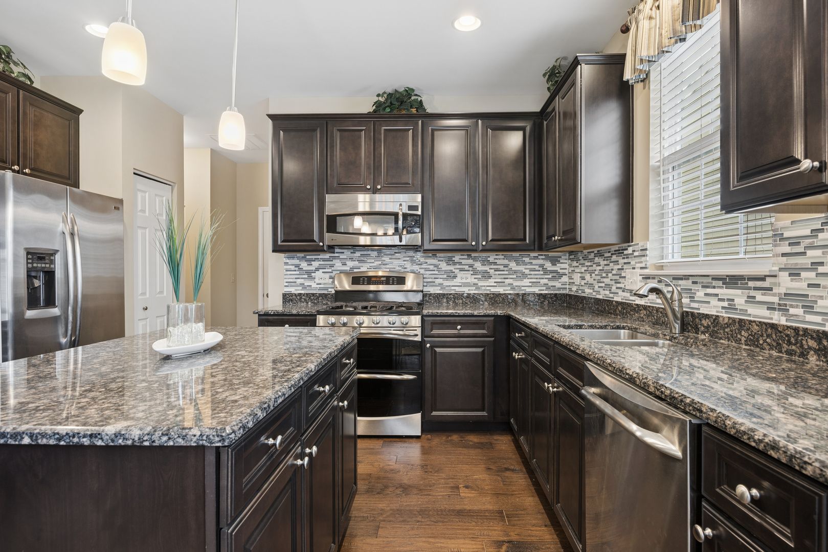- Range, Microwave, Dishwasher, Refrigerator, Washer, Dryer, Stainless Steel Appliance(s)