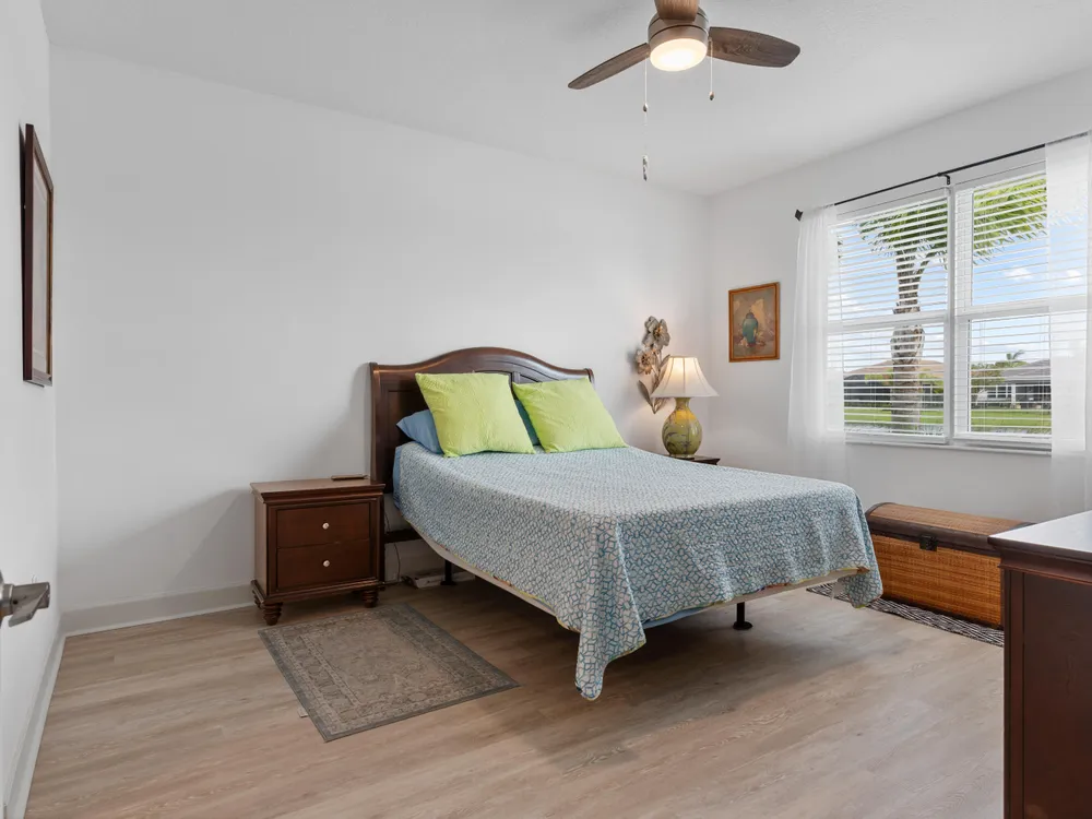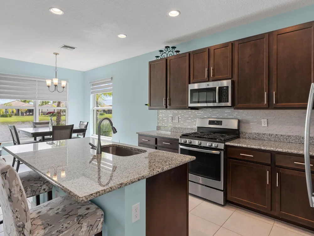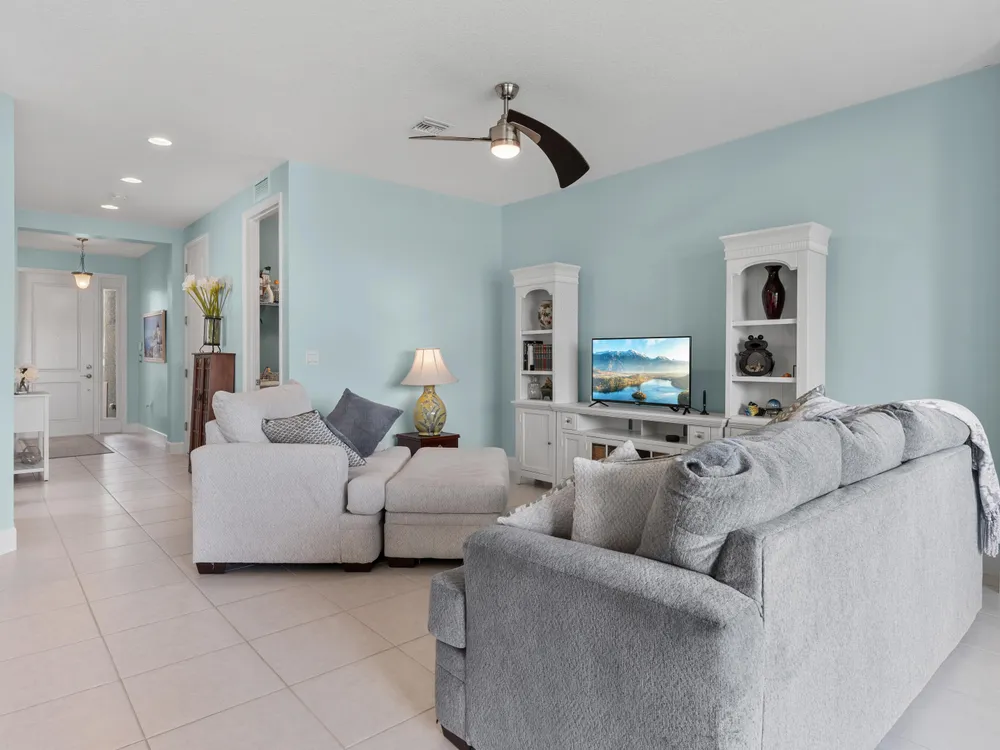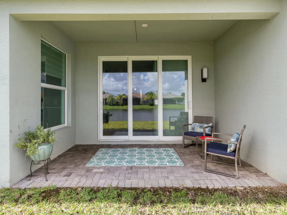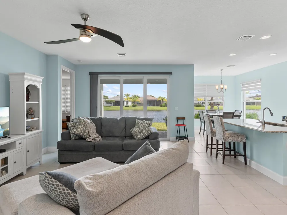 Welcome to the prestigious Valencia Cay 55+ community! This Ibis Model GL Home has many upgraded high-quality features inside with a gorgeous lake view outside. Built in 2019, this modern lake-front home offers 1,599 sq ft of beautifully designed living space. With 2 spacious bedrooms, 2 full baths, plus a den and an open floorplan. It is ideal for comfortable, low-maintenance living. Flooded with natural light, the interior showcases tile floors, impact-glass windows, a gourmet kitchen with granite surfaces and stainless appliances. Enjoy serene water views from your covered, screened patio and expanded outdoor area. Valencia Cay amenities include a 34,000 sq ft clubhouse, resort-style pool, fitness social rooms, tennis, pickleball and more. Live your best Florida lifestyle here!