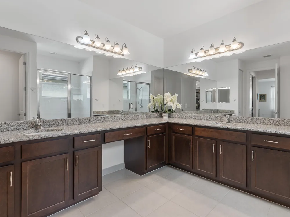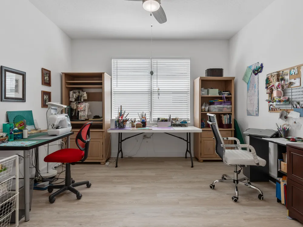 - Closet Cabinetry, Entry Level Living Area, Kitchen Island, Split Bedrooms, Walk-In Closet(s), Home Office, Family Room, Great Room, Storage, Breakfast Area, Family/Dining Room, Blinds, Impact Glass, Single Hung Wood Window(s), Dual Sinks, Primary Downstairs, Sitting Area In Primary Bedroom