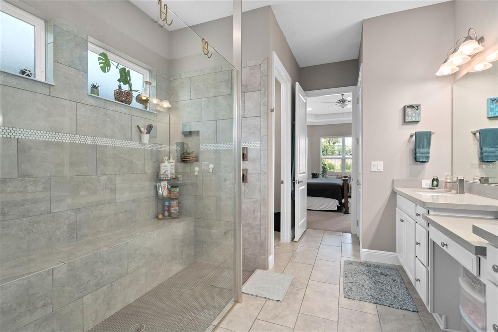 - Ceiling Fan(s), Crown Molding, High Ceilings, Open Floorplan, Main Level Primary, Solid-Wood Cabinets, Split Bedrooms, Stone Counters, Thermostat, Tray Ceiling(s), Walk-In Closet(s), Window Treatments
