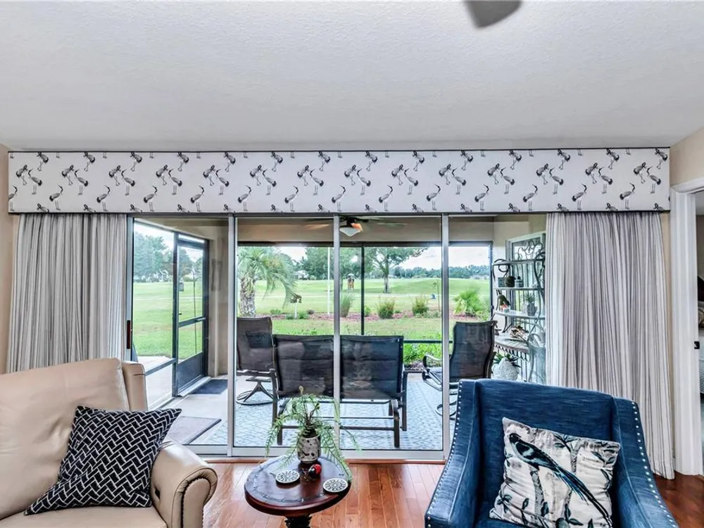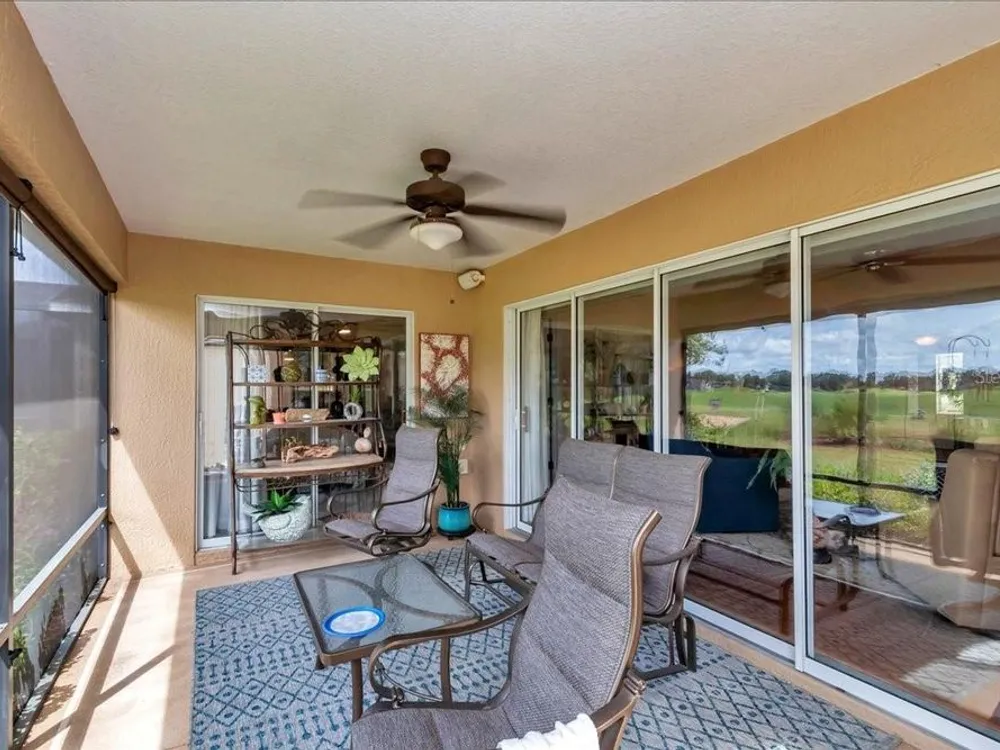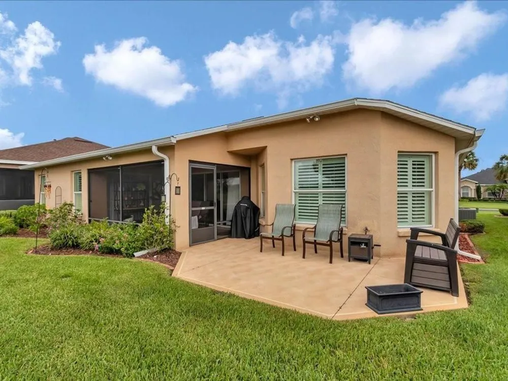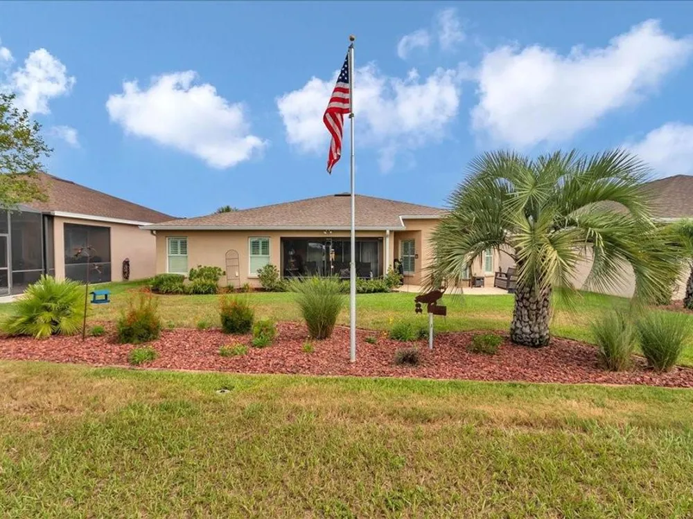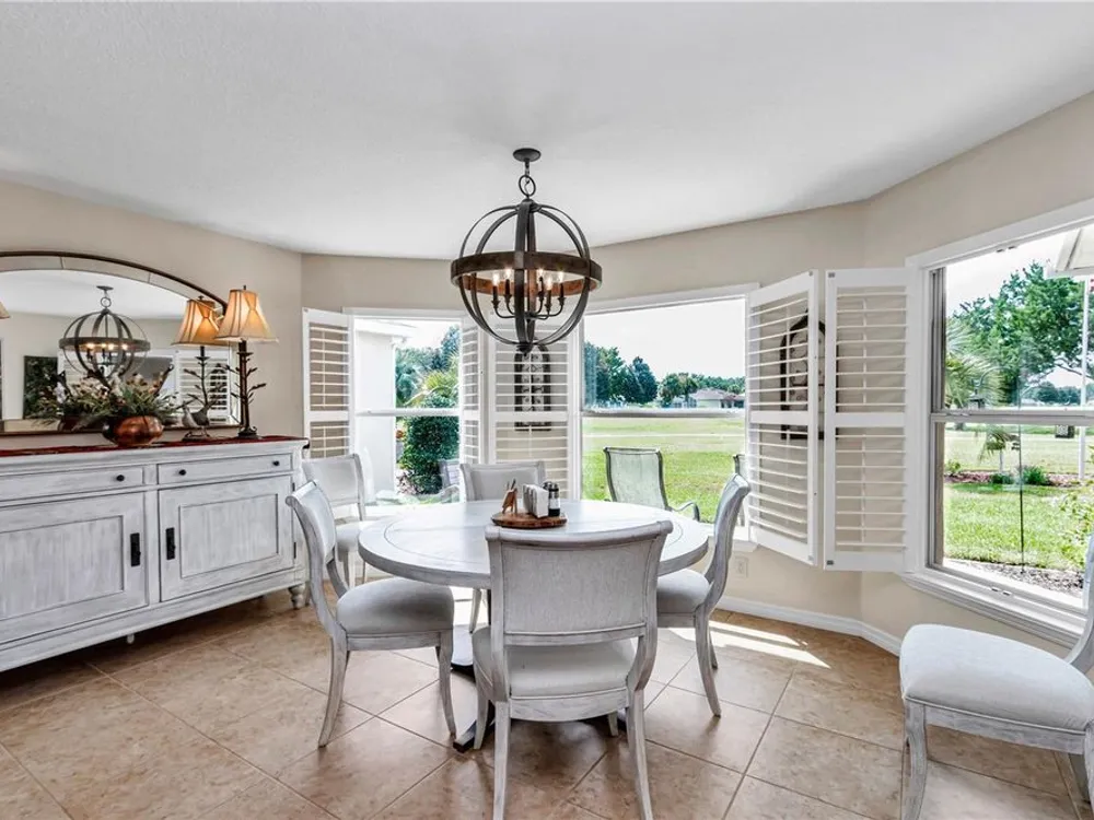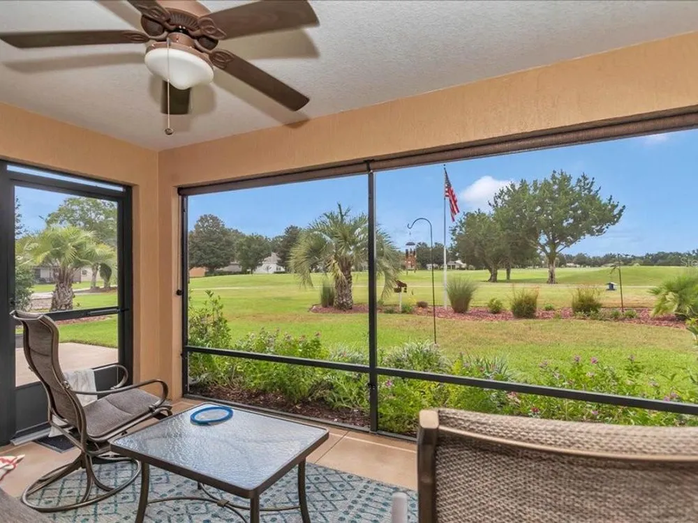 Spectacular Golf Course Views & True Golfer’s Paradise! From the moment you open the front door, you’re greeted with sweeping fairway views that set the tone for this beautifully expanded Monteverde Model II. This well maintained 3 bedroom, 2.5 bath home has been thoughtfully upgraded for both elegance and comfort, offering an unmatched Florida golf lifestyle. The remodeled chef’s kitchen boasts quartz countertops, matching backsplash, stainless steel appliances, breakfast bar, and a charming breakfast nook with panoramic golf views as your daily backdrop. The spacious living room features stacking sliders that open fully to the screened lanai, creating seamless indoor outdoor living, plus an additional open patio perfect for grilling and entertaining. The primary suite is a private retreat with a luxuriously remodeled spa style bath, large tiled shower with built in bench, and high end finishes. The guest bedroom's plush, high end carpet; one doubles perfectly as a home office with custom built-ins. Notable features include plantation shutters, a surround sound system, a convenient half bath near the kitchen and garage, laundry sink, epoxy-coated garage floors, and a dedicated golf cart garage for easy course access. Located in the highly desirable 55+ Summer Glen golf community, residents enjoy a championship golf course right in their backyard, a newly opened on-site restaurant, fitness center, pool, guard-gated security, social events, and HOA coverage for lawn mowing/edging, high speed internet, TV, and more, making every day feel like a vacation. ? This home is the perfect fit for avid golfers who dream of fairway views, low-maintenance living, and resort-style amenities, all in one of Ocala’s most beloved golf communities.