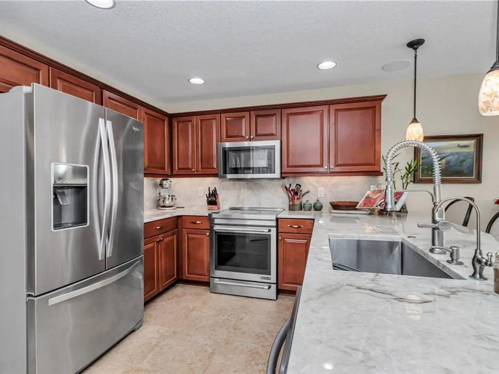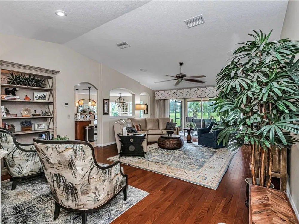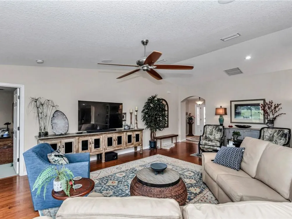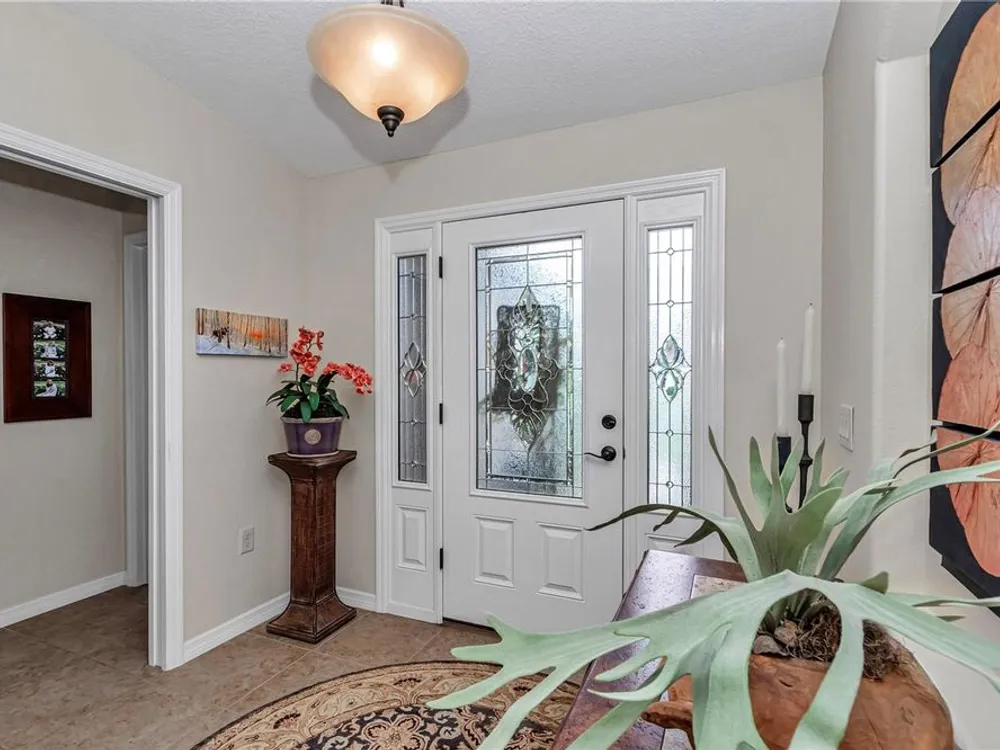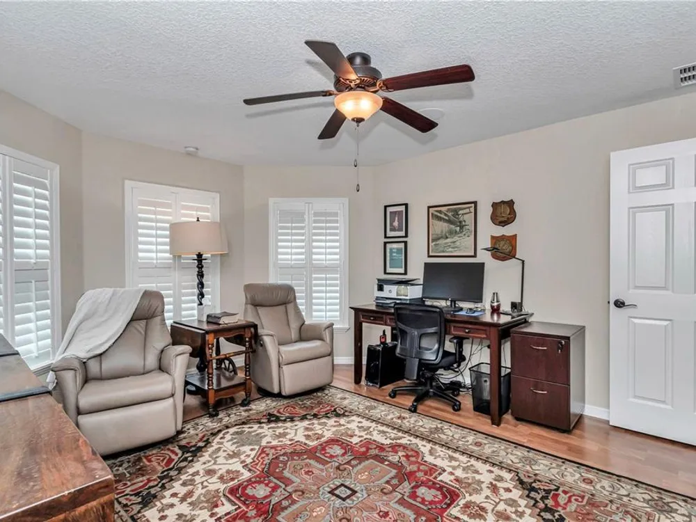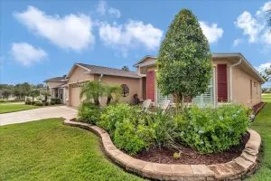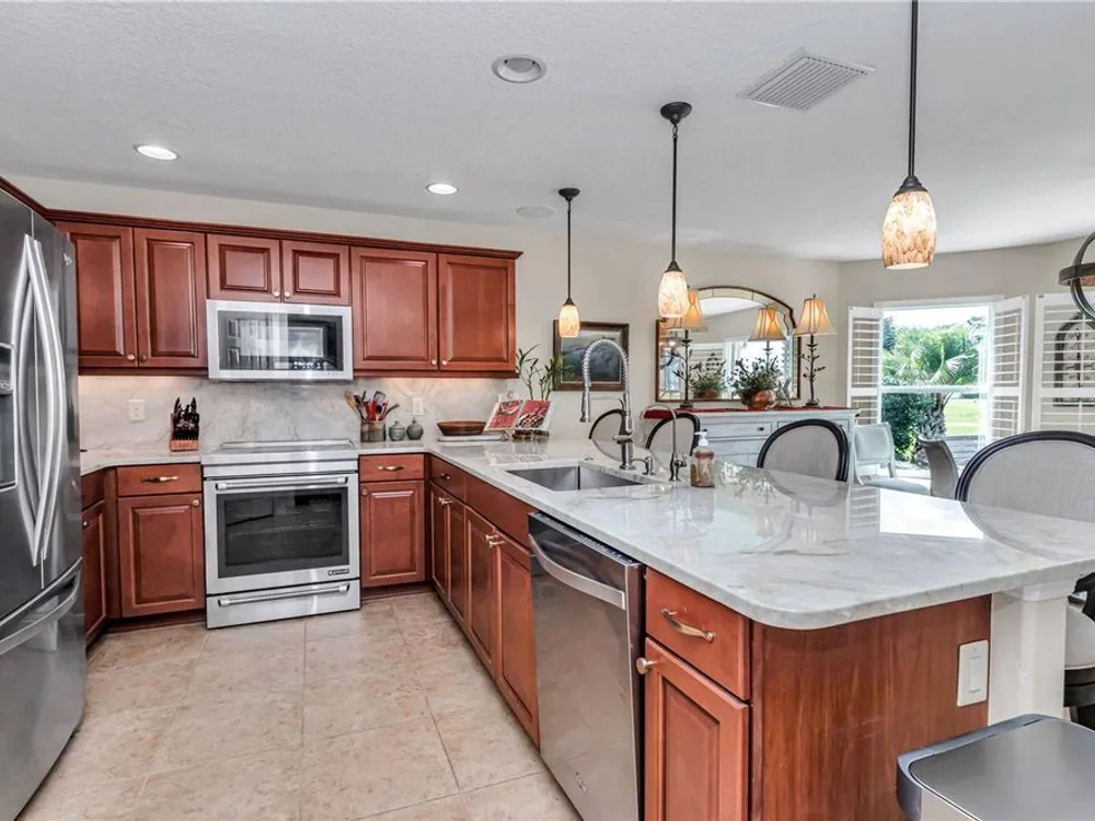 Spectacular Golf Course Views & True Golfer’s Paradise! From the moment you open the front door, you’re greeted with sweeping fairway views that set the tone for this beautifully expanded Monteverde Model II. This well maintained 3 bedroom, 2.5 bath home has been thoughtfully upgraded for both elegance and comfort, offering an unmatched Florida golf lifestyle. The remodeled chef’s kitchen boasts quartz countertops, matching backsplash, stainless steel appliances, breakfast bar, and a charming breakfast nook with panoramic golf views as your daily backdrop. The spacious living room features stacking sliders that open fully to the screened lanai, creating seamless indoor outdoor living, plus an additional open patio perfect for grilling and entertaining. The primary suite is a private retreat with a luxuriously remodeled spa style bath, large tiled shower with built in bench, and high end finishes. The guest bedroom's plush, high end carpet; one doubles perfectly as a home office with custom built-ins. Notable features include plantation shutters, a surround sound system, a convenient half bath near the kitchen and garage, laundry sink, epoxy-coated garage floors, and a dedicated golf cart garage for easy course access. Located in the highly desirable 55+ Summer Glen golf community, residents enjoy a championship golf course right in their backyard, a newly opened on-site restaurant, fitness center, pool, guard-gated security, social events, and HOA coverage for lawn mowing/edging, high speed internet, TV, and more, making every day feel like a vacation. ? This home is the perfect fit for avid golfers who dream of fairway views, low-maintenance living, and resort-style amenities, all in one of Ocala’s most beloved golf communities.