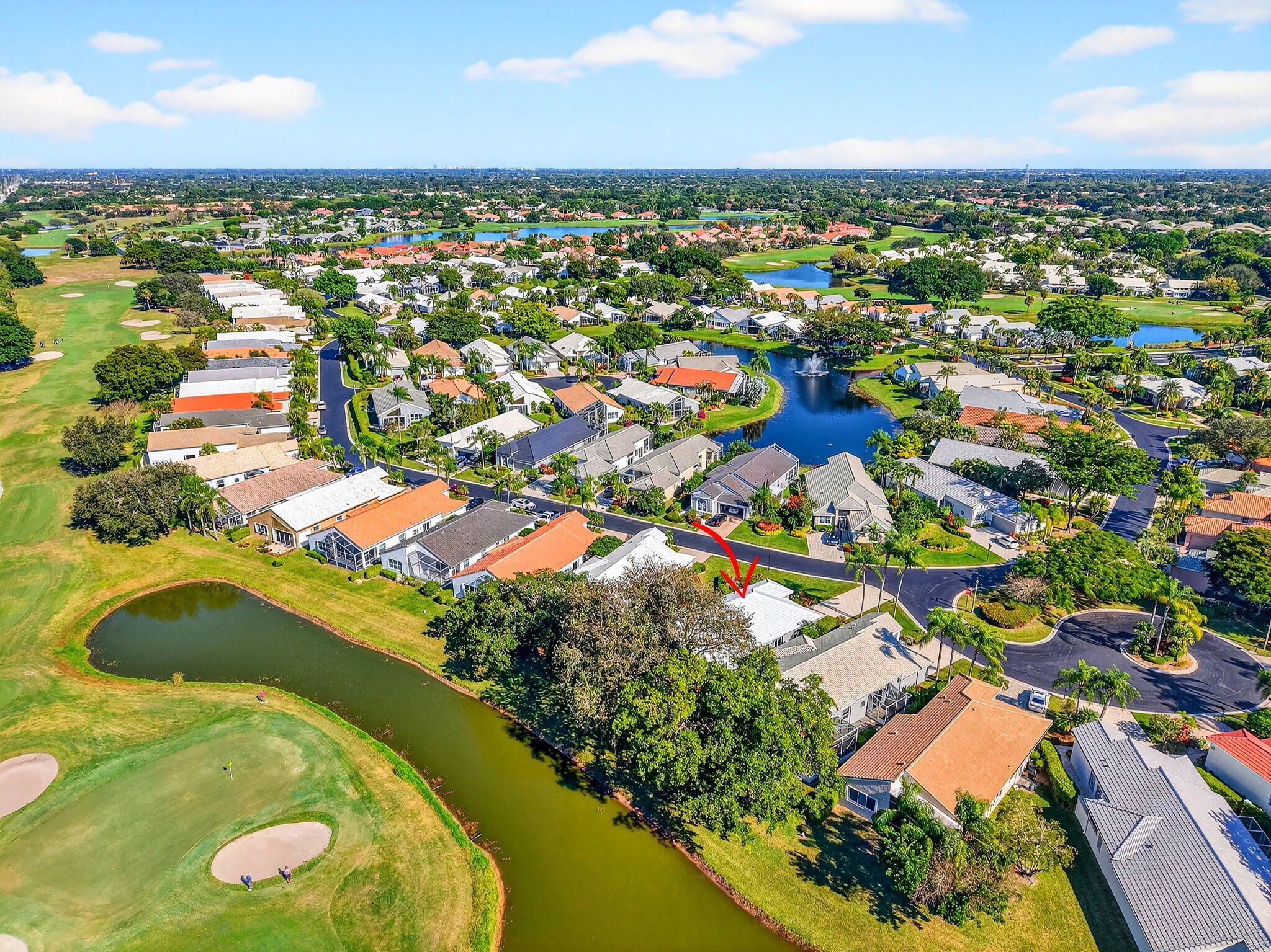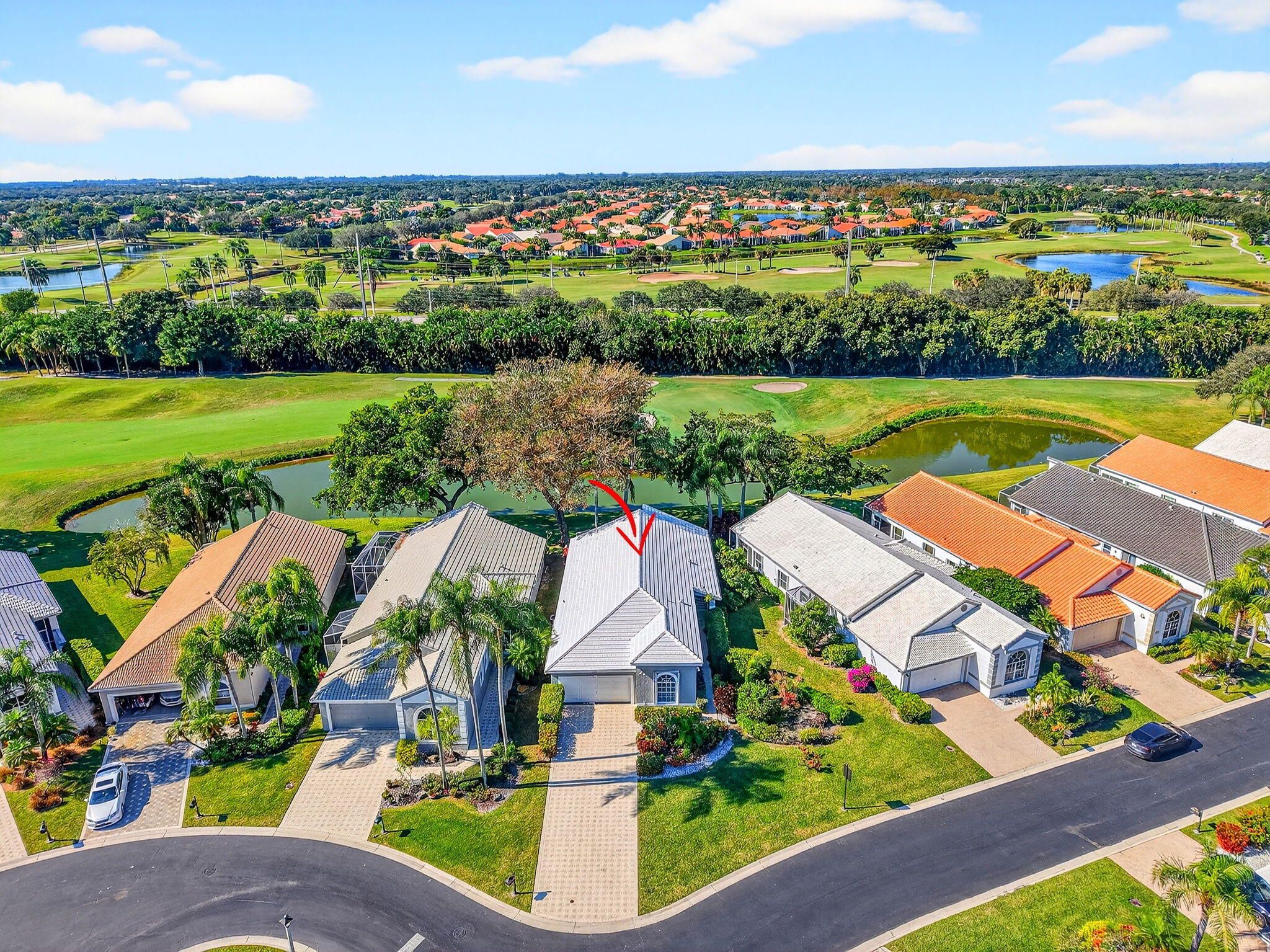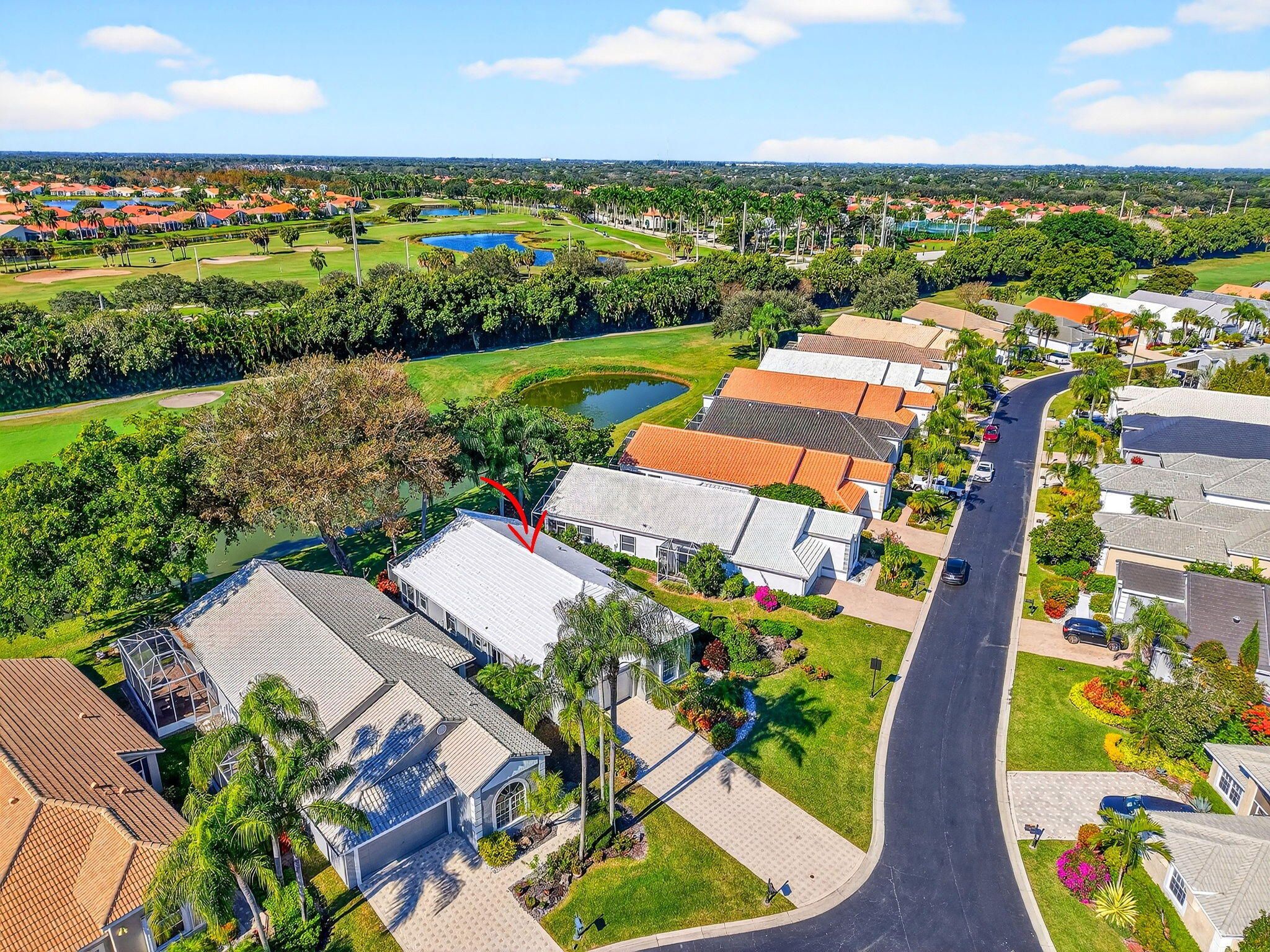 NEW ROOF & HVAC (2025)! This freshly painted and well-maintained 3-bedroom, 2-bath home is tucked away on a quiet cul-de-sac in the highly desirable Hampton Fairways section of Indian Spring Country Club—a gated 55+ community where membership is optional and peace of mind starts at the manned security gate. Enjoy golf course and water views from your screened-in lanai, perfect for relaxing mornings or tranquil evenings. The home features accordion hurricane shutters, a 2017 water heater, brand-new HVAC, and a brand-new French door refrigerator. The kitchen was tastefully updated in 2014, featuring granite countertops, a center island, and a smart layout for both entertaining and everyday living. The third bedroom, with elegant French doors, offers flexible use as a den, office or guest room tailored to your needs. The community clubhouse, heated pool, spa, full kitchen, and meeting room are all within easy walking distance, adding convenience and a vibrant social atmosphere to this exceptional home. Don't miss your chance to own a move-in-ready property with major upgrades, and a prime location in one of Boynton Beach's most sought-after active adult communities.