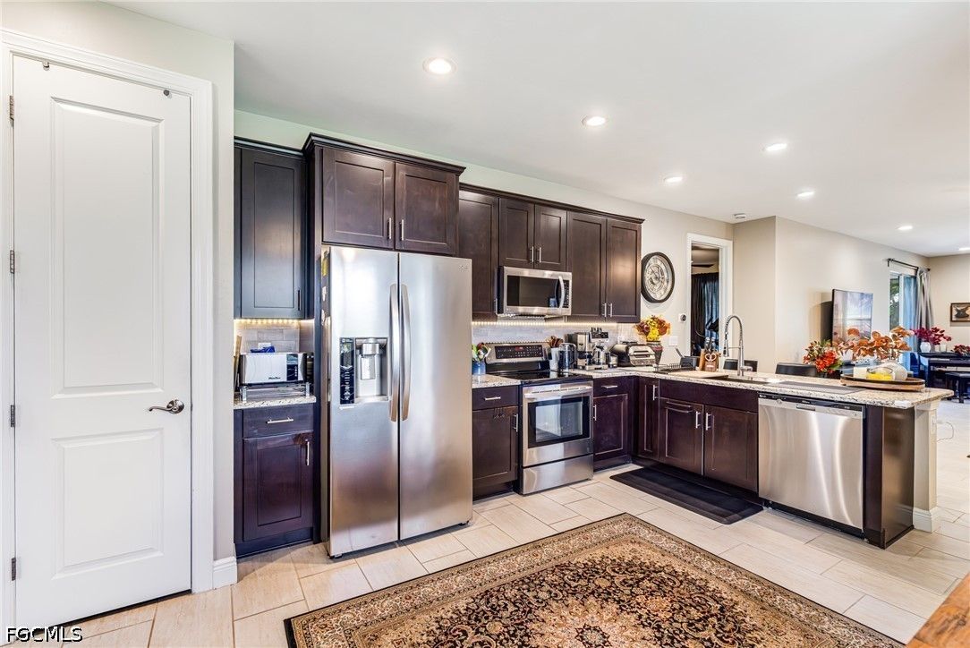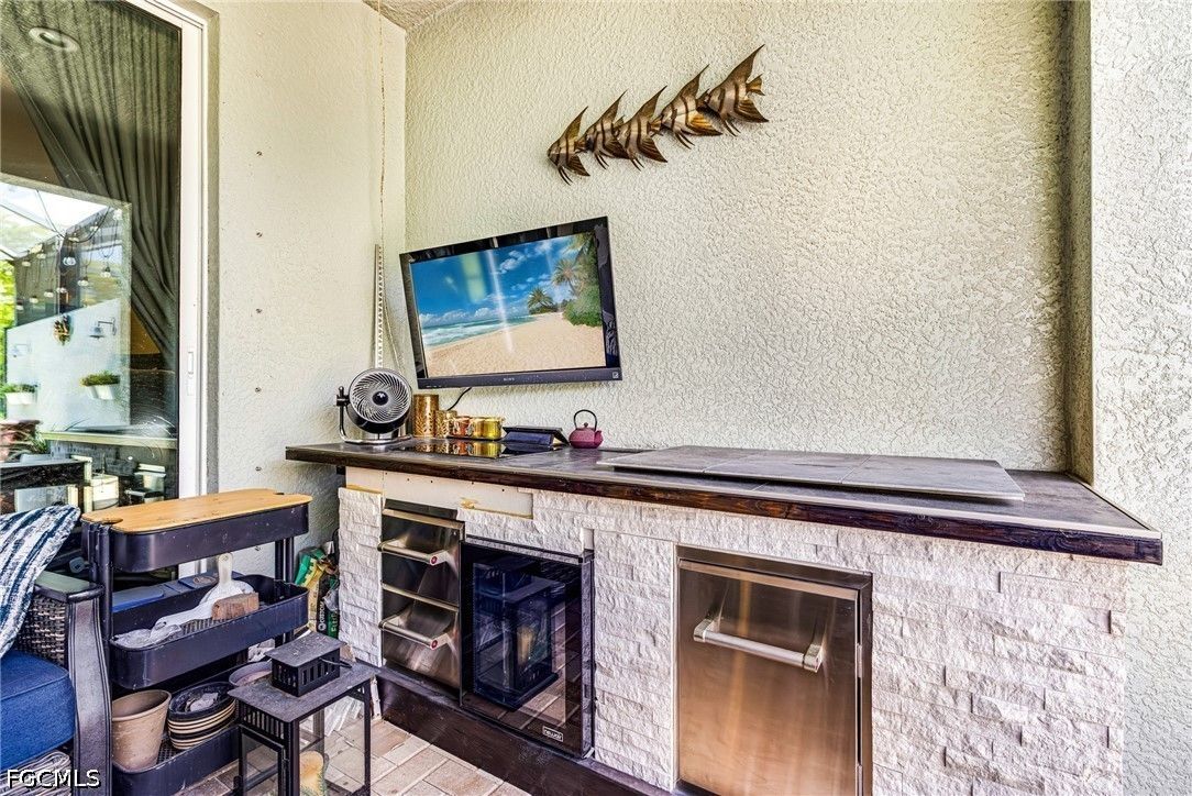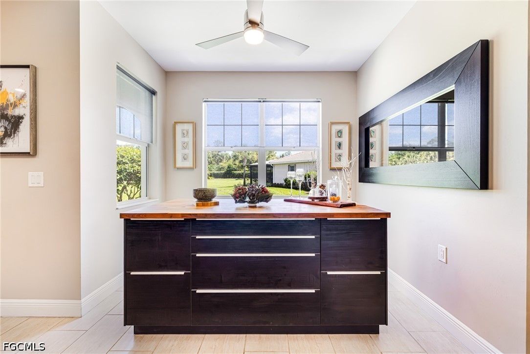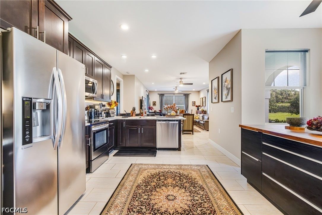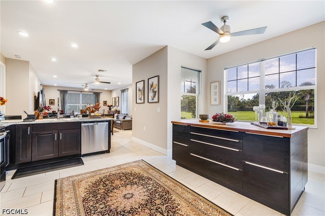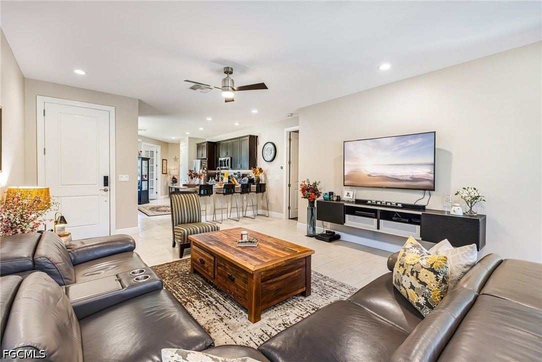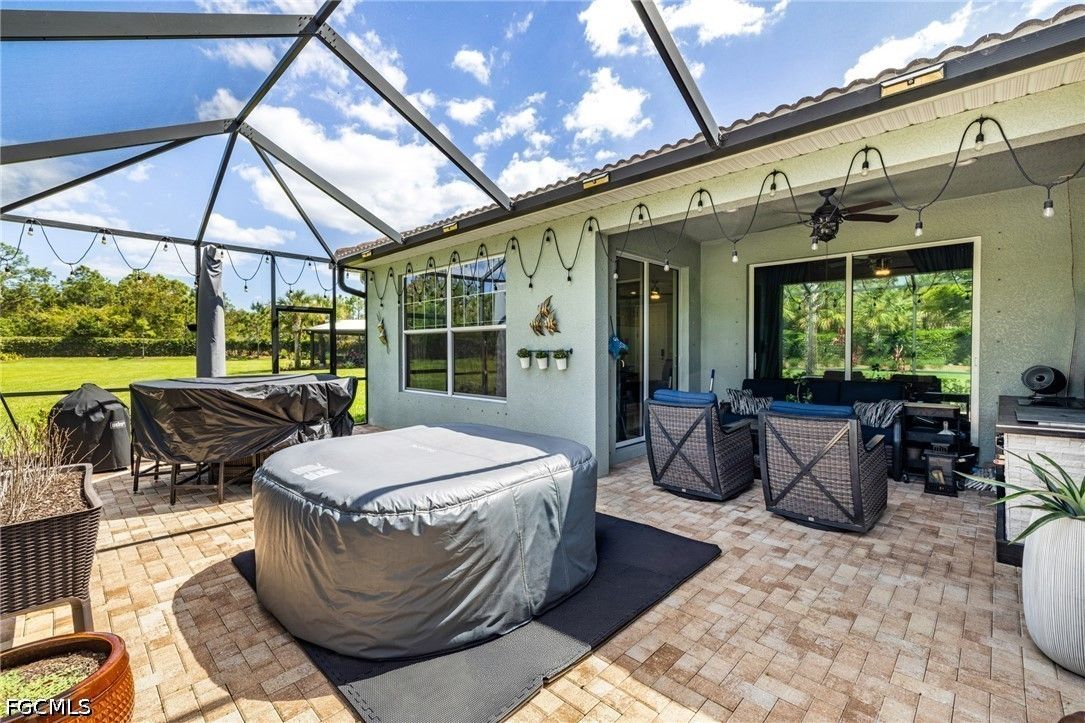 Welcome to 11921 Grosseto Ct in the highly sought-after 55+ golf community of Pelican Preserve, where comfort, style, and resort living come together. This well-maintained 3-bedroom, 2-bath home offers a peaceful backyard view, perfect for relaxing or entertaining. From the moment you arrive, you’ll appreciate the screened entry and glass-insert front door, creating a bright and welcoming first impression. Inside, the home features tile flooring throughout the main living areas and crown molding in the living room, adding a touch of elegance. The primary and guest bedrooms are finished with luxury laminate flooring for both style and durability. The kitchen is designed for both functionality and everyday living, offering beautiful cabinetry, an island with convenient pull-out shelves, and ample space to cook and gather. Step outside to the lanai and enjoy your own private retreat. The outdoor kitchen makes entertaining easy, while the installed jacuzzi provides the perfect place to unwind. A portable home generator is also included, offering added peace of mind. Pelican Preserve is a nationally recognized active adult community known for its exceptional amenities and vibrant lifestyle. Residents enjoy access to 3 pools, tennis, pickleball, bocce, softball, a fitness center, movie theater, billiards, hobby rooms, and a theater. Dining options include the popular Flip Flops outdoor restaurant and Destinations indoor dining. The amenity center features a library, card rooms, and a coffee center, ideal for socializing with neighbors and friends. For golf enthusiasts, the community offers a 27-hole private golf club with optional membership. Conveniently located just a short drive to RSW Airport, shopping, dining, and the Gulf Coast’s beautiful beaches, this home offers the perfect combination of location and lifestyle. Furniture is negotiable, making this a true move-in-ready opportunity to start enjoying everything Pelican Preserve has to offer.