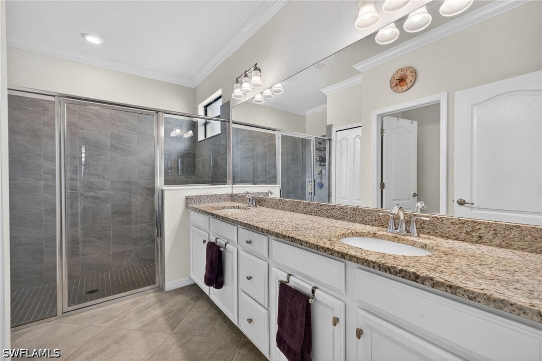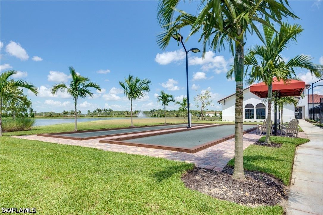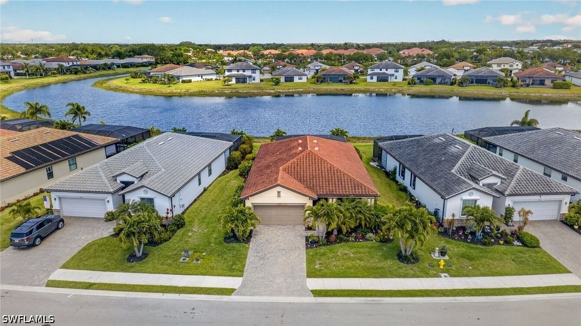 Discover resort-style living in this stunning one-story home located in the highly sought-after Arborwood Preserve community of Fort Myers, in the sought-after Tree Line Corridor. This spacious 3-bedroom, 3-bath residence features an inviting heated pool and spa on an extended lanai, perfect for relaxing or entertaining your guests. The second bedroom features en-suite bathroom suitable for guests or multi-generational living. Enjoy peace of mind with accordion shutters on all windows and the front door, plus electronic Storm Smart shades on the lanai for added comfort and protection. Inside, you’ll find upgraded tile flooring throughout the entire home, and ceiling fans in every room. The lanai is enhanced with custom lighting, creating the perfect setting for evening gatherings. Neutral color palette throughout. Shows like new! Upgrades include: Kinetico water system, Ring cameras and doorbell, pool automations, and enhanced landscaping. Located in a vibrant, gated community with resort-style amenities including a clubhouse, outdoor bar & grill, fitness center with cardio/strength equipment, yoga room, coffee lounge, movie theater, arts and crafts room, and lighted tennis, bocce and pickleball courts. This home offers convenient access to I-75, Gulf Coast Town Center, RSW International Airport, FGCU, JetBlue Park, and wide range of shopping and dining. Whether you want to take advantage of an active lifestyle, or you just want to relax, this community is resort style living at it finest.