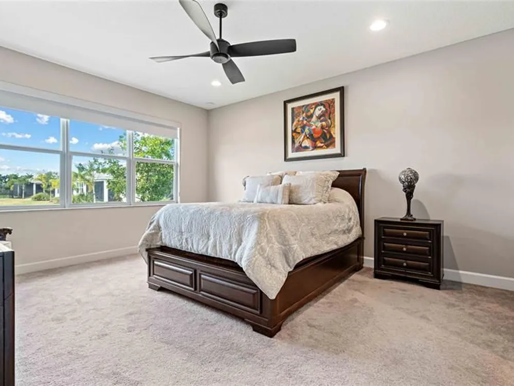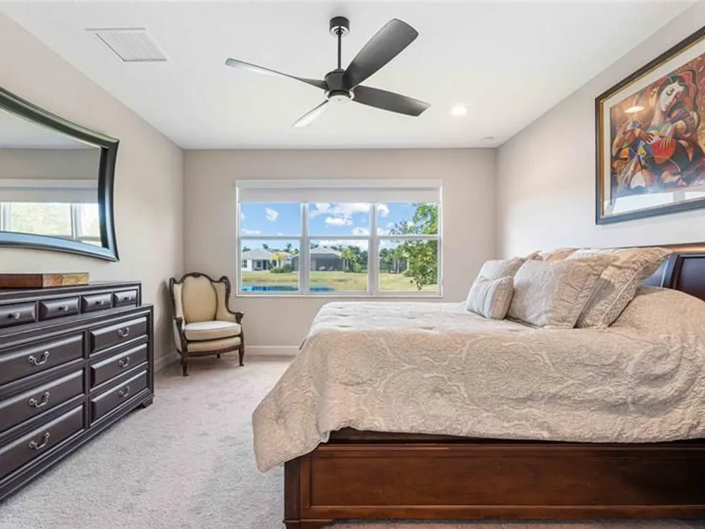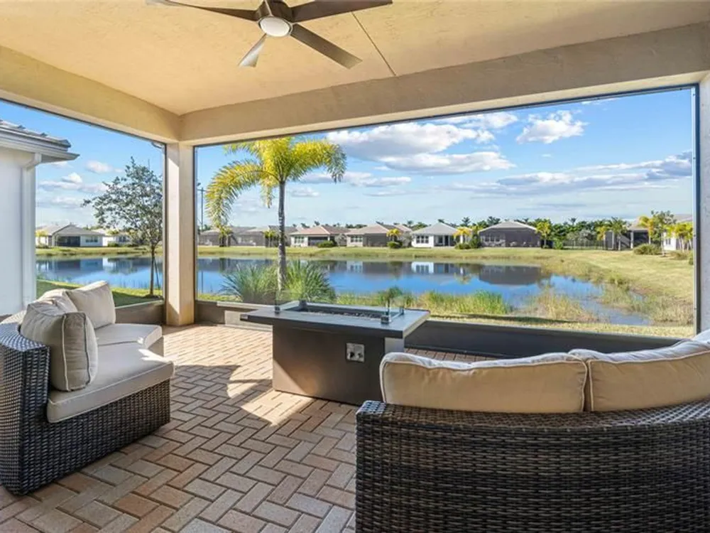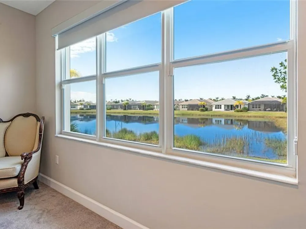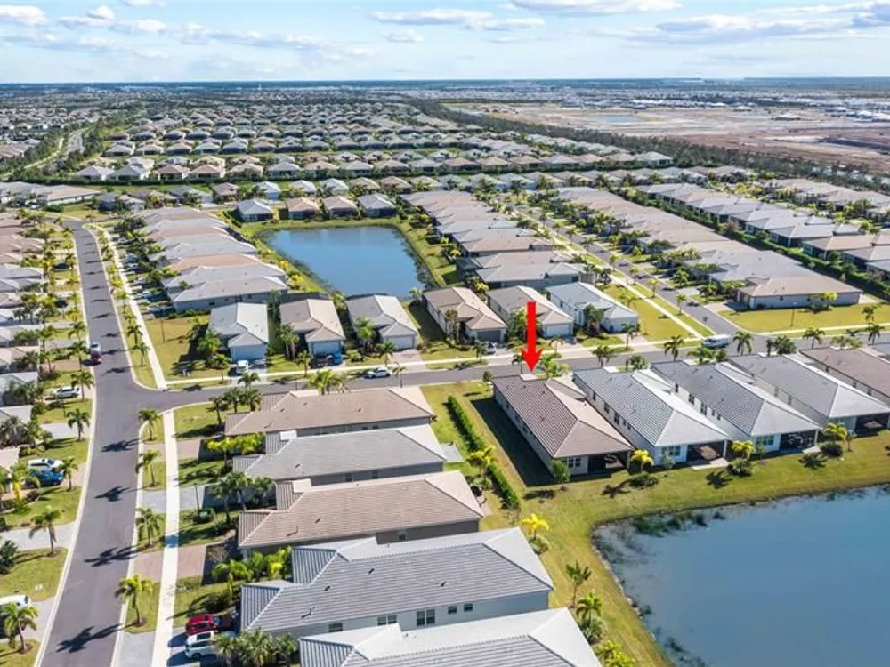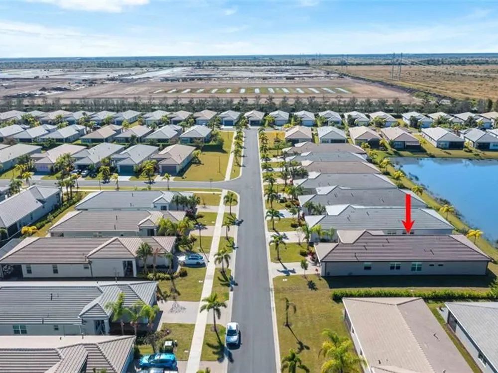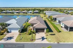 Discover the elegance of this move-in ready, water view, TRIBECA model (3/2.5/2) is located in GL's Valencia Grove @ Riverland in the heart of Tradition. This impeccable home is custom designed with wood-laminate flooring, impact windows, custom window treatments, quartz kitchen countertop, upgraded kitchen & bathroom, walk-in closets, mirrored closet doors, customized MB closets, recessed hi-hat lighting, ceiling fans, extended bathroom mirrors, frameless-glass shower, upgraded laundry room, epoxy garage floor, large screened-covered patio, all located on an oversized-private corner lot. 24/7 manned guardhouse. Grove Clubhouse has restaurant, poolside bar, Olympic pool, cabanas & spa. Riverland amenities has 53 pickleball courts, 15 tennis courts, 20 Bocce crts with Arts/Culture ctr.