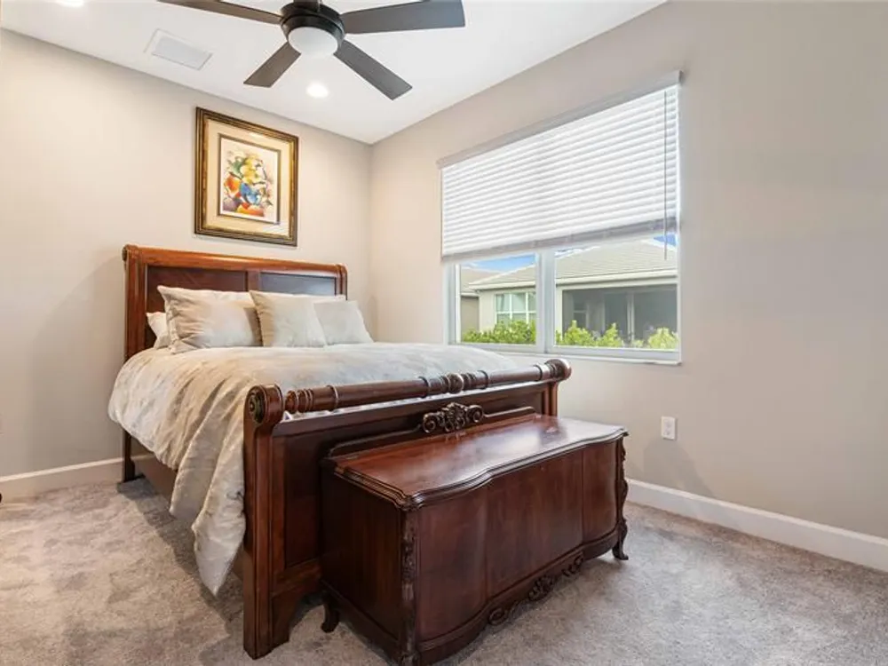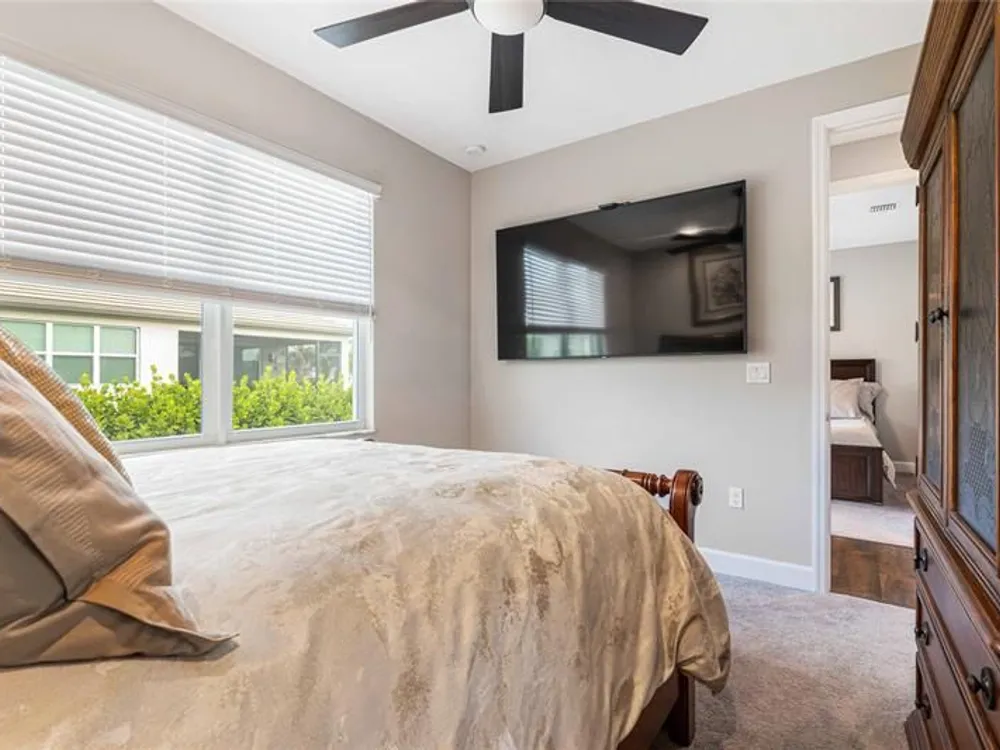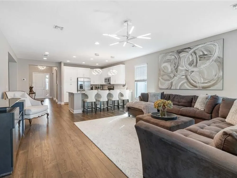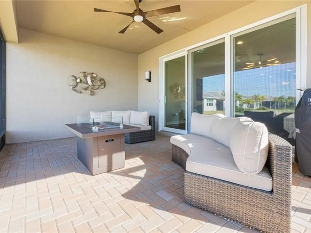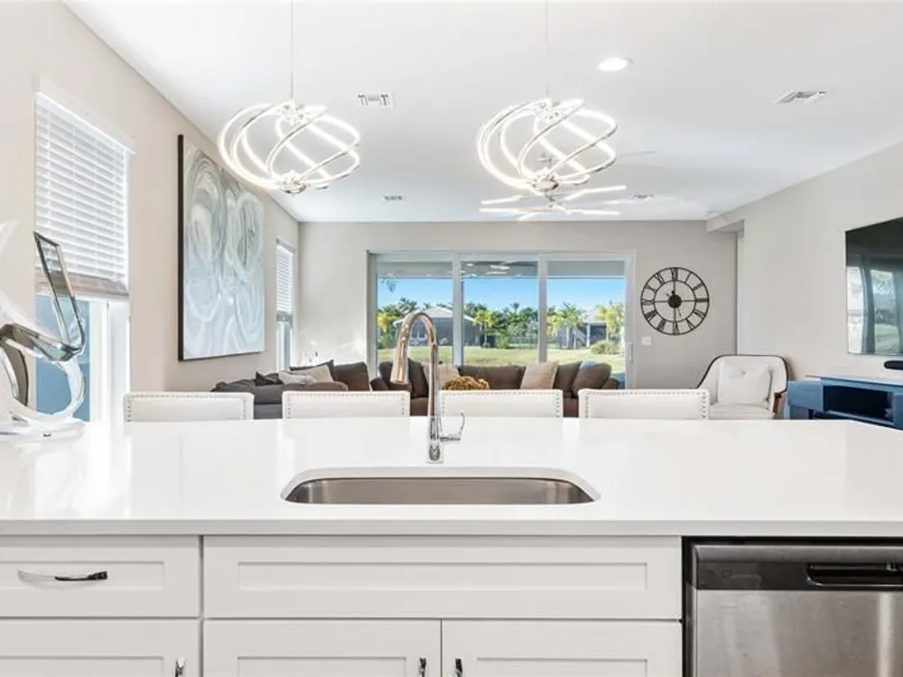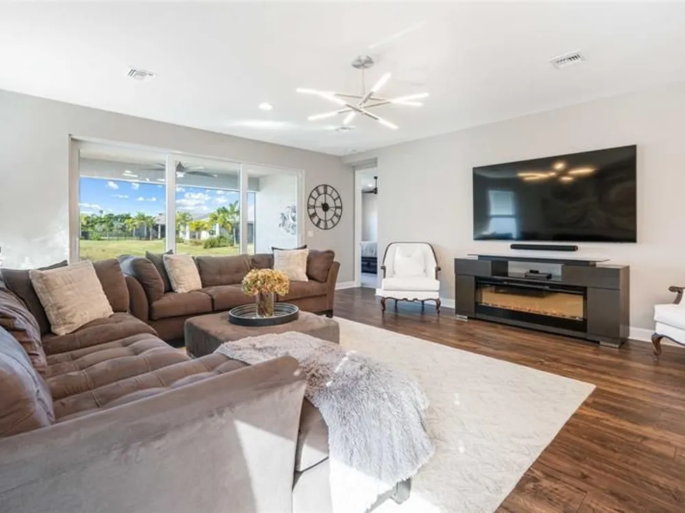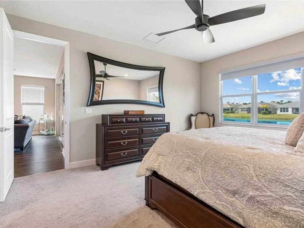 Discover the elegance of this move-in ready, water view, TRIBECA model (3/2.5/2) is located in GL's Valencia Grove @ Riverland in the heart of Tradition. This impeccable home is custom designed with wood-laminate flooring, impact windows, custom window treatments, quartz kitchen countertop, upgraded kitchen & bathroom, walk-in closets, mirrored closet doors, customized MB closets, recessed hi-hat lighting, ceiling fans, extended bathroom mirrors, frameless-glass shower, upgraded laundry room, epoxy garage floor, large screened-covered patio, all located on an oversized-private corner lot. 24/7 manned guardhouse. Grove Clubhouse has restaurant, poolside bar, Olympic pool, cabanas & spa. Riverland amenities has 53 pickleball courts, 15 tennis courts, 20 Bocce crts with Arts/Culture ctr.