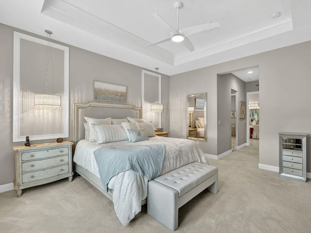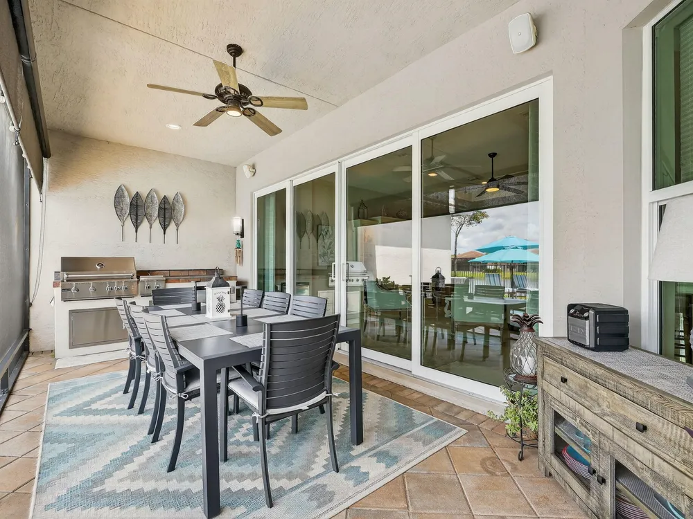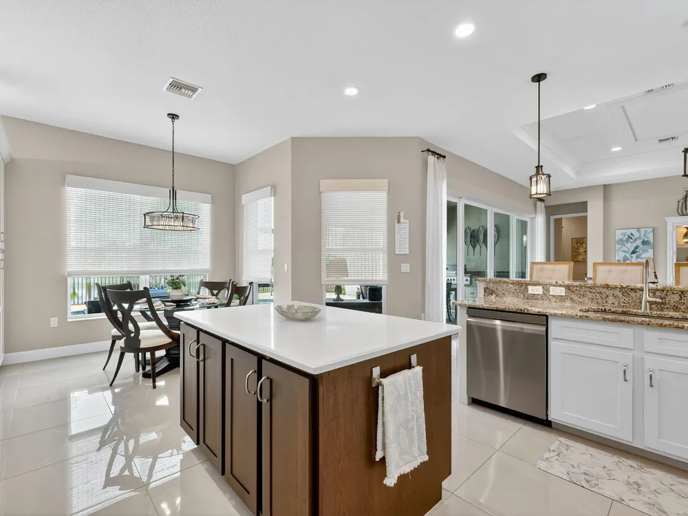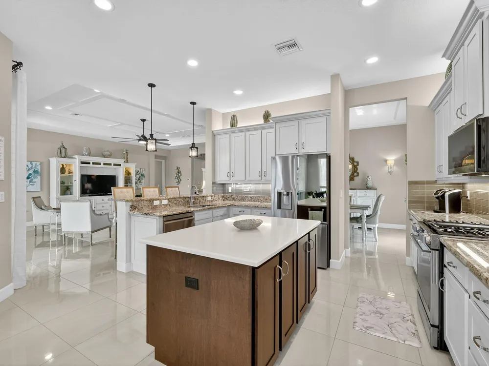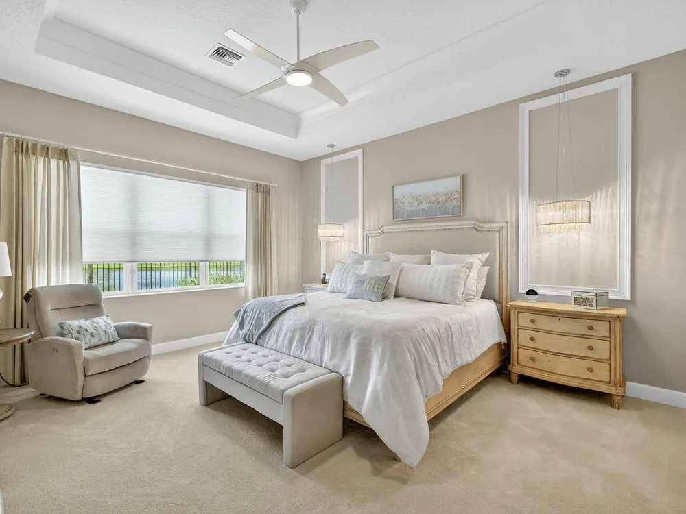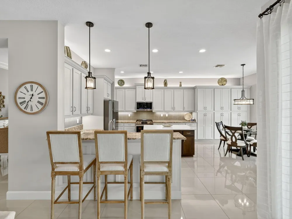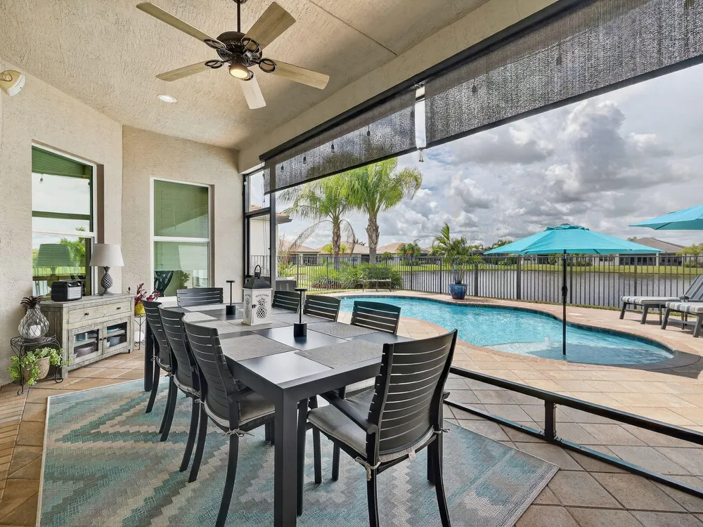 Experience Luxury Living at its finest, in a lakefront Julia Model at Valencia Cay in Riverland. A spectacular grand entrance features a custom glass double door entrance into a large foyer with a coffered ceiling and designer lighting. This home features 3 Bedrooms, Plus Den, 3.5 baths, with a 3-car garage. Elegant and thoughtfully designed, you will not be disappointed. This stunning residence combines modern comfort, sophisticated style and resort-style living, making it the perfect retreat for those seeking an active and luxurious lifestyle here in Florida. The Julia Model boasts spacious interiors, open concept living and high-end finishes throughout. An expansive great room with custom millwork and a coffered ceiling is ideal for formal and relaxed entertainment.