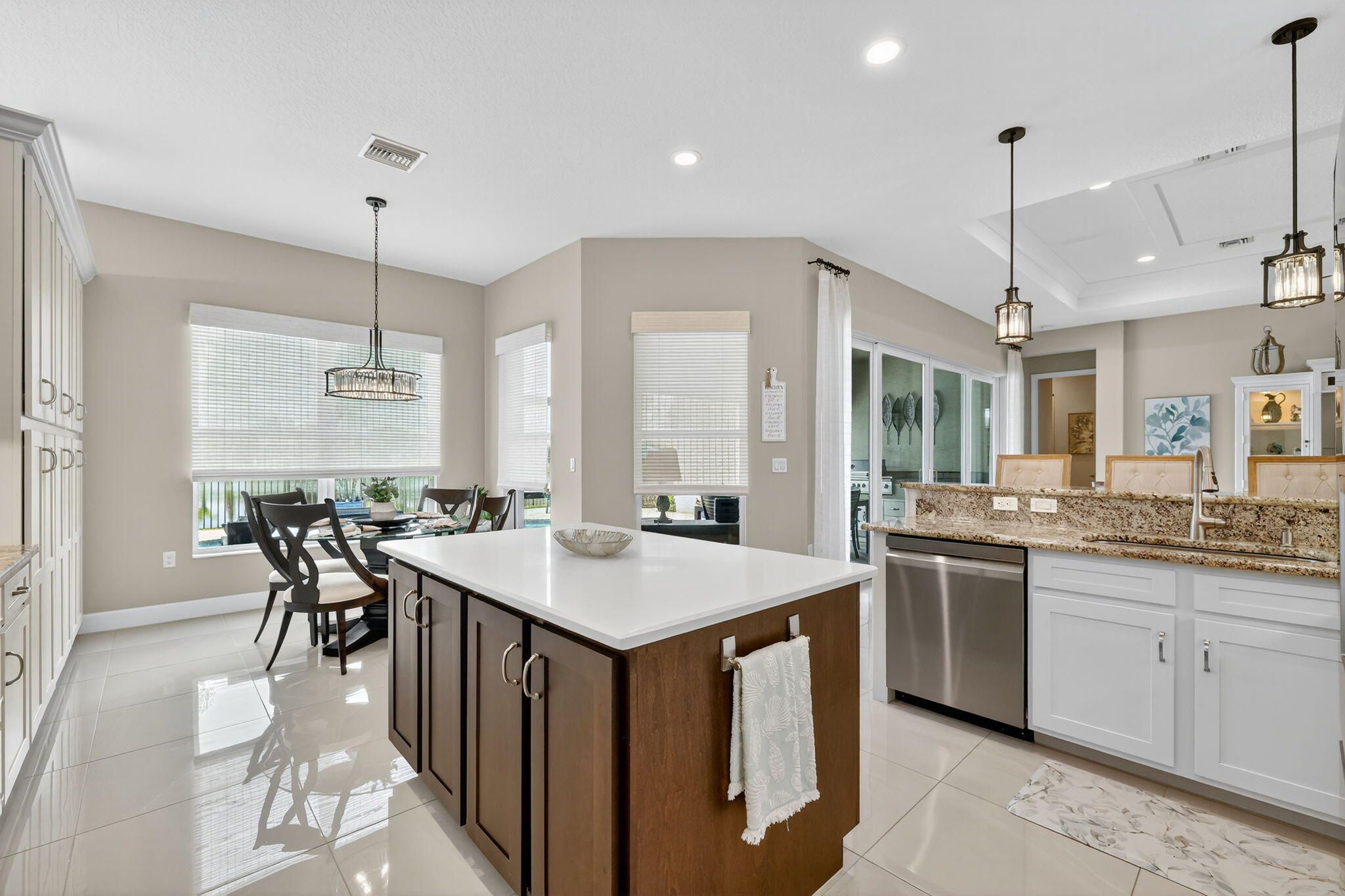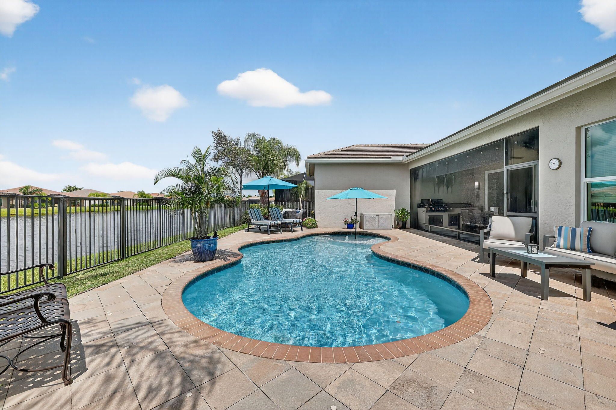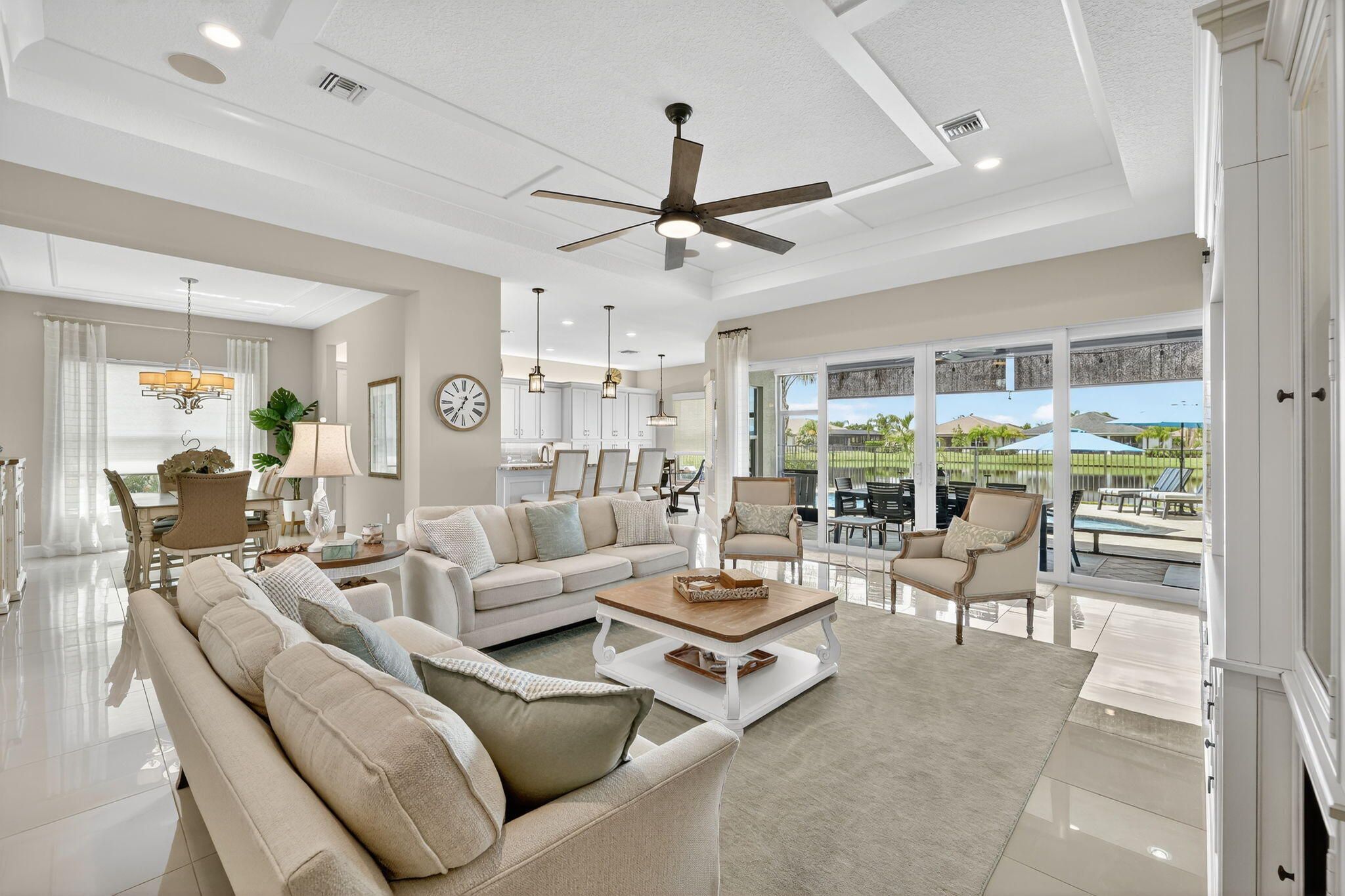 Experience Luxury Living at its finest, in a lakefront Julia Model at Valencia Cay in Riverland. A spectacular grand entrance features a custom glass double door entrance into a large foyer with a coffered ceiling and designer lighting. This home features 3 Bedrooms, Plus Den, 3.5 baths, with a 3-car garage. Elegant and thoughtfully designed, you will not be disappointed. This stunning residence combines modern comfort, sophisticated style and resort-style living, making it the perfect retreat for those seeking an active and luxurious lifestyle here in Florida. The Julia Model boasts spacious interiors, open concept living and high-end finishes throughout. An expansive great room with custom millwork and a coffered ceiling is ideal for formal and relaxed entertainment. A gourmet kitchen with premium cabinetry, including a cabinet pantry with pullout shelves, upgraded LG Studio appliances and a separate casual dining area. The large formal dining room is perfect for intimate dinner parties, wall sconce lighting, a custom chandelier and ceiling millwork. The luxurious primary suite has 2 custom walk-in closets and a spa-inspired bathroom with a large shower and separate vanities. The two additional bedrooms feature en suite bathrooms, one with a walk-in shower and the other bedroom en suite bath with a tub. A large laundry room with upper and lower cabinetry, granite counter tops, a large sink and upgraded washer and a gas clothes dryer. The custom heated pool features deck jets and a sun shelf with room for seating. There is a screened in patio with a summer kitchen and dining area for the ultimate Florida lifestyle. There is also a large open patio area with room for a seating area that can include a firepit to enjoy a beautiful sunset in the evening. This home has designer features throughout which include high end chandeliers, wall sconces, pendant lighting, high end window treatments and custom woodwork throughout. You will not be disappointed with this spectacular lakefront Julia Model. Living in Valencia Cay means having access to world class amenities designed for relaxation, recreation and social connection. Grand Clubhouse with social spaces, event rooms and lounges. Resort-style pools and fitness center for staying active in Valencia Cay and Riverland. On-site dining at the Cay Café as well as the River Fresh Café for delicious meals without leaving the community. Dozens of social clubseverything from travel and art to fitness and dance. Riverland features, Arts & Culture Center offering creative workshops, art studios and classes in painting, sculpture, music and more. Sports courts including pickleball courts (50+), one of the largest pickleball facilities in the U.S. and tennis. Indoor basketball, a wellness and spa center and miles of scenic walking trails through beautifully landscaped grounds. The Riverland Town Center with a PUBLIX supermarket. The Riverland Town Center will offer a mix of commercial and retail space conveniently located and accessible from your neighborhood through the network of private community greenways and the Paseo Greenway. Access to the Riverland Town Center is by golf cart, automobile, walking and bicycle.