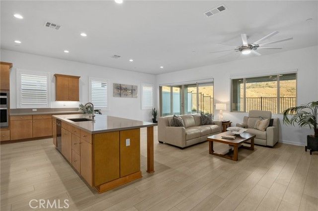 Welcome to this highly upgraded, move-in-ready home with PAID OFF SOLAR in the exclusive gated community of Terramor. From the moment you arrive, the beautiful curb appeal sets the tone for what awaits inside. Step into a bright, open layout featuring crisp white walls and stylish LVP flooring that create a modern, blank canvas ready for your personal touch. Just off the entry, you’ll find a convenient main-floor bedroom and full bathroom, as well as a dedicated office—perfect for working from home or accommodating guests. The heart of the home is the expansive kitchen, seamlessly connected to the spacious family room. Enjoy stainless steel appliances, an oversized kitchen island ideal for entertaining, under cabinet lighting, and a large walk-in pantry. Double sliding doors bathe the space in natural light and offer breathtaking views that extend from the kitchen and family room to the outdoor patio. The serene primary suite is a private retreat with sweeping views, a generous walk-in closet, dual sinks, and a luxurious walk-in shower in the en-suite bathroom. Additional highlights include a conveniently located laundry room, plantation shutters, ceiling fans throughout, and a motorized shade to keep the covered patio cool and comfortable all year round. Enjoy scenic views from multiple rooms and embrace the relaxed yet refined lifestyle this home and the Terramor Community have to offer, including indoor/outdoor pools, full gym, sauna, bar, pickleball courts, meeting rooms, billiard room, BBQ areas, and much more!