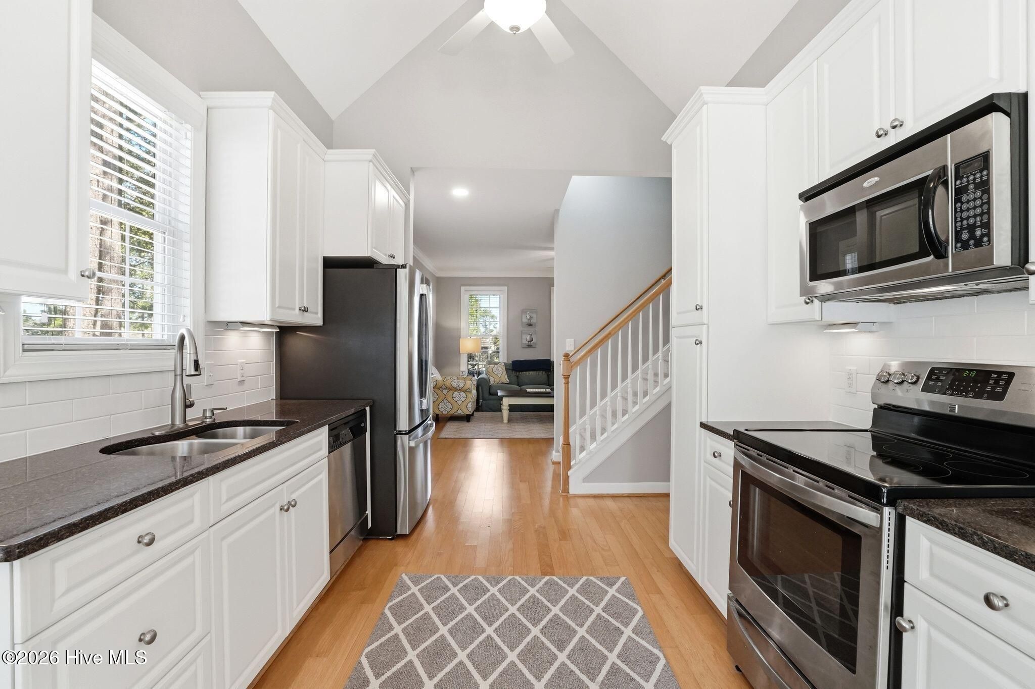 - Master Downstairs, Walk-In Closet(s), High Ceilings, Ceiling Fan(s), Walk-In Shower, Blinds, Eat-in Kitchen