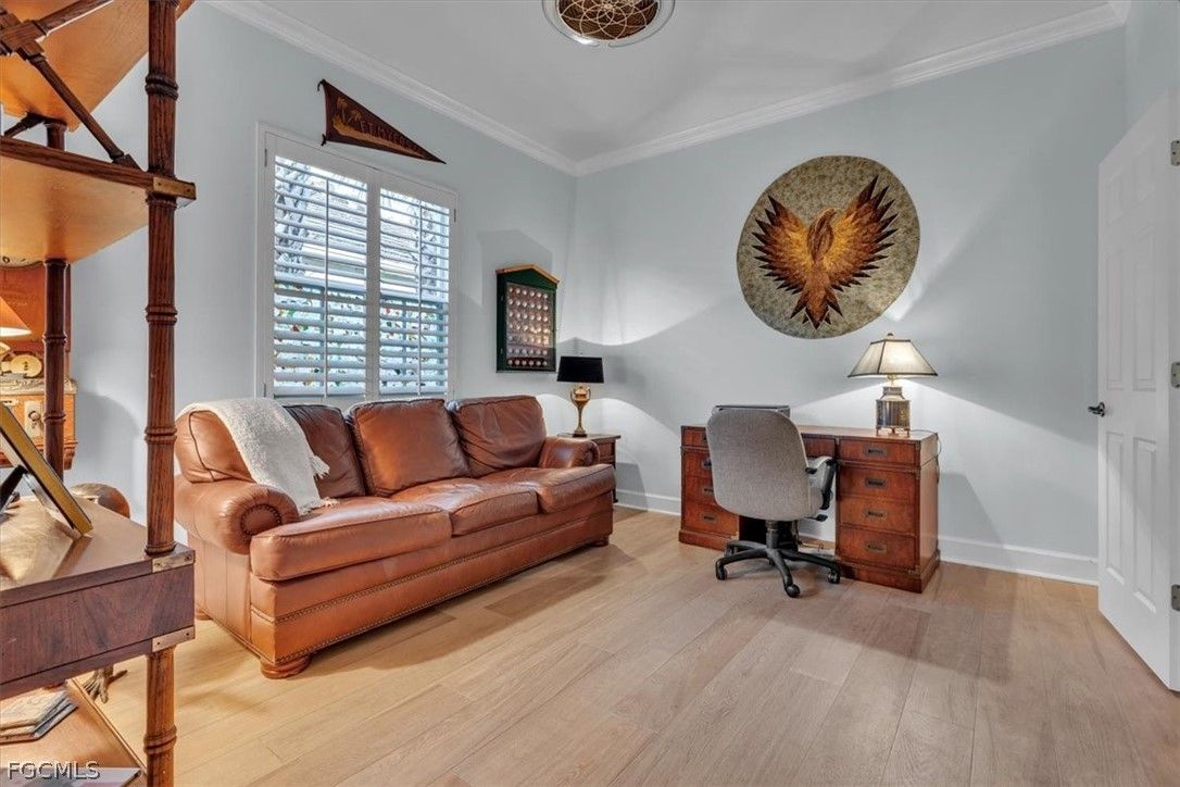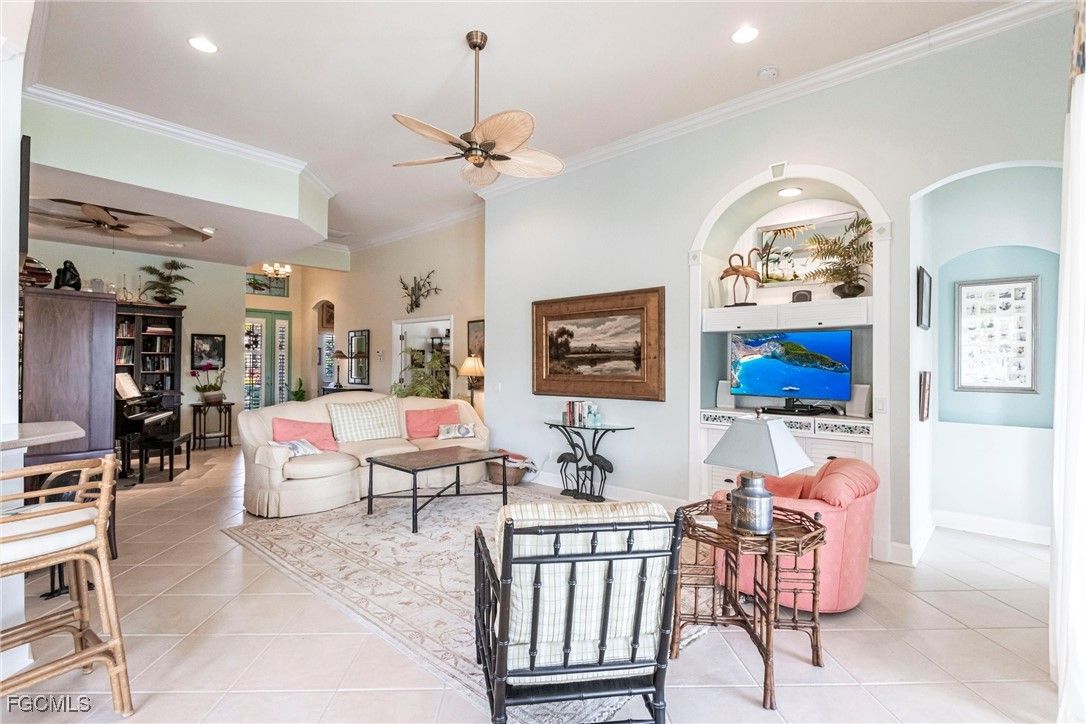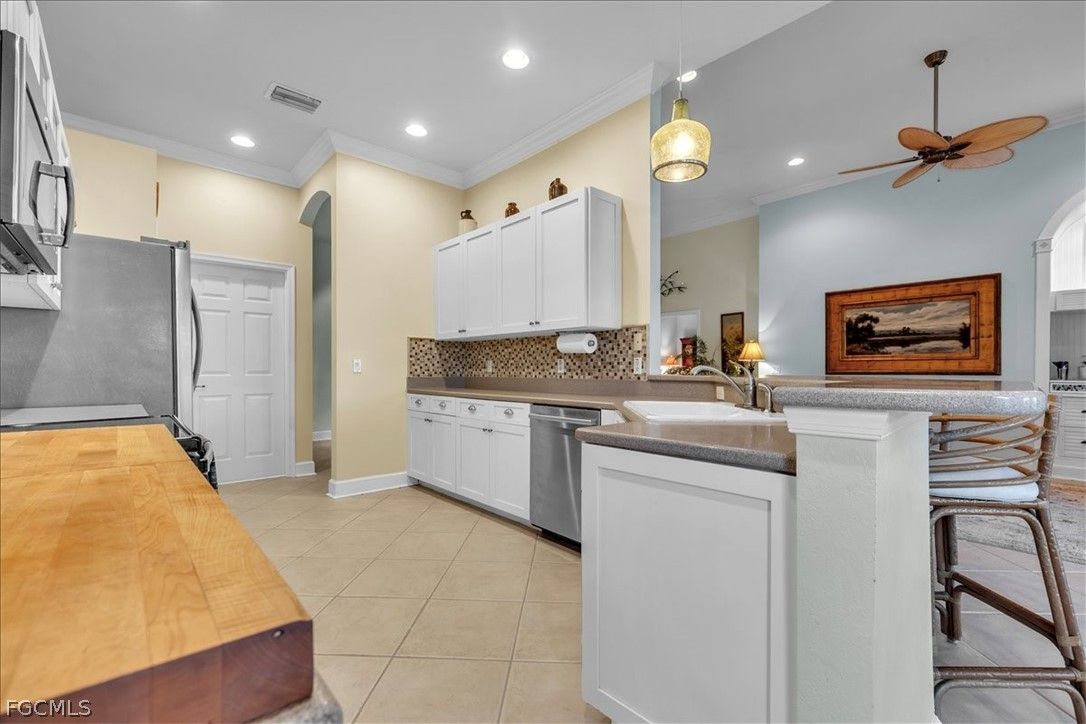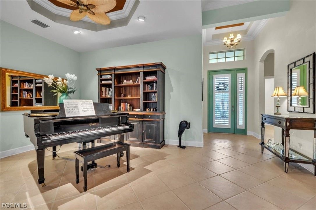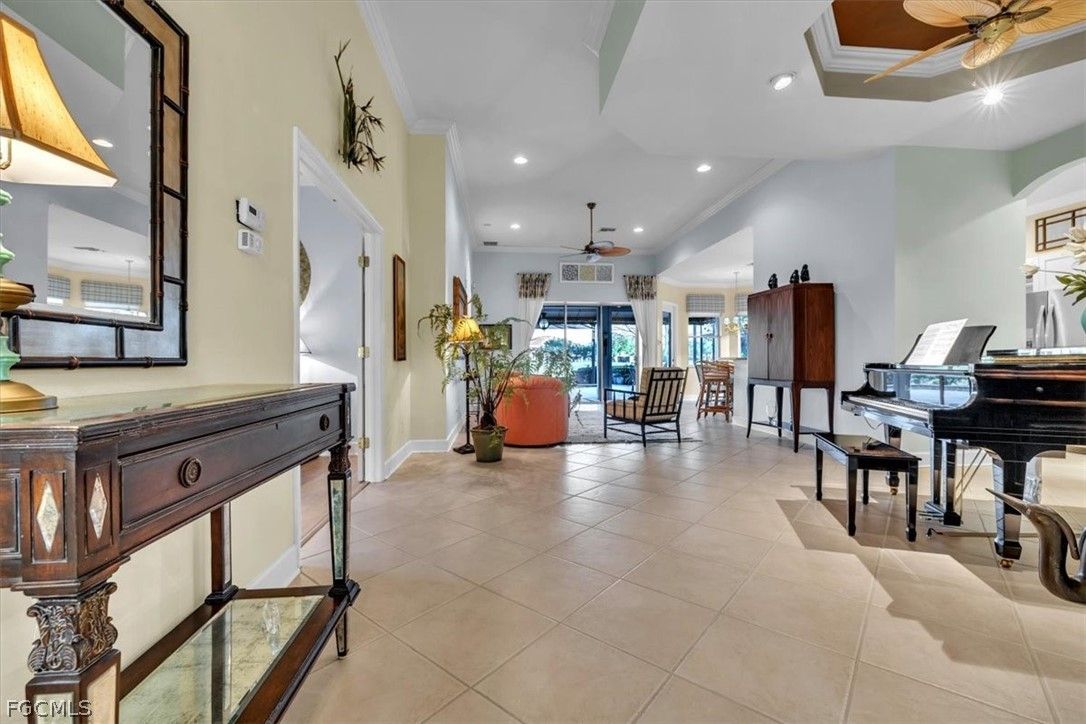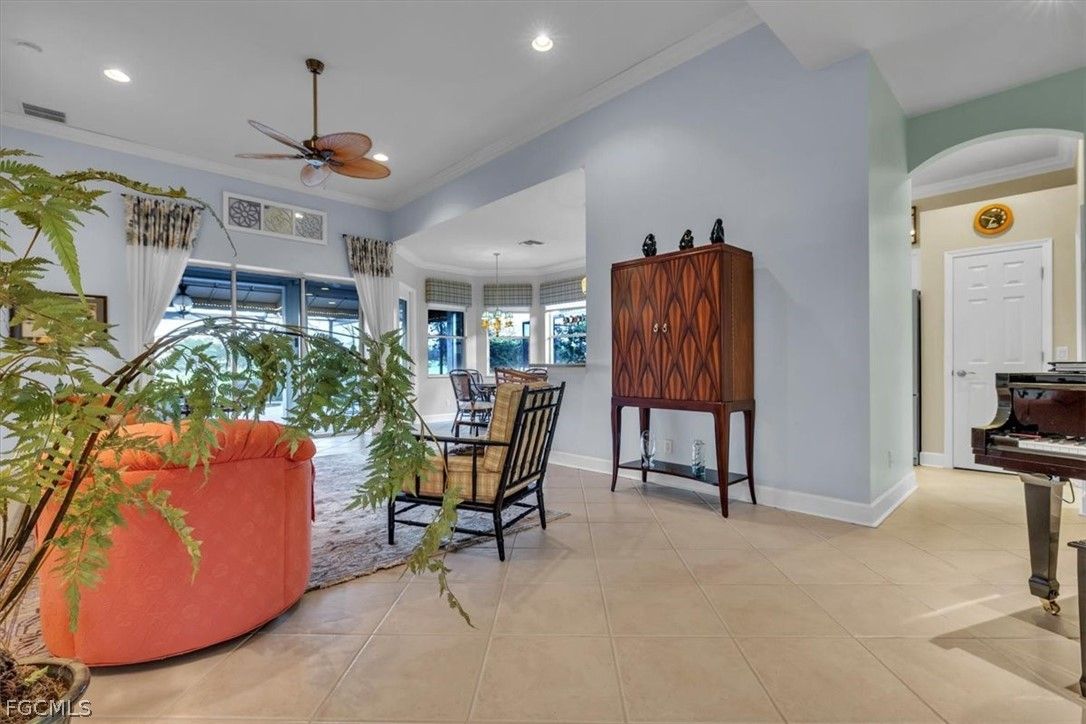 MAJOR PRICE REDUCTION. MOTIVATED SELLERS BRING OFFERS. A rare opportunity to own a stunning home with breathtaking views of the golf course and lake. This home is filled with upgrades and features, with sellers having invested over $110,000 in improvements, making it virtually move-in ready. The property offers 1840 sq. ft. of living space, including 2 bedrooms, a den, and 2 baths, as well as an expansive lanai with an eastern rear exposure. Some of the standout features of this property include a brand NEW ROOF completed in 2025, maple cabinet refacing in the kitchen, an attractive backsplash in the kitchen, removal of original columns in the dining room for a more open feel, oak flooring in the den, LVP flooring in the bedrooms, crown molding, tray ceilings, newer AC, refrigerator, and pool heater, a phantom door at the front entrance, custom cabinetry throughout the home for added storage, enhanced lighting and fan fixtures, and attractive window treatments. Upon entering the home, the open feel is immediately noticeable. The den and guest bedroom are both spacious, with the den offering flexibility as a flex room. The master bedroom features an attractive shiplap wall, access to the lanai, and spacious closets. The master bathroom boasts dual sinks, a vanity, and a separate tub and walk-in shower. The lanai area has been updated with hurricane storm shutters, an awning that extends the shaded area for more undercover space, picture window screens on two sides of the cage to enhance views of the golf course and lake, and an attractive pool/spa structure. This home is located in the Verandah Community, a gated community which offers a wide array of amenities for its members, including 2 championship golf courses designed by Jack Nicklaus and Bob Cupp, tennis, pickleball, a state-of-the-art fitness center with an attendant, bocce, kayaks, a dog park, playground, 9 miles of walking and jogging paths, multiple restaurants, and a full activity calendar of events, classes, and fun programs. With all of these unique features and upgrades, this home is perfect for entertaining family and friends. Come see this home before it is gone. Don't miss out on the opportunity to secure your place in paradise!