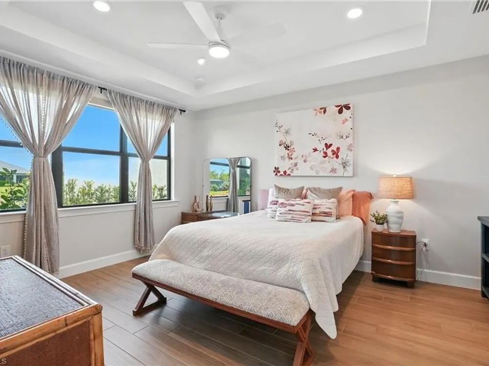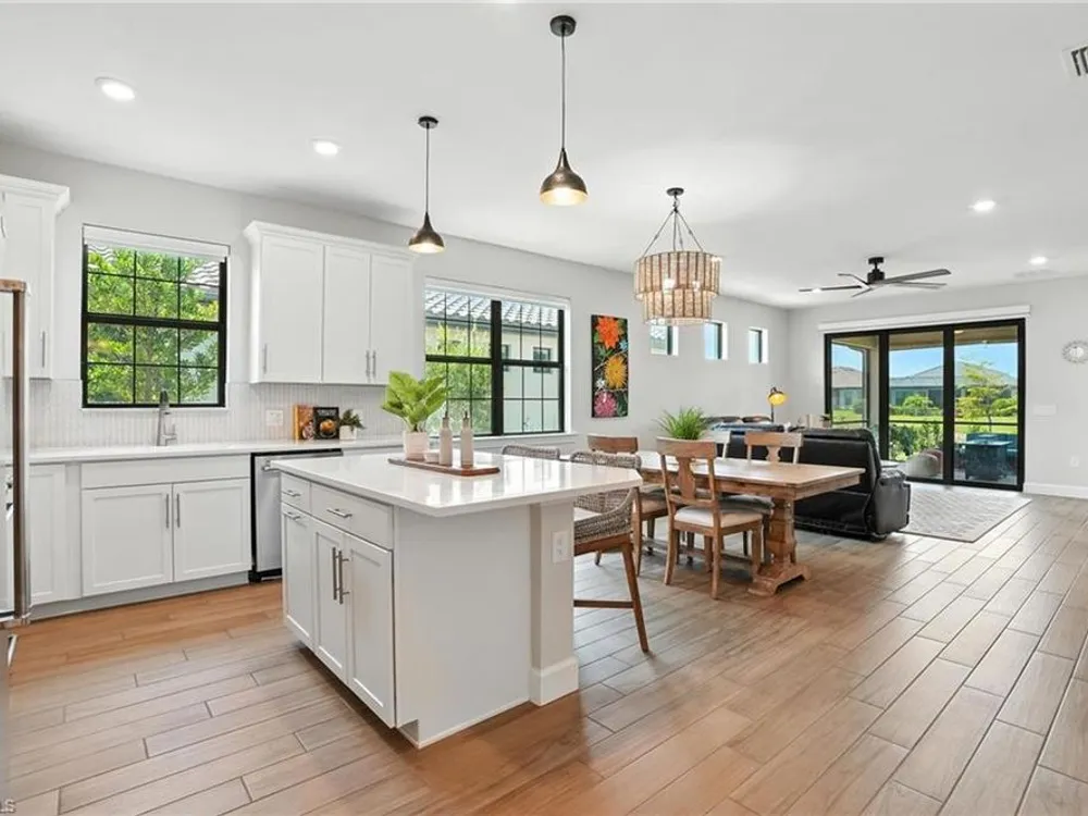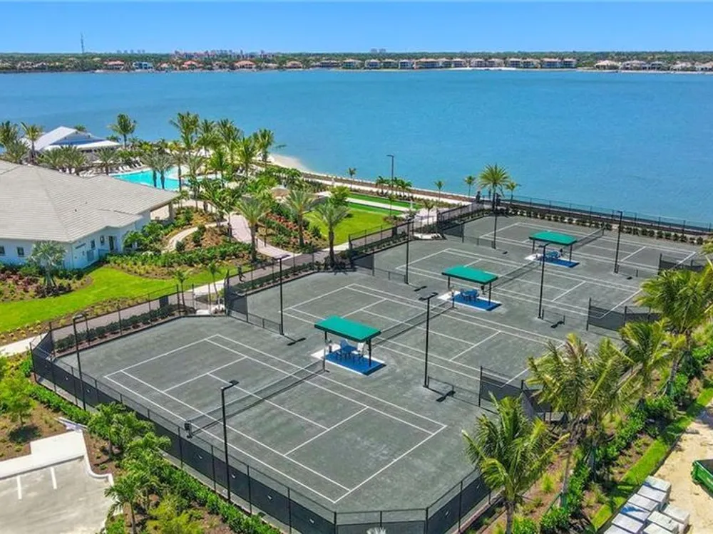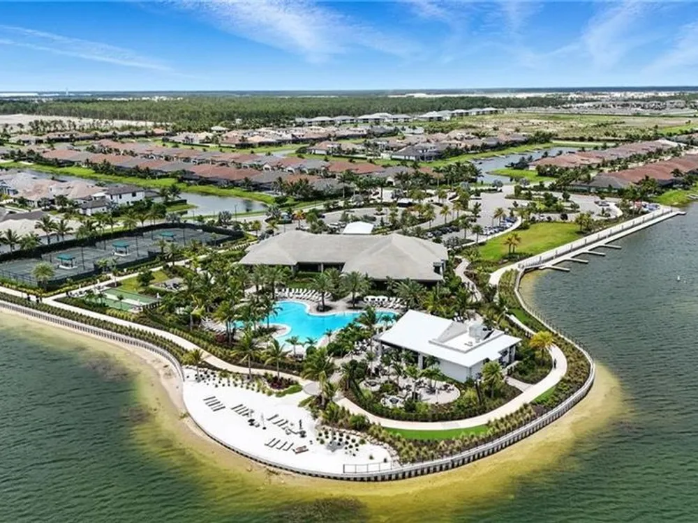 Step into this beautifully designed lakefront villa where modern elegance meets the warmth of coastal Florida living, all framed by stunning southern exposure and serene water views. With two spacious bedrooms, a versatile den, and two full bathrooms, this thoughtfully designed home offers comfort, functionality, and tasteful sophistication. Built to the highest standards, this villa features hurricane impact windows, custom closets, and beautifully crafted floor-to-ceiling tile in the bathrooms—details that elevate the everyday. The open-concept layout showcases tile flooring throughout and a stunning kitchen with quartz countertops, making it ideal for both entertaining and relaxed living. Every detail has been carefully curated to create a warm and inviting atmosphere that instantly feels like home. From the earthy finishes to the seamless flow of space, this villa radiates a calming, stylish charm. Located within the highly desirable Esplanade Lake Club, you'll enjoy an unbeatable location just minutes from I-75, RSW Airport, and Gulf Coast Town Center. The community offers a truly resort-style lifestyle, with a sparkling pool, a lively cabana bar and grill, a private beach, and an incredible fitness center complete with a spa treatment room. For the active lifestyle, there are tennis and pickleball courts, along with a full calendar of social events to keep you connected and engaged. This is more than just a home—it's a peaceful retreat in one of Southwest Florida’s premier gated communities.