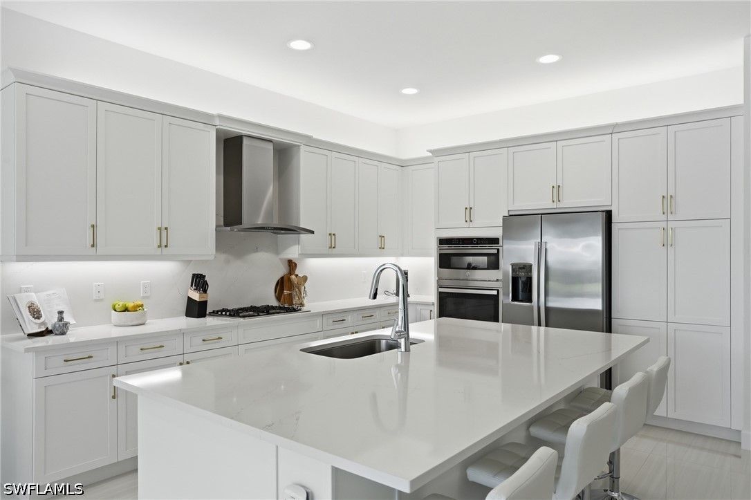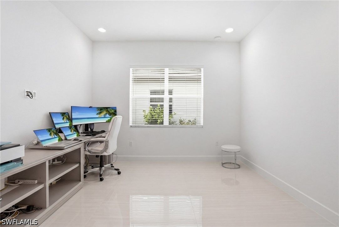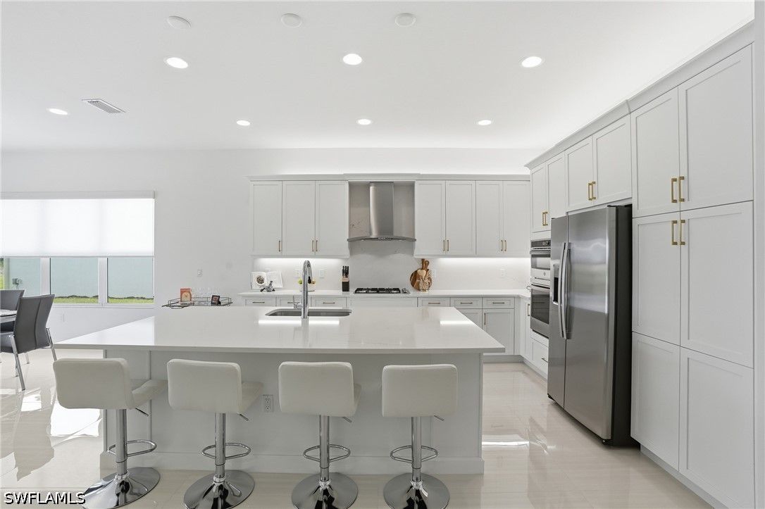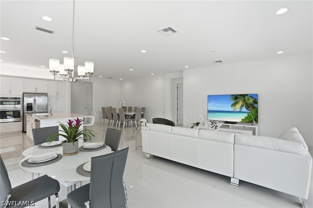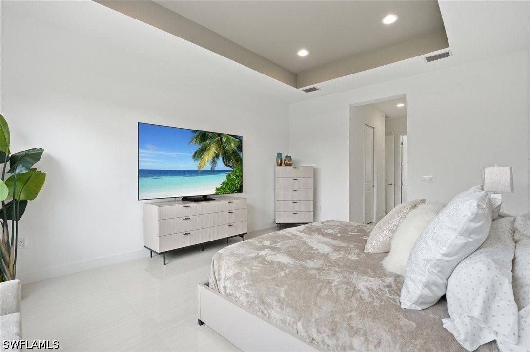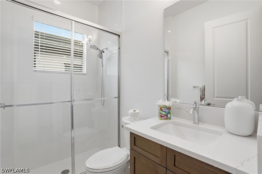 This stunning Pearl model home with extended square footage offers an unparalleled blend of luxury and comfort in the highly sought-after Valencia Trails, Naples' premier 55+ community. From the moment you step inside, the soaring 14-foot ceilings and shiplap create an immediate sense of sophistication. The open-concept design seamlessly connects the kitchen and living areas, making it ideal for both everyday living and elegant entertaining. The chef's kitchen is a true showpiece, featuring quartz countertops and backsplash, a natural gas stovetop, premium stainless steel appliances, and an upgraded pantry. Level 3 wood cabinetry with soft-close functionality and elegant molding adds a touch of refinement, while ample recessed lighting enhances the space. Step outside to your private screened lanai, extended patio and take in the breathtaking lake views that set this home apart. Whether you're enjoying a quiet morning coffee or hosting guests for an evening gathering, this tranquil retreat offers a seamless blend of indoor and outdoor living. With ample yard space to accommodate a custom pool, a lanai pre-plumbed for an outdoor kitchen, this home is designed for relaxation and entertaining at its finest. Large Format Porcelainfrom Spain, not a builder product, throughout makes a seamless flow. Beyond your doorstep, a three-minute walk takes you to all that Valencia Trails offers —world-class amenities that enhance an active, social lifestyle. The impressive 43,000-square-foot clubhouse features a full-service restaurant and bar, a state-of-the-art fitness center, a full-service salon and spa, and multiple recreational spaces, including card rooms, an art studio, and a learning kitchen. For those who love outdoor activities, the community boasts a resort-style pool, a lap pool, a resistance pool, six tennis courts, eight pickleball courts, and scenic walking and biking trails. Even your four-legged companions will feel at home with two dedicated dog parks just a short walk from the home. This is more than just a home—it's an opportunity to embrace a luxurious, resort-style lifestyle in one of Naples' most exclusive communities. Homes like this are rare, and demand for Valencia Trails continues to grow. Don't miss your chance to own a piece of paradise. Call today to schedule your private tour and experience the elegance, comfort, and breathtaking lake views for yourself."
