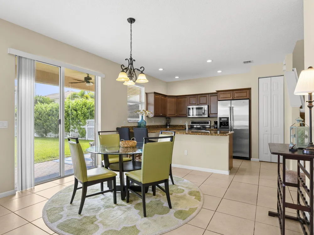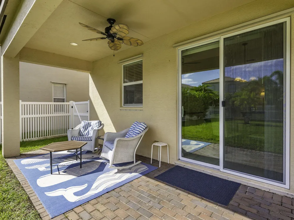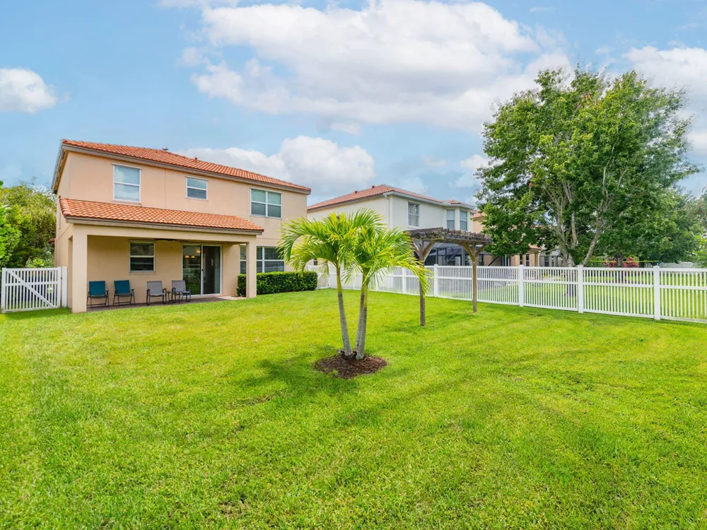 Positioned below TownPark competition this move-in ready home. Just 1 mile from Downtown Tradition, this upgraded, well-kept 3BR, 2.5BA CBS home checks every box: open layout, granite counters, SS appliances, 2020 AC, new water heater, LED lighting, custom cabinets. Upstairs, primary suite features dual walk-ins, a frameless glass shower, and coffered ceiling. The private, FENCED BACKYARD is perfect for pets, play, and entertaining...complete with covered patio, pergola, new landscaping, storm shutters, and updated screens. Located in TownPark, one of Tradition's most desired gated communities, with resort-style pool, spa, gym, tennis, pickleball, bocce, and more. HOA includes cable, internet, alarm, and security. Rental history at $3,300/month. Strong value, see it before it's GONE!