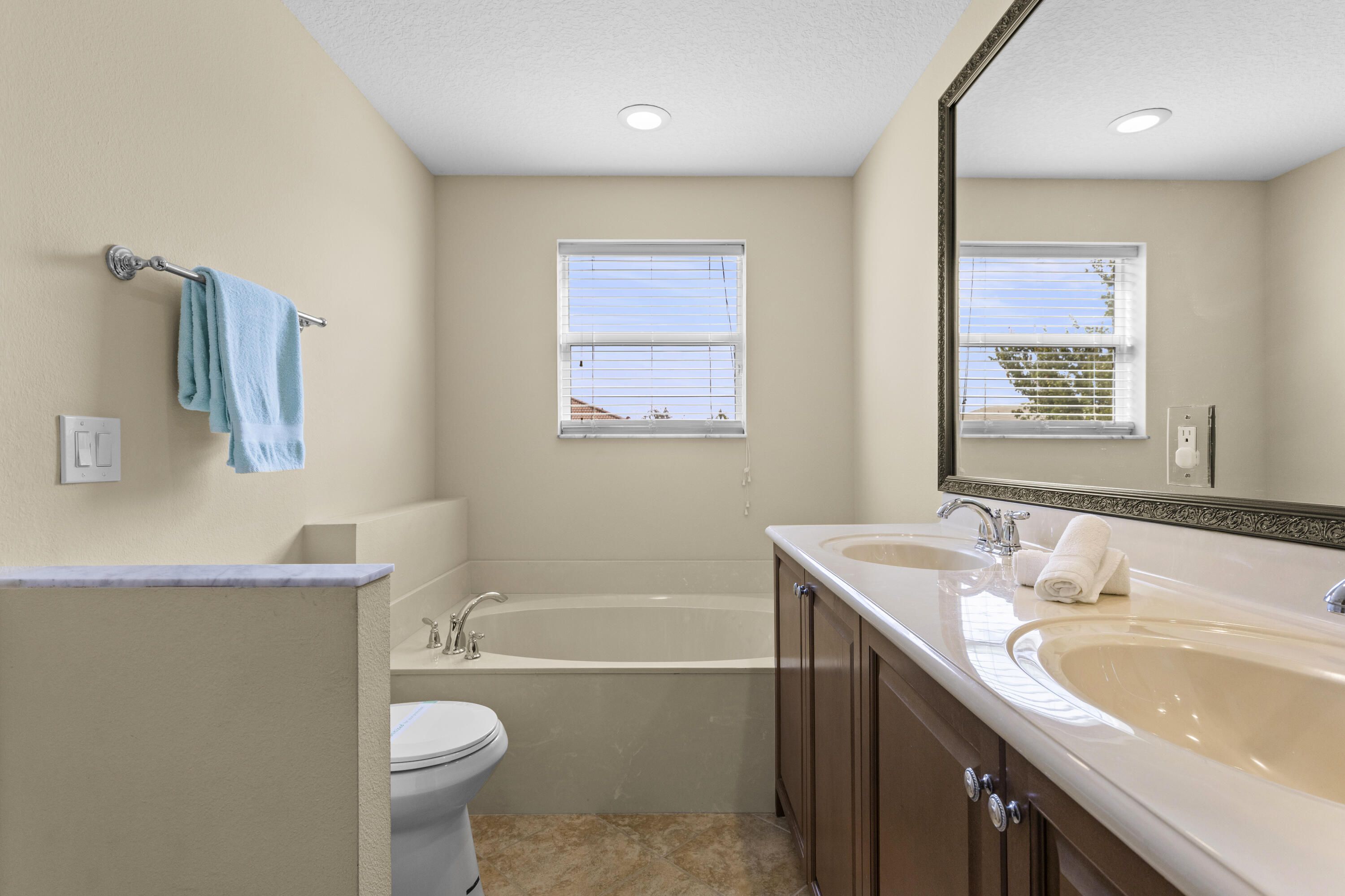 Move in ready and ideally located just one mile from Downtown Tradition, this well kept CBS home offers an easy, open layout designed for everyday living and entertaining. The kitchen features granite countertops, stainless steel appliances, custom cabinetry, and LED lighting, flowing naturally into the main living space. Upstairs, the primary suite feels spacious with high ceilings, spacious dual walk in closets, and a frameless glass shower and a soaking tub. Outside, enjoy a fully fenced backyard with a covered patio, pergola, fresh landscaping, and room to relax or host. Located within the gated TownPark community, residents enjoy resort style amenities including pool, spa, fitness center, tennis, pickleball, and bocce. HOA includes cable, internet, alarm, & security!