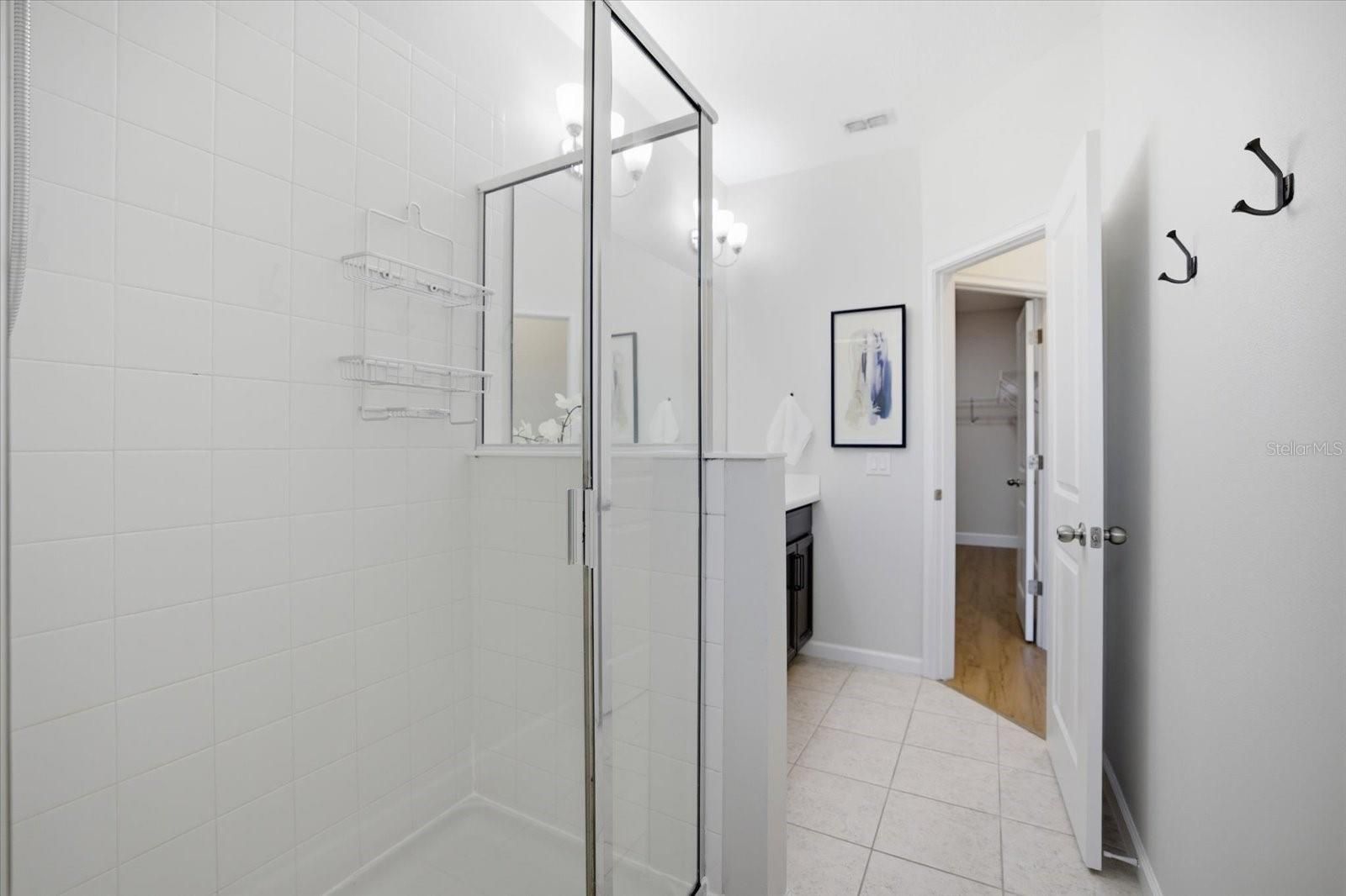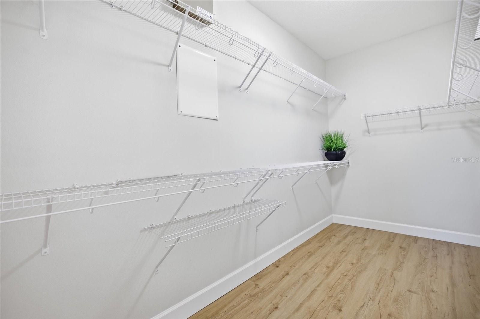 - Ceiling Fan(s), Eat-in Kitchen, Open Floorplan, Upper Level Primary, Solid-Wood Cabinets, Stone Counters, Walk-In Closet(s), Window Treatments