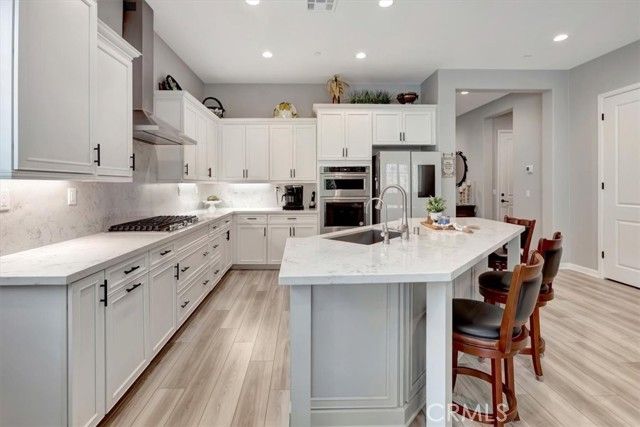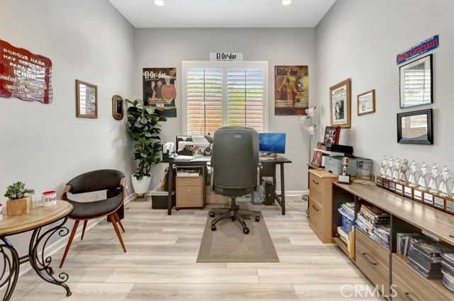 Welcome to your forever sanctuary in the prestigious Terramor guard-gated community in Corona. This meticulously designed highly upgraded Del Webb single-story residence is the crown jewel of the neighborhood. Located on an oversized corner lot perfectly blending modern luxury with the ultimate active-adult lifestyle. Featuring 2 spacious bedrooms, 2 bathrooms, and a dedicated office/den, this home is tailored for those who demand both comfort and functionality. Step inside to an expansive open-concept great room, where natural light pours in through large windows, highlighting the elegant finishes throughout. The heart of the home features a cozy fireplace, creating a warm focal point for evening relaxation or intimate gatherings. The versatile private office offers the ideal quiet space for remote work, a hobby room, or library. The chef-inspired kitchen boasts premium cabinetry, sleek quartz countertops, and high-end stainless steel appliances, all overlooking the main living area. Retreat to the primary suite, strategically tucked away for maximum privacy, featuring a spa-like ensuite bathroom and a large walk-in closet. Experience seamless indoor-outdoor living on an over sized lot with a covered patio, perfect for enjoying the California climate. The low-maintenance backyard is designed for ease, allowing you more time to enjoy the community's world-class amenities. As a resident of the 55+ neighborhoods in Terramor, you gain exclusive access to The Terrace Club, a 20,000-square-foot resort-style facility: Fitness & Wellness: State-of-the-art gym, wellness studio, and indoor saltwater pool. Social Hub: Multipurpose rooms, crafts room, and a pavilion with a bar. A never-ending list of games, excursions and social events. Outdoor Recreation: Resort pool, spa, tennis, pickleball, and bocce ball courts. Nature Trails: Over five miles of maintained walking and biking trails through 540 acres of preserved open space. Conveniently located near the I-15 freeway, you are just minutes away from premium shopping, dining, and the natural beauty of the Cleveland National Forest.