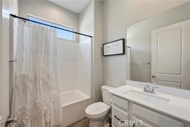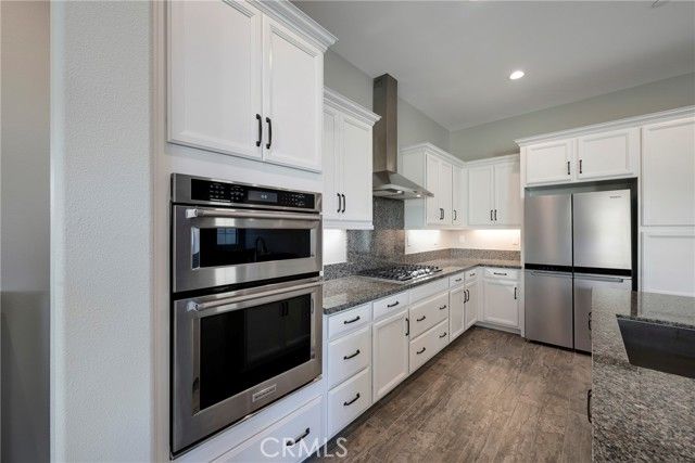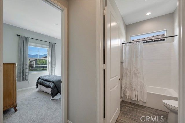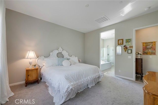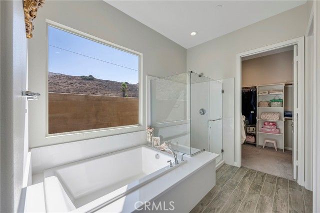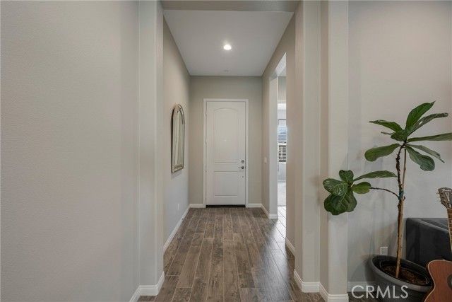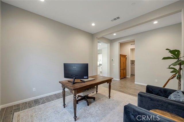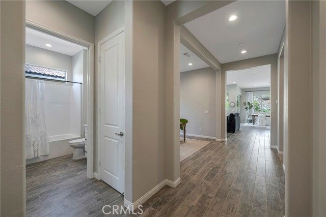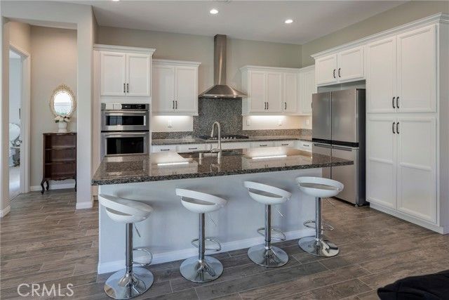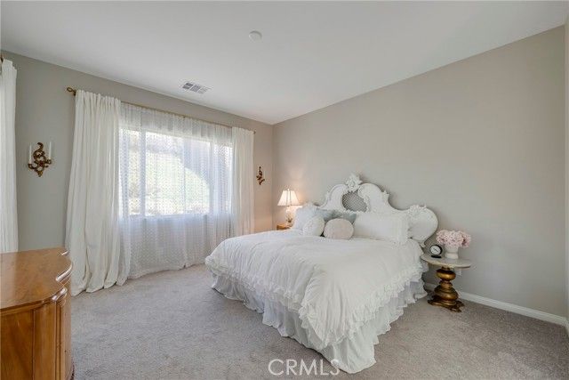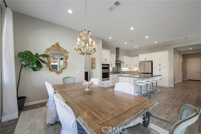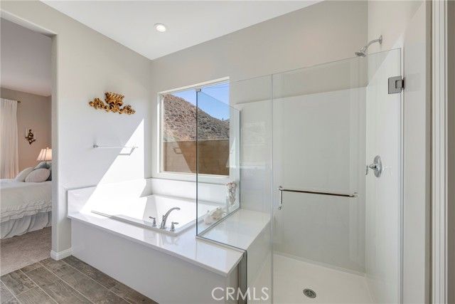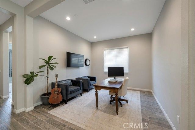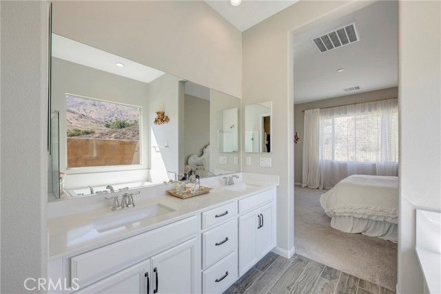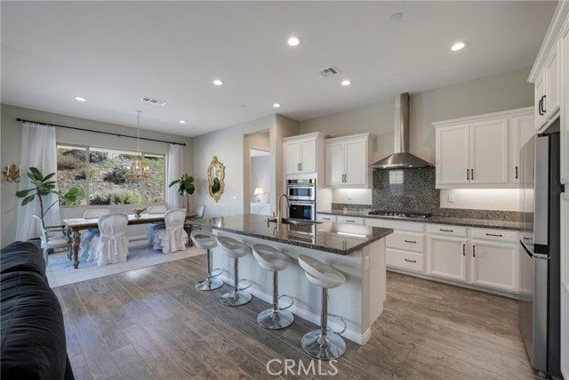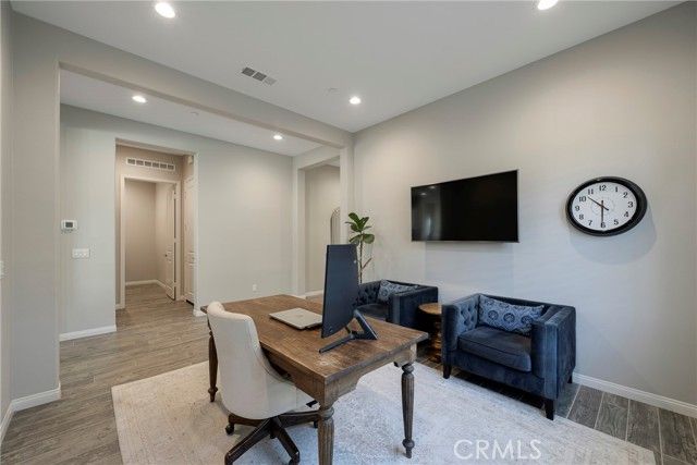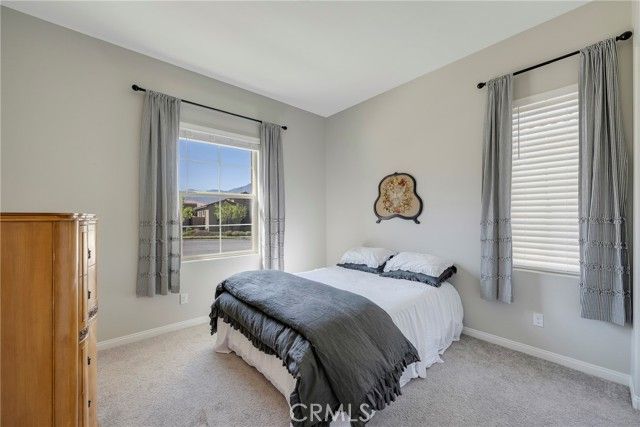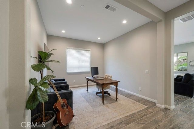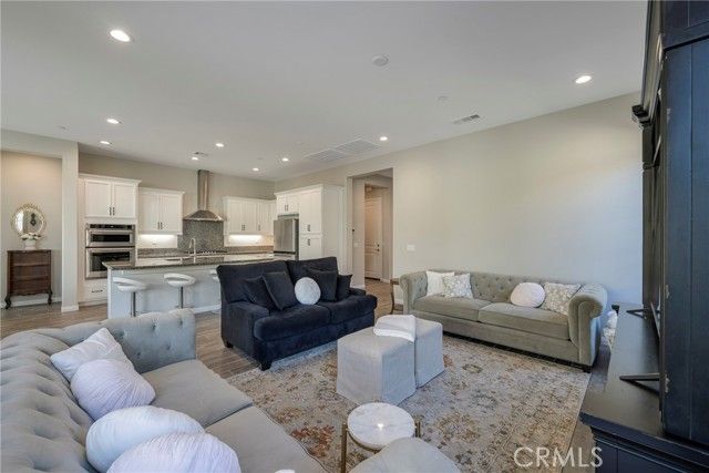 Beautiful Home in the 55+ Terramor Community! Step into this beautifully upgraded home and be welcomed by impressive 10-foot ceilings and luxury wood tile plank floors. The residence boasts upgraded cabinetry and hardware throughout, enhanced by designer paint and recessed lighting that fills the home with a bright and airy ambiance. The chef’s kitchen is a standout feature, offering staggered cabinets, under-cabinet lighting, upgraded stainless steel appliances, a sleek drop-in sink, and a pull-out trash system. A versatile flex space provides endless possibilities — perfect for a home office, guest room, or hobby space. The master suite is a serene retreat, featuring stunning views, an upgraded soaking tub, custom cabinetry, and a spacious walk-in closet. Enjoy your very private backyard with breathtaking mountain views, perfect for relaxation or entertaining. Additional features include a whole-house fan for comfort and energy efficiency, a leased solar system, and a private cul-de-sac location. Living in Terramor means enjoying resort-style amenities: two clubhouses, two outdoor swimming pools, an indoor swimming pool, spa, gym, sauna, game room, event room with a full bar, fire pits, and an outdoor cooking area. Stay active with pickleball courts, tennis courts, bocce ba