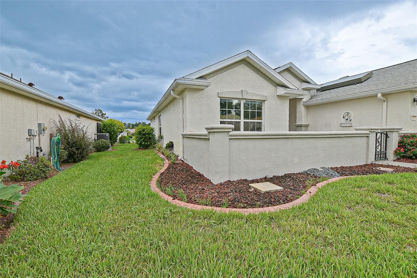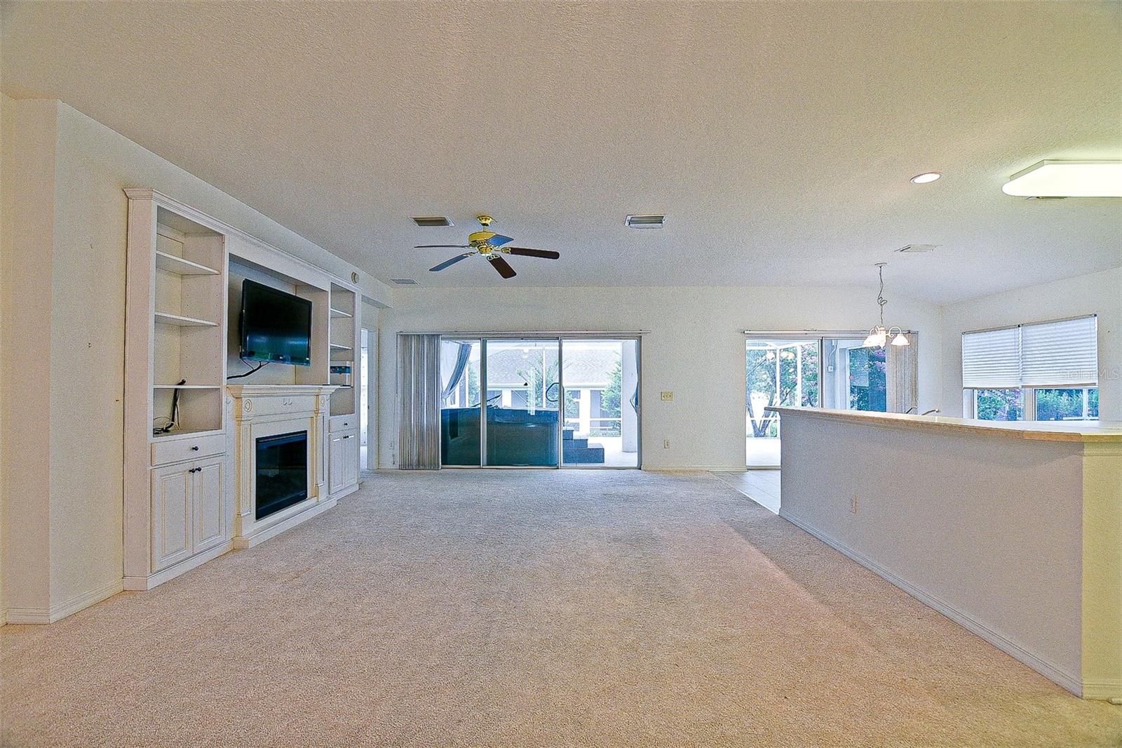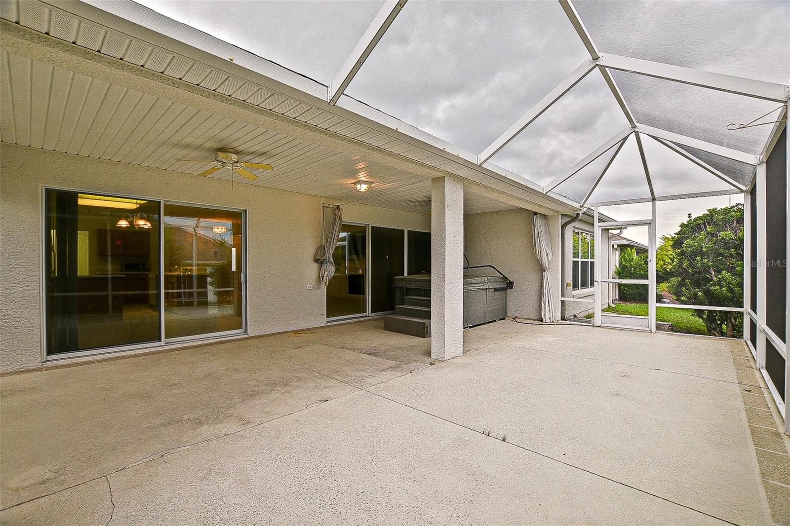Popular Elkridge floor plan has 3 bedrooms and 2 bathrooms. This home has added features such as a beautiful front courtyard. The lanai has been extended and screened in and includes a large hot tub for relaxing. Plus, an outdoor patio off of lanai. There is a large pantry off of the spacious kitchen that has oak cabinets. Carpet in the home was new 2 years ago. There is a custom-made electric fireplace in the living room alcove. Solar tube in guest bathroom. Storm door on the front entry door and electric screen on the garage door. Home has gutters and a flagpole in the front yard. A beautiful finish on driveway and sidewalk adds to the curb appeal. Extended garage and has a well for irrigation. This home is ready for new owners to add their touch at a buy me today price!
