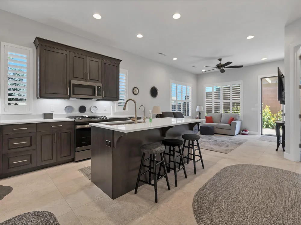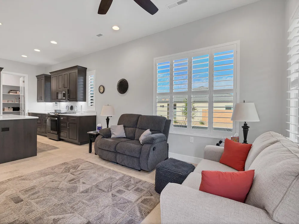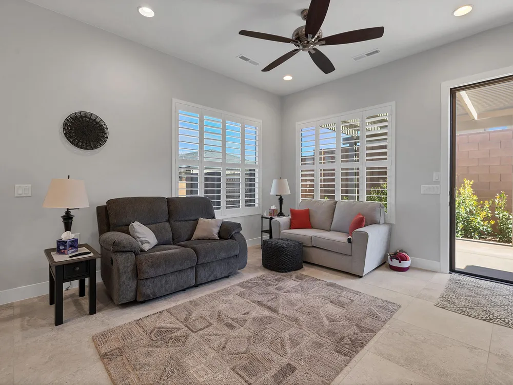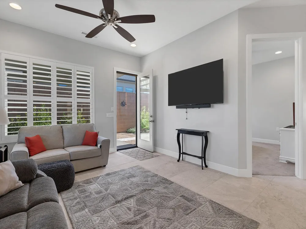 This home in the highly sought after SunRiver Villas is practically brand new! Only used on limited occasions for a 2nd home. Tile Flooring in main areas, Quartz countertops and plantation shutters throughout. Original upgrades of $60k and home owner did additional upgrades worth almost $18k. Step into the backyard and you will find beautiful mountain views on this corner lot. One of the larger garages of the villa floorplans. 2 car plus extension so you can fit a large truck and store your golf cart or side by side or just have extra storage. All appliances stay!