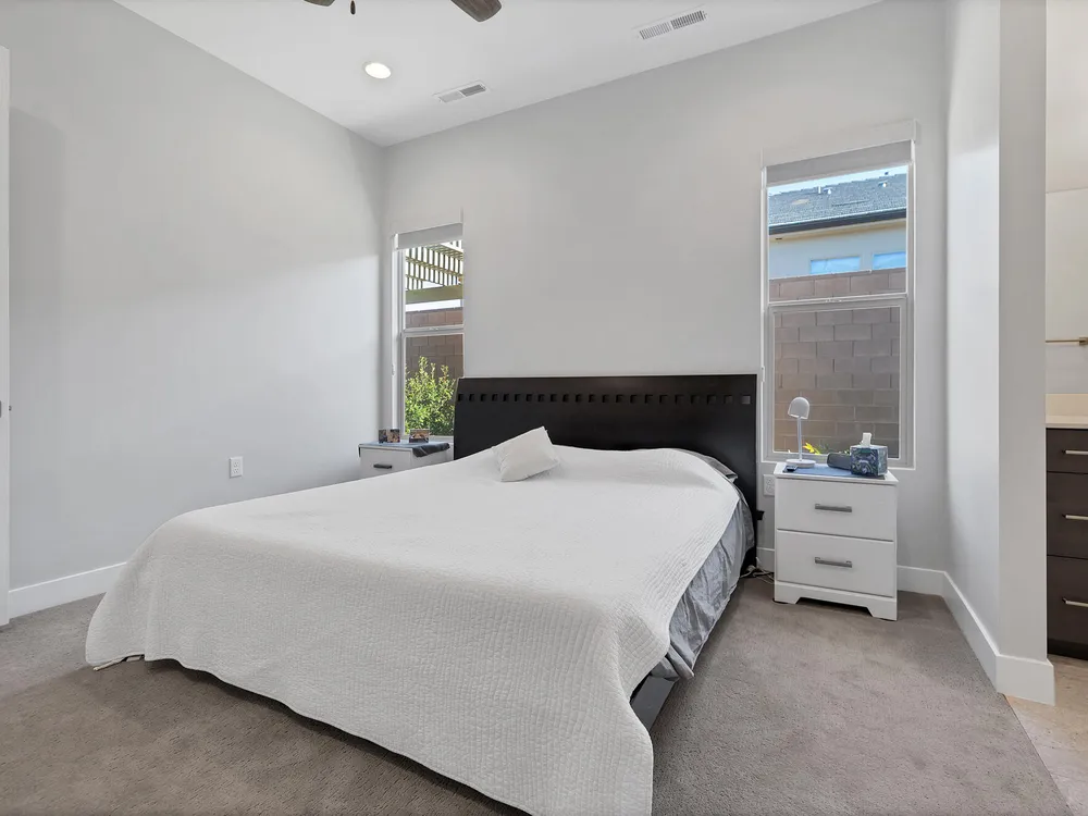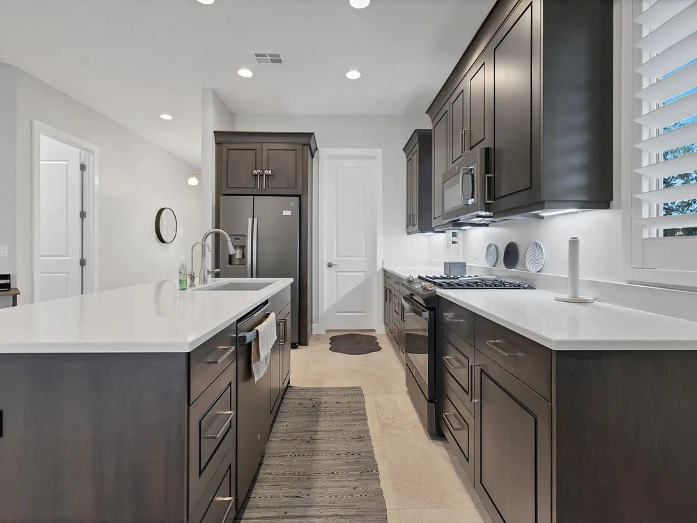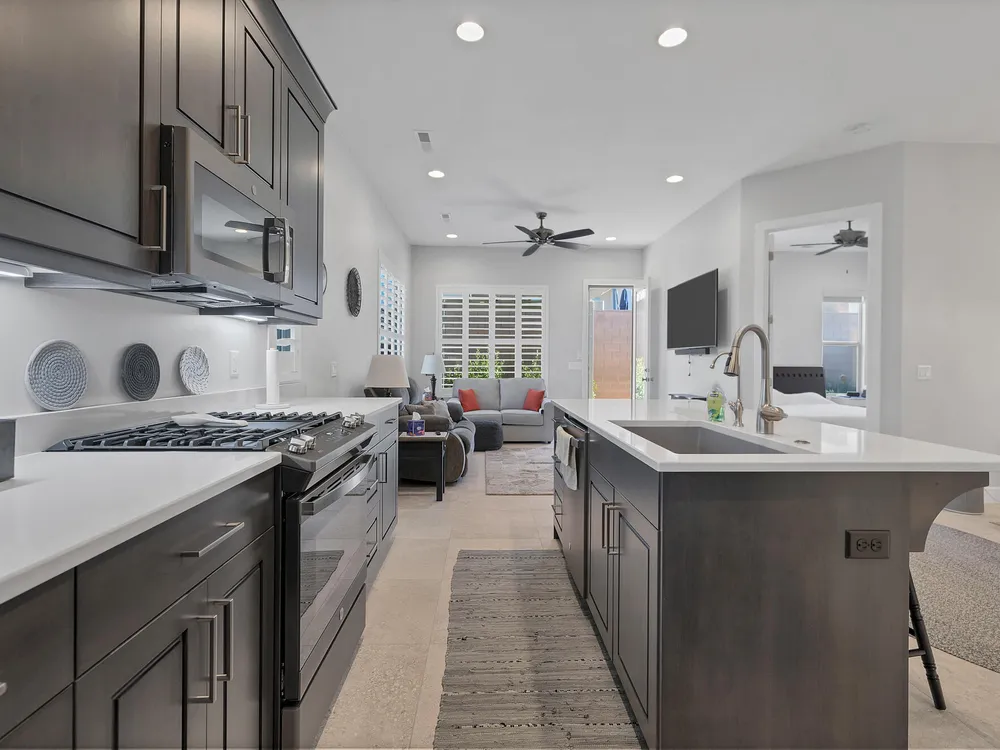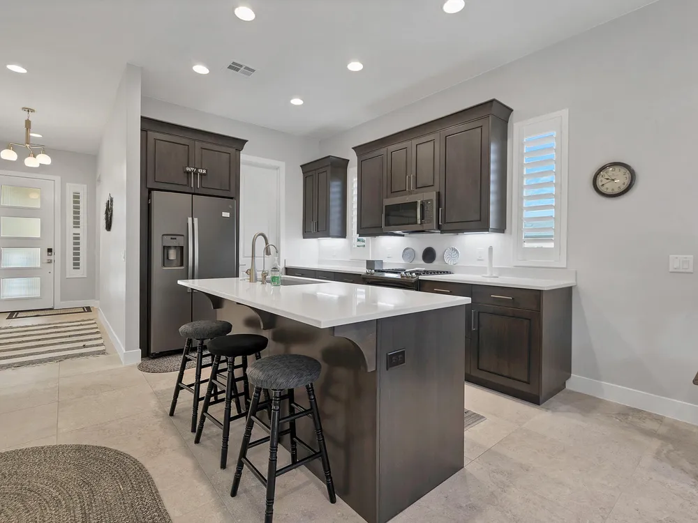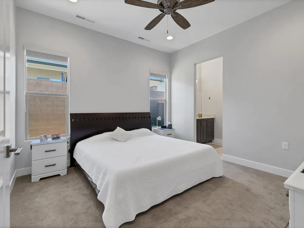 This home in the highly sought after SunRiver Villas is practically brand new! Only used on limited occasions for a 2nd home. Tile Flooring in main areas, Quartz countertops and plantation shutters throughout. Original upgrades of $60k and home owner did additional upgrades worth almost $18k. Step into the backyard and you will find beautiful mountain views on this corner lot. One of the larger garages of the villa floorplans. 2 car plus extension so you can fit a large truck and store your golf cart or side by side or just have extra storage. All appliances stay!