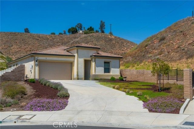 A Natural Sanctuary in Temescal Valley – Elevated 55+ Living in Harmony with Nature Welcome to a rare opportunity in Terramor, Corona’s premier guard-gated 55+ community located in Temescal Valley. This expansive IronTree II model, the largest of its kind, is tucked away at the end of a quiet cul-de-sac on one of the neighborhood’s most private and generous lots. Set on just shy of 11,000 square feet, the home is embraced by nature on nearly every side. Undisturbed hillsides rise gently around the property, creating a serene backdrop filled with wildflowers and the flutter of hummingbirds by day, and the soft calls of owl echoes at night. The setting brings a deep sense of peace, with morning sunlight filtering in from the east and the cooling shade of the north enhancing the living spaces. Inside, 10-foot ceilings and an open layout create a feeling of spaciousness and ease. At the heart of the home is a striking 10-foot kitchen island, framed by thick quartz countertops and a modern farmhouse sink. Recently painted in a soft Designer Flat White, the interior exudes simplicity and calm. With paid solar, the home reflects a thoughtful balance of modern efficiency and natural harmony. This home is intentionally positioned with its rear facing the ascending hills—a layout that promotes a grounded, calming vibe. The elevated position offers sweeping skies and uninterrupted sunset views over the Santa Ana Mountains, creating a sense of openness and connection to the surrounding landscape. The outdoor living space offers effortless tranquility—low-maintenance, yet rich in privacy and presence. Featuring two spacious bedrooms, two beautifully upgraded bathrooms, and over 1,900 square feet of living space. A driveway accommodating up to six vehicles, along with an epoxy-coated two-car garage, completes the home’s blend of comfort and function. Dive into luxury with two resort-inspired pools—one indoors, one out—alongside a vibrant clubhouse complete with a bar and entertainment lounge, rejuvenating spa and sauna, state-of-the-art fitness center, courts for tennis, pickleball, and bocce, cozy fire pits, a craft and game studio, community garden, scenic walking trails, dog-friendly parks, and so much more to explore. This home isn’t just a place to live—it’s a place to feel grounded, inspired, and at peace with the world around you.