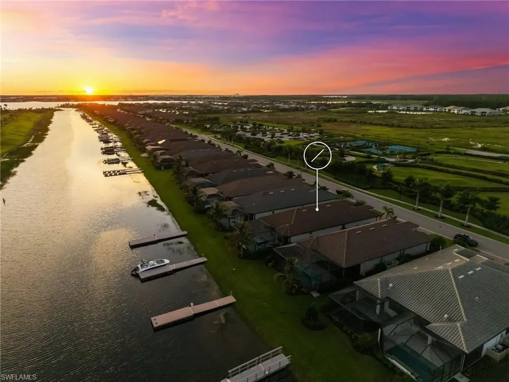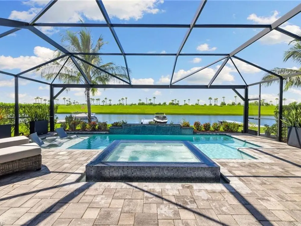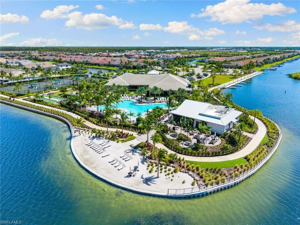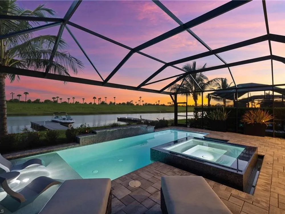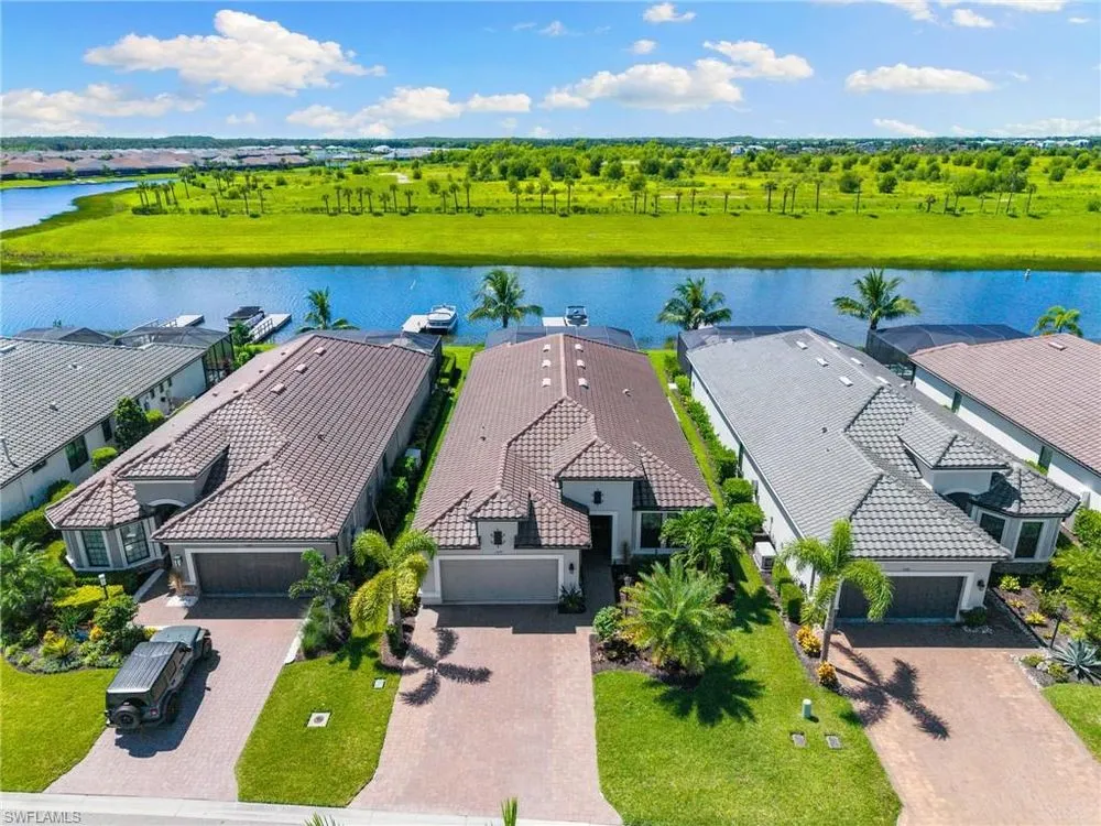 Welcome to Esplanade Lake Club, the Areas newest and most sought-after resort-lifestyle lakefront community! This stunning Lazio boatable lakefront home offers 3 spacious bedrooms, 3 full bathrooms, versatile study or den, and a 2-car garage. The open-concept layout effortlessly blends indoor and outdoor living amplifying natural light, warmth, and a grand atmosphere. Boasting thoughtful upgrades throughout, this home was carefully crafted for entertaining and enjoyment. Including expanded gourmet kitchen featuring top-of-the-line GE Cafe appliances, upgraded cabinetry, chef’s prep sink, natural gas, dry bar, extended casual dining space, private study, custom window treatments, expanded outdoor living coverage with dining area pre-plumbed for an outdoor kitchen, a private boat dock, built-in-garage-storage, workspace and epoxy flooring, and custom built-in closets throughout for thoughtful organization in every room. As well, upgraded landscaping surrounding the home. This home needs to be seen to be appreciated. The owner-suite provides a spa-esc environment with dual vanities and an oversized walk-in shower. Bedrooms are all ensuite offering comfort and privacy for family and guests. Step outside into your private oasis - featuring a custom heated pool with three waterfalls, raised 360° glass tiled spillover spa, sun-shelf with dip-loungers, and southern exposure for all-day sun. Enjoy peaceful privacy paired with breathtaking sunset and sunrise views all year long with no-one behind you due to the protected open space adjacent to the oasis. No matter the occasion - this home provides a backdrop that’s guaranteed to exceed expectations. Having hurricane-impact windows and doors, this home offers protection, peace of mind, and tranquility. As a resident of Esplanade Lake Club, you will enjoy remarkable amenities including a clubhouse, private beach, resort-style pool, bar & grille, fitness center, spa, tennis, pickleball, bocce, walking trails, and lifestyle programs. This home, and lot location is extremely unique and highly sought after as it backs to water and a preserve with unmatched views; the front also faces open space and is a quick walk across the street to the pickleball courts, dog parks, and children's park. A truly rare opportunity to own a home in one of Southwest Florida’s most desirable locations.