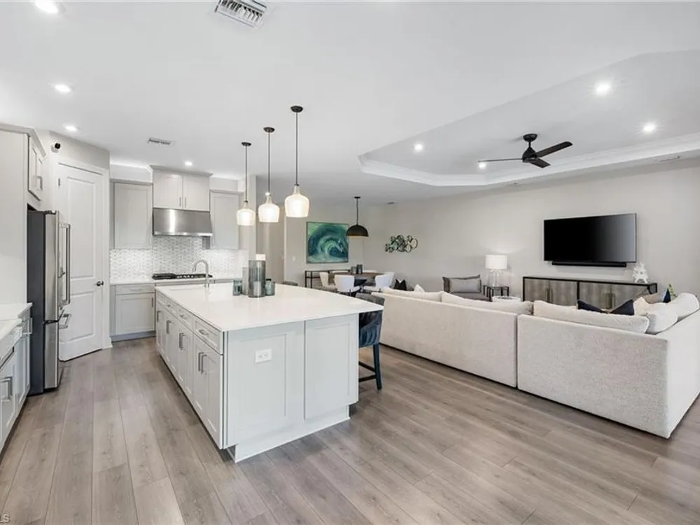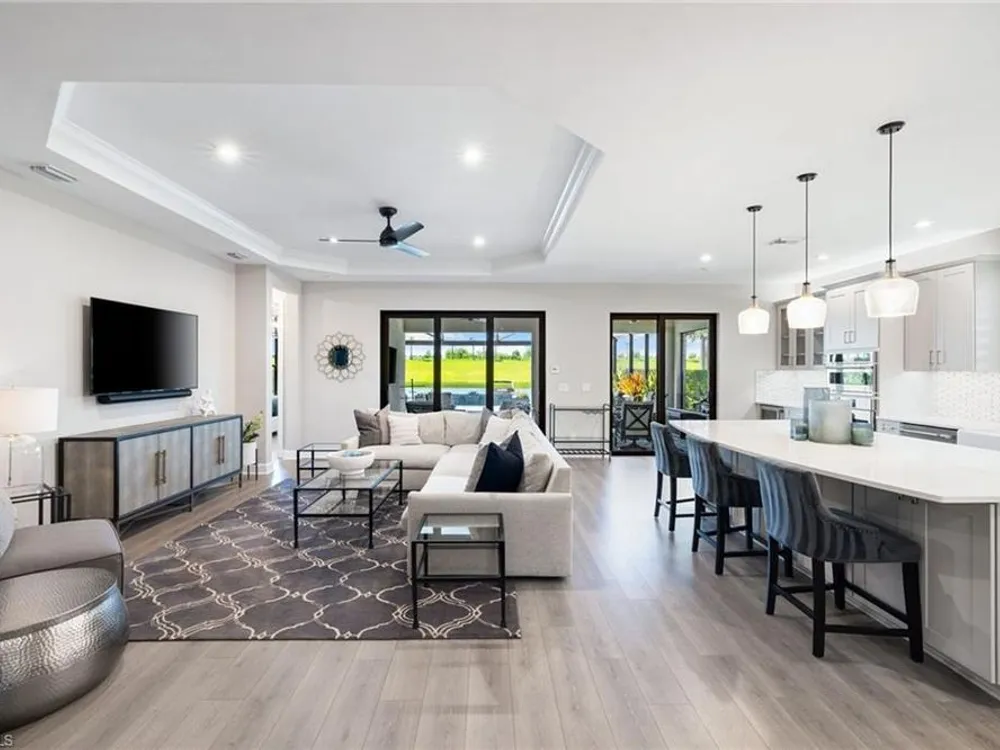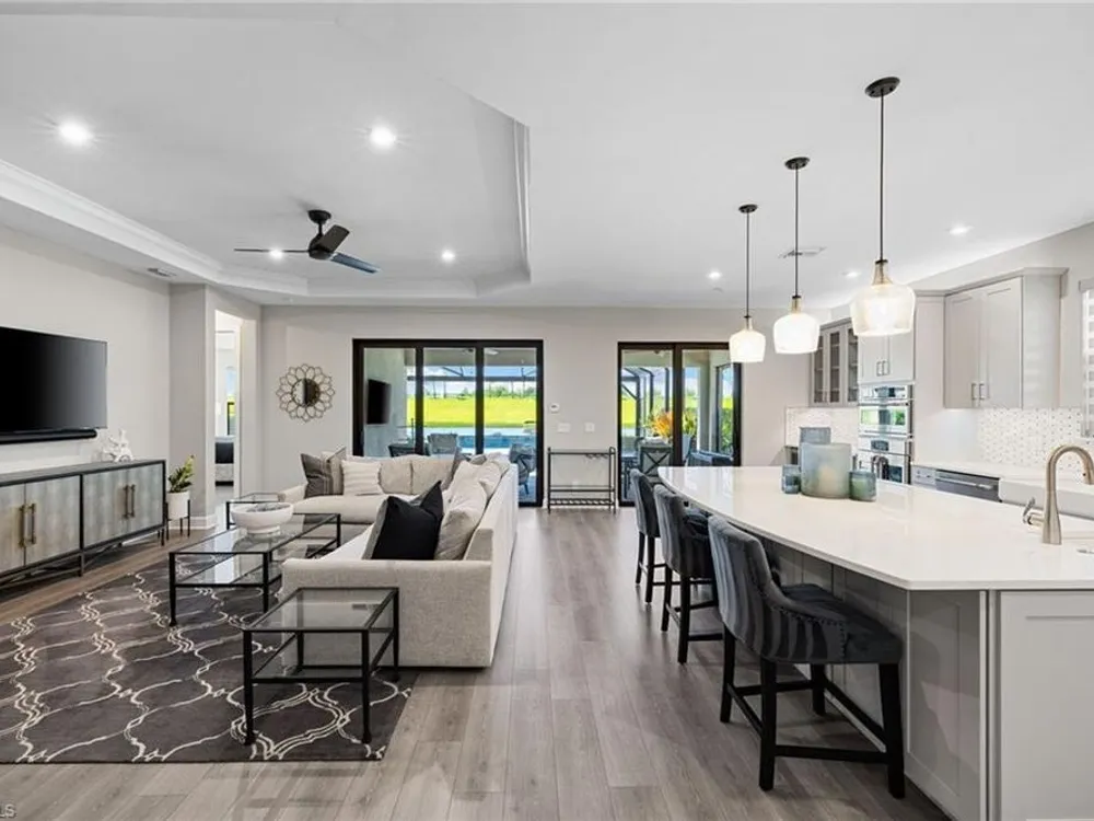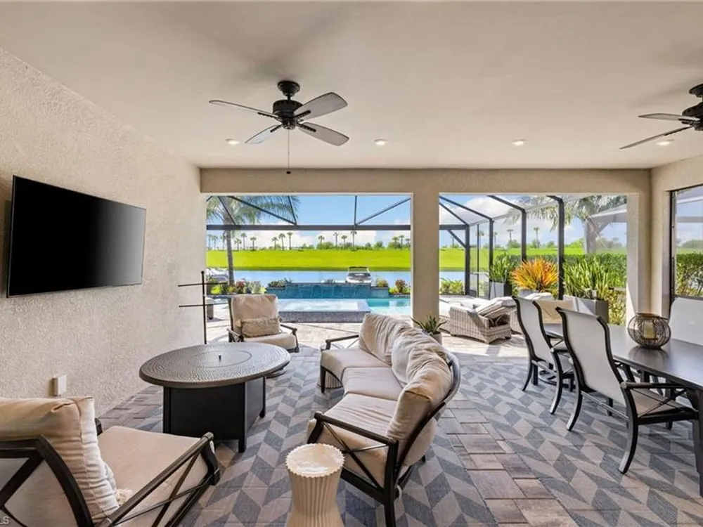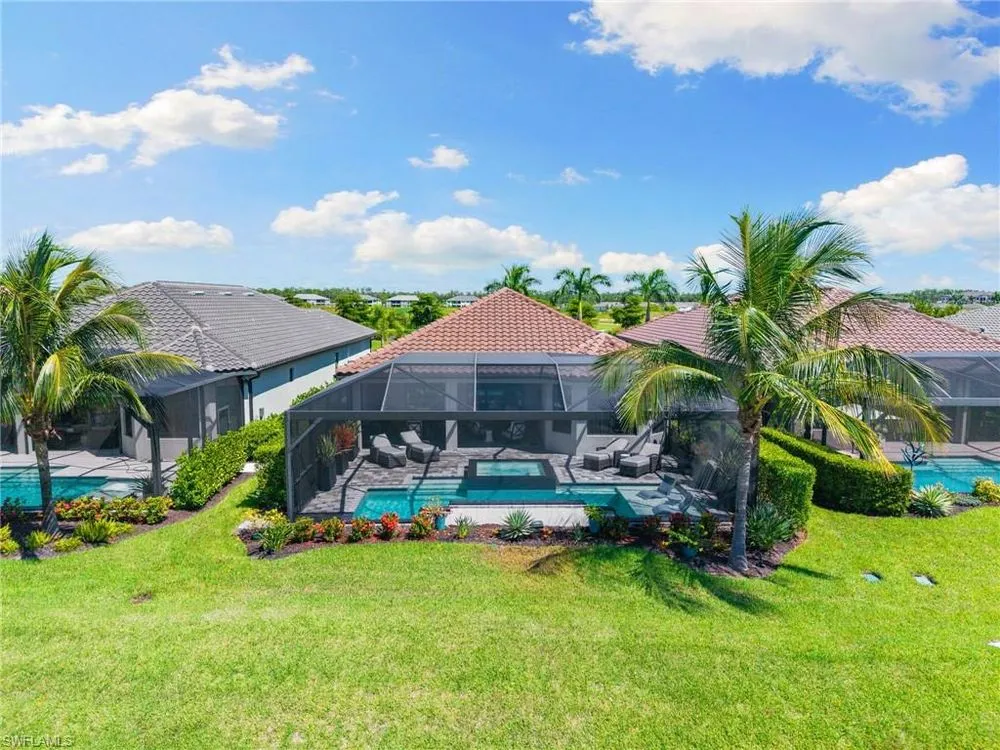 Welcome to Esplanade Lake Club, the Areas newest and most sought-after resort-lifestyle lakefront community! This stunning Lazio boatable lakefront home offers 3 spacious bedrooms, 3 full bathrooms, versatile study or den, and a 2-car garage. The open-concept layout effortlessly blends indoor and outdoor living amplifying natural light, warmth, and a grand atmosphere. Boasting thoughtful upgrades throughout, this home was carefully crafted for entertaining and enjoyment. Including expanded gourmet kitchen featuring top-of-the-line GE Cafe appliances, upgraded cabinetry, chef’s prep sink, natural gas, dry bar, extended casual dining space, private study, custom window treatments, expanded outdoor living coverage with dining area pre-plumbed for an outdoor kitchen, a private boat dock, built-in-garage-storage, workspace and epoxy flooring, and custom built-in closets throughout for thoughtful organization in every room. As well, upgraded landscaping surrounding the home. This home needs to be seen to be appreciated. The owner-suite provides a spa-esc environment with dual vanities and an oversized walk-in shower. Bedrooms are all ensuite offering comfort and privacy for family and guests. Step outside into your private oasis - featuring a custom heated pool with three waterfalls, raised 360° glass tiled spillover spa, sun-shelf with dip-loungers, and southern exposure for all-day sun. Enjoy peaceful privacy paired with breathtaking sunset and sunrise views all year long with no-one behind you due to the protected open space adjacent to the oasis. No matter the occasion - this home provides a backdrop that’s guaranteed to exceed expectations. Having hurricane-impact windows and doors, this home offers protection, peace of mind, and tranquility. As a resident of Esplanade Lake Club, you will enjoy remarkable amenities including a clubhouse, private beach, resort-style pool, bar & grille, fitness center, spa, tennis, pickleball, bocce, walking trails, and lifestyle programs. This home, and lot location is extremely unique and highly sought after as it backs to water and a preserve with unmatched views; the front also faces open space and is a quick walk across the street to the pickleball courts, dog parks, and children's park. A truly rare opportunity to own a home in one of Southwest Florida’s most desirable locations.