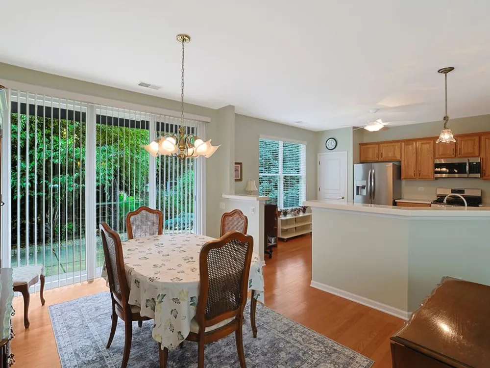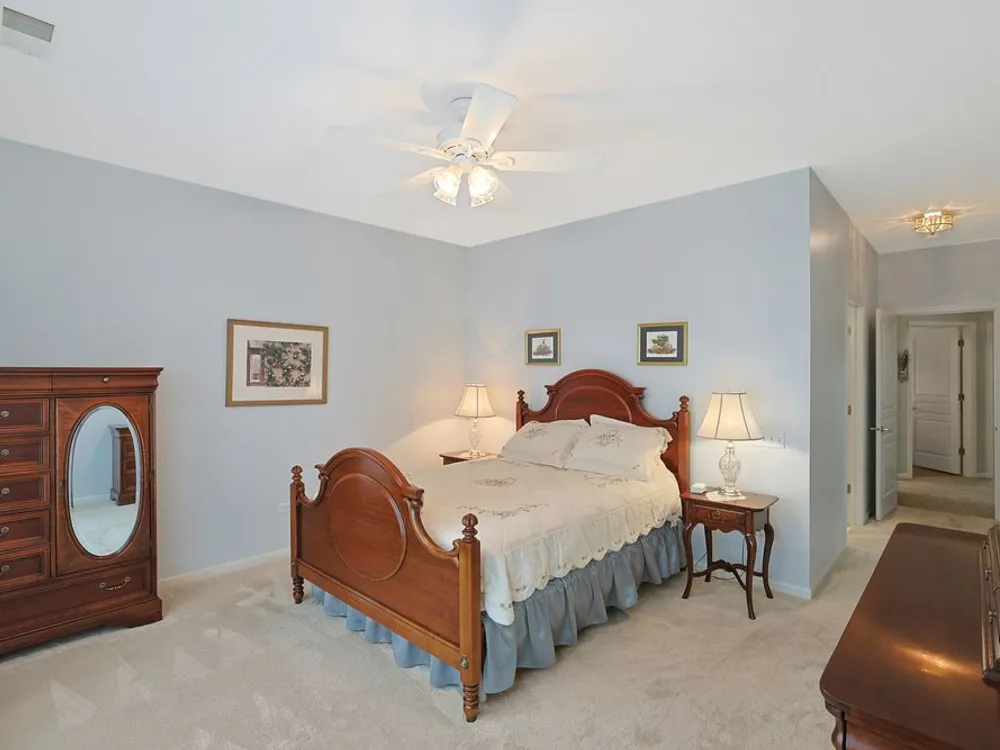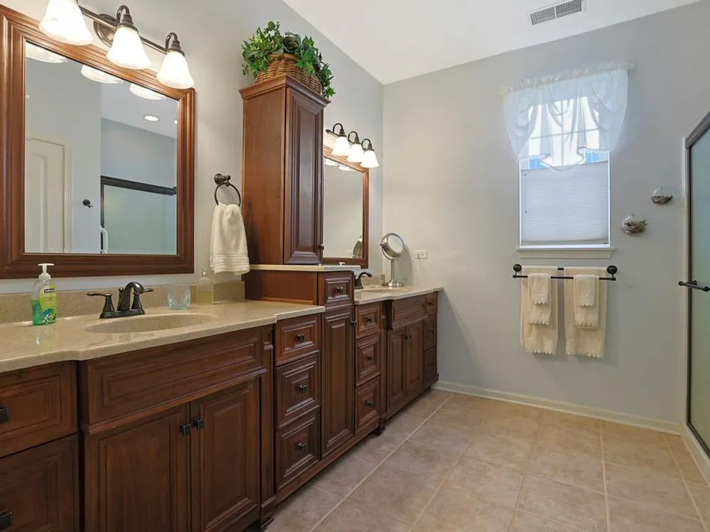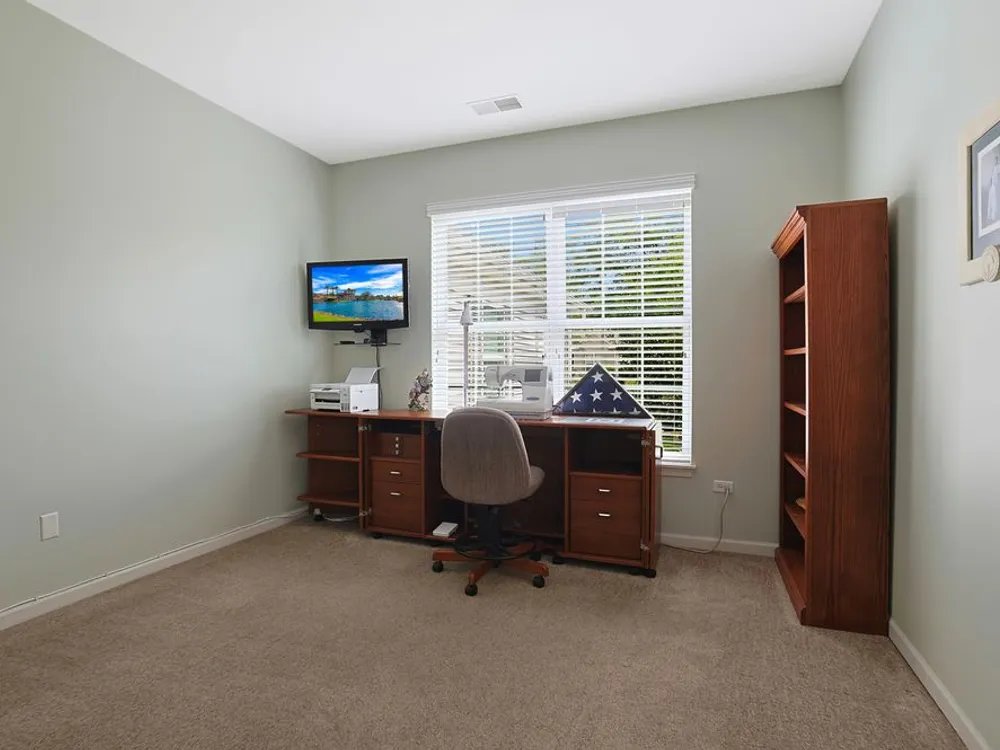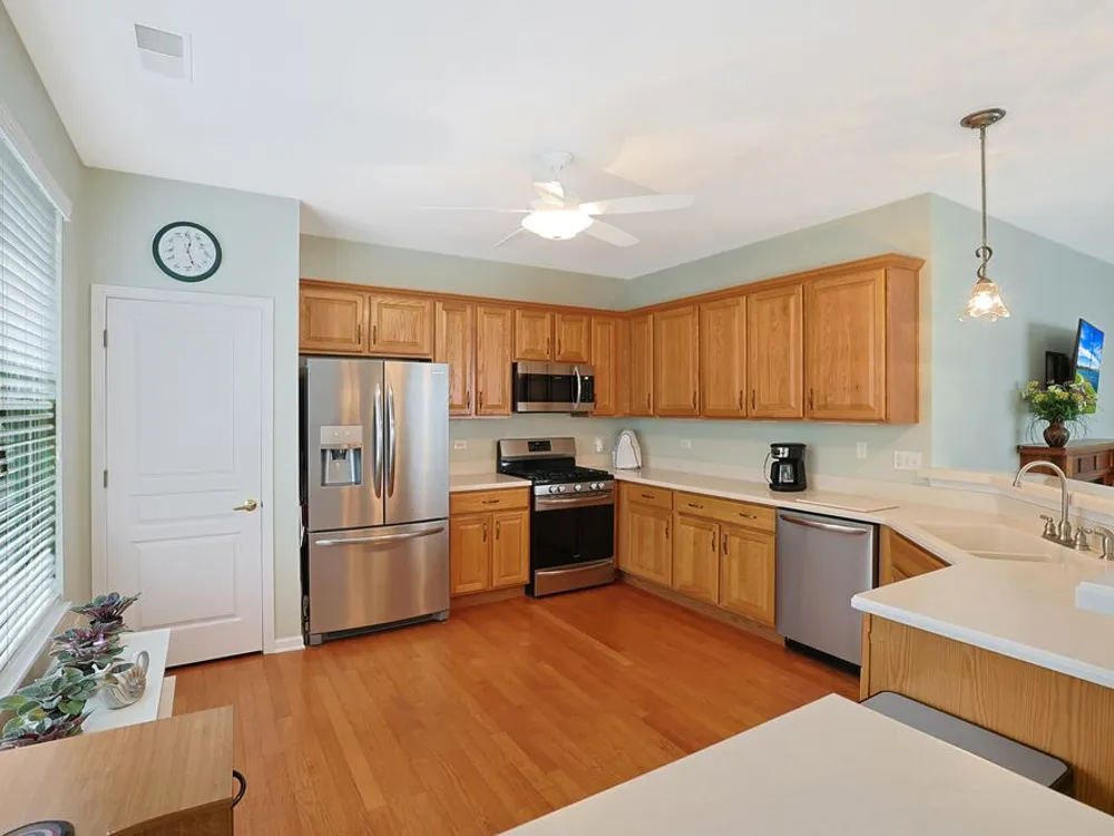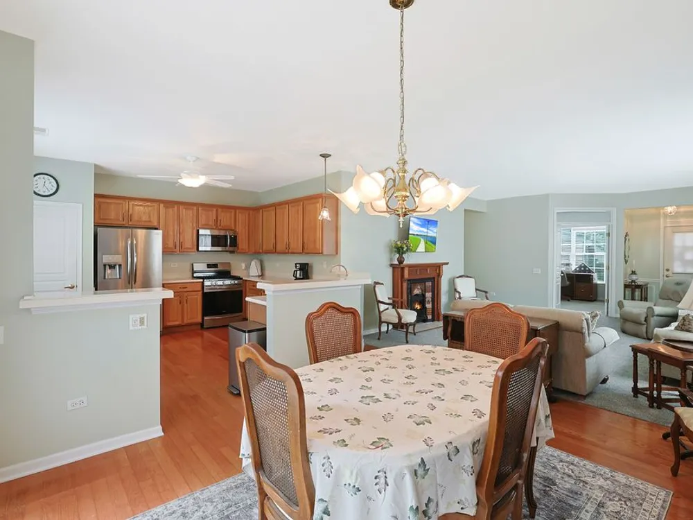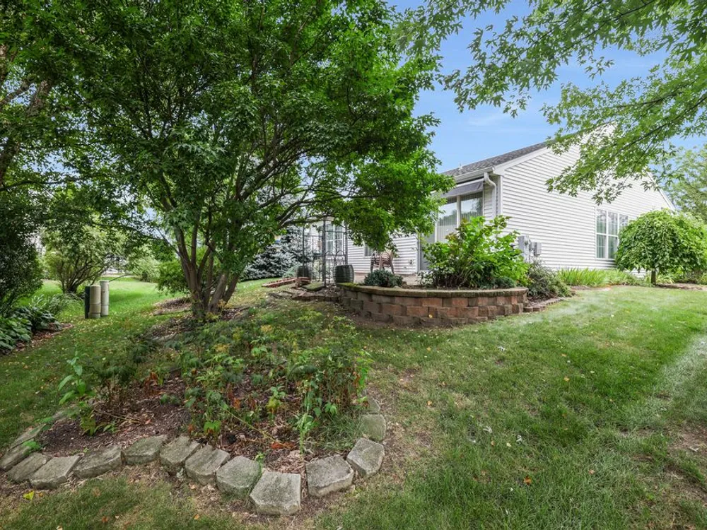 Live the Sun City Huntley dream in this pristine Geneva plan home.This beautifully maintained home offers 2 bedrooms, a den, and 2 bathrooms, combining comfort, style, and thoughtful updates. The kitchen features crown-topped cabinetry, Corian countertops, and stainless steel appliances. Fresh, newer carpeting adds warmth throughout. The primary suite boasts an elegantly remodeled bath with dual sinks, custom cabinetry, and a step-in shower. The second bath includes a 2018 Safe Step walk-in tub for ultimate convenience. Major updates give you peace of mind: HVAC (2022), 50-gallon water heater (2020), roof (2019), and stainless steel kitchen appliances plus washer/dryer (2017-2018). A charming antique fireplace with electric firebox adds a cozy focal point and stays with the home. The extended garage will offer extra storage. Step outside to a maturely landscaped backyard with a power awning-perfect for relaxing in the shade. This move-in-ready gem is sure to exceed expectations!