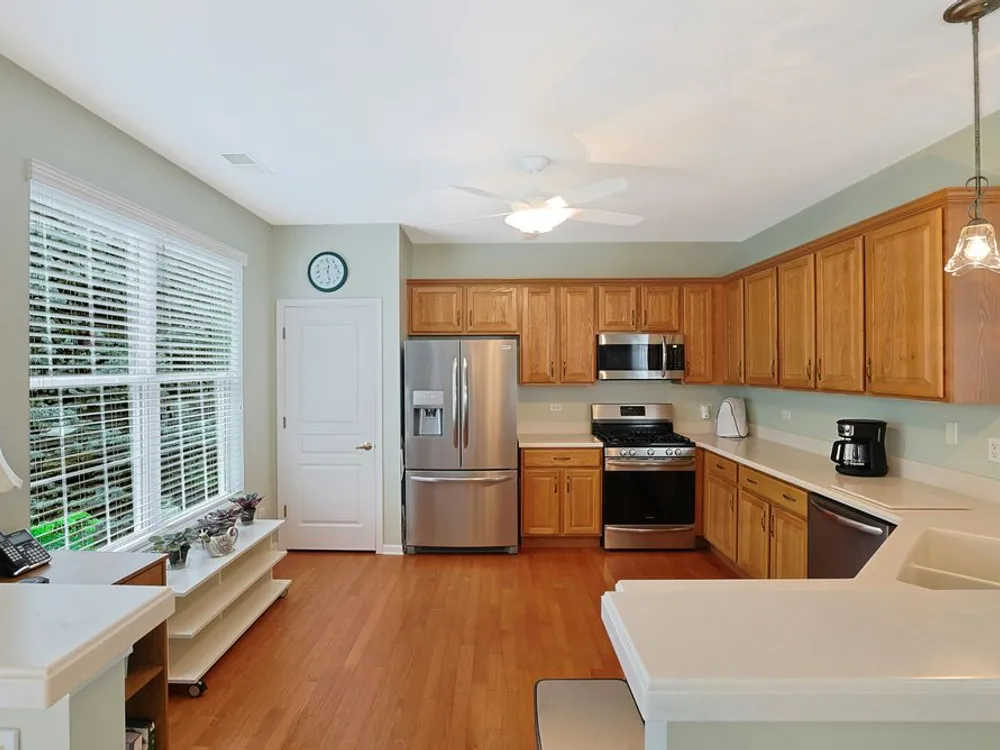 - Range, Microwave, Dishwasher, Refrigerator, Washer, Dryer, Disposal, Stainless Steel Appliance(s)