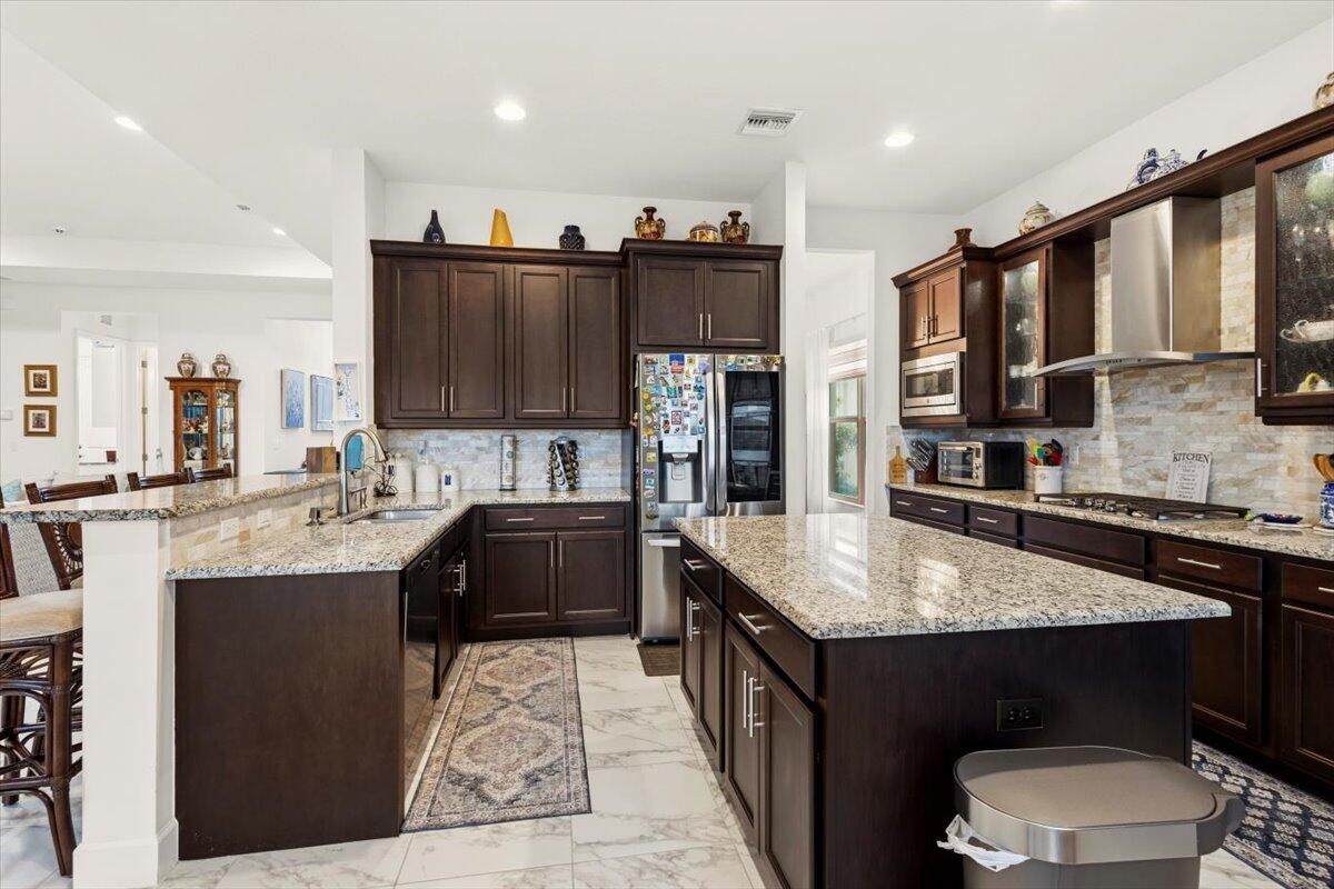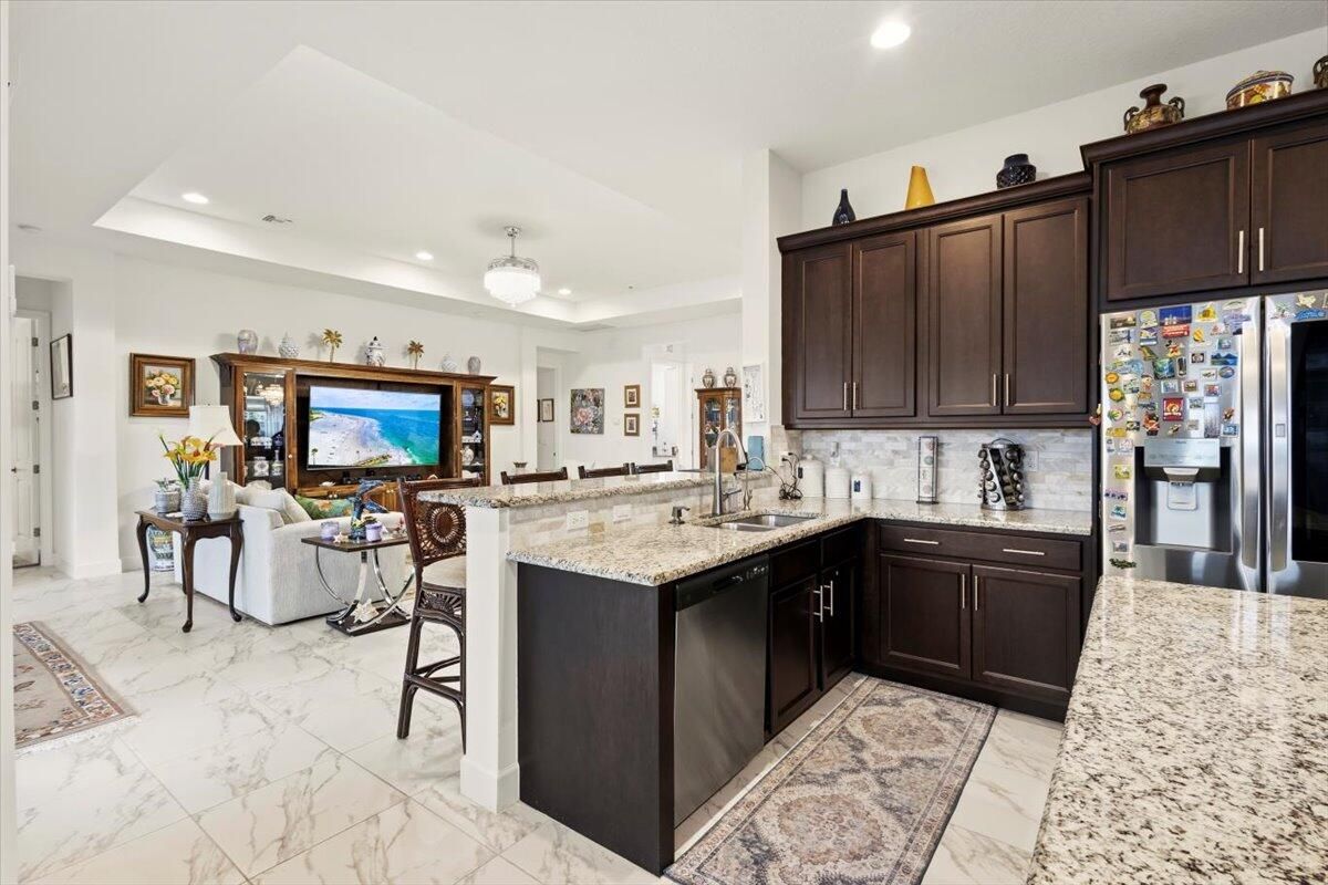 A rare opportunity to own a masterfully designed contemporary estate where sophistication meets comfort. This 3Br 3.5Bth architectural showpiece features soaring ceilings and seamless indoor-outdoor lifestyle with elevated waterfront living. Designed for both grand entertainment and intimate relaxation, this home boasts an open-concept floor plan with designer finishes. The chef's kitchen appointed with top-tier appliances, custom cabinetry and an island perfect for entertaining, flows effortlessly into expansive living spaces & out to a private outdoor oasis featuring a summer kitchen, pool and spa. The expansive primary suite offers a spa-inspired bath. Located in an exclusive gated active adult community near premier dining, shopping and much more, this home delivers refined luxury at every turn. A true sanctuary offering elegance, privacy and unparalleled lifestyle. Guest will enjoy 2 additional ensuite bedrooms and a den for additional entertainment or optional 4th bedroom. This Julia Model home also offer a 3 car garage, an oversized laundry room with soaking tub & powder room. This home also has Solar Panels and equipped with a Generator. Nestled in the highly coveted Valencia Grove at Riverland in Port Saint Lucie the community offers a 34K SF Clubhouse with a pool, full-service restaurant, card rooms, and billiards. The Arts & Culture Center features art, pottery, and cooking classes, while the 24-acre Sports & Racquet Club boasts a 51K SF Wellness & Fitness Center. Riverland boasts the largest Pickleball facility with over 50 Pickleball Courts, Tennis Courts, Bocce and so much more. COME ON HOME TO VALENCIA COVE AT RIVERLAND!!!