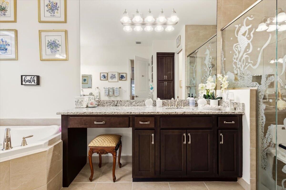 - Built-in Features, Entrance Foyer, High Ceilings, Walk-In Closet(s), Split Bedrooms, Garden Tub/Roman Tub, Impact Glass, Breakfast Area, Separate/Formal Dining Room, Snack Bar, Dual Sinks, Main Level Primary, Separate Shower, Soaking Tub