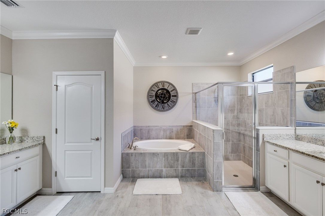 - Breakfast Bar, Built-in Features, Bathtub, Closet Cabinetry, Coffered Ceiling(s), Dual Sinks, Family/Dining Room, French Door(s)/Atrium Door(s), Jetted Tub, Kitchen Island, Living/Dining Room, Pantry, Separate Shower, Walk-In Pantry, Walk-In Closet(s), Window Treatments, High Speed Internet, Split Bedrooms