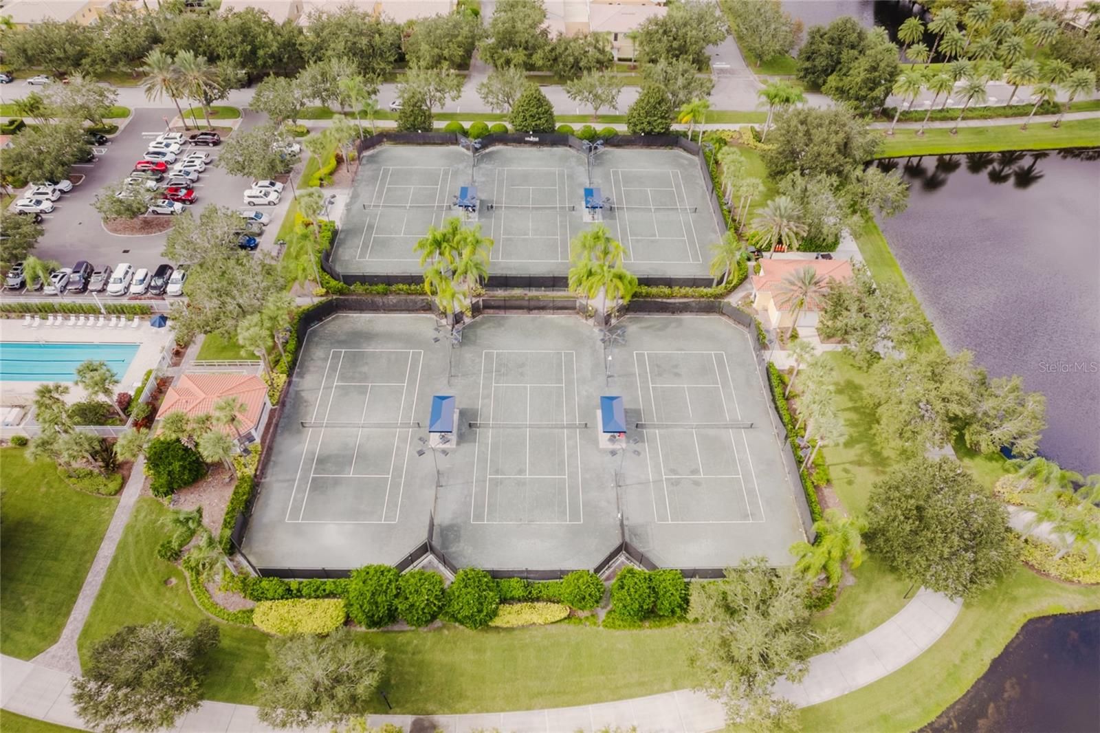 - Clubhouse, Deed Restrictions, Gated, Guarded Entrance, Playground, Pool, Sidewalks, Tennis Court(s)