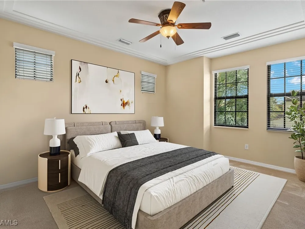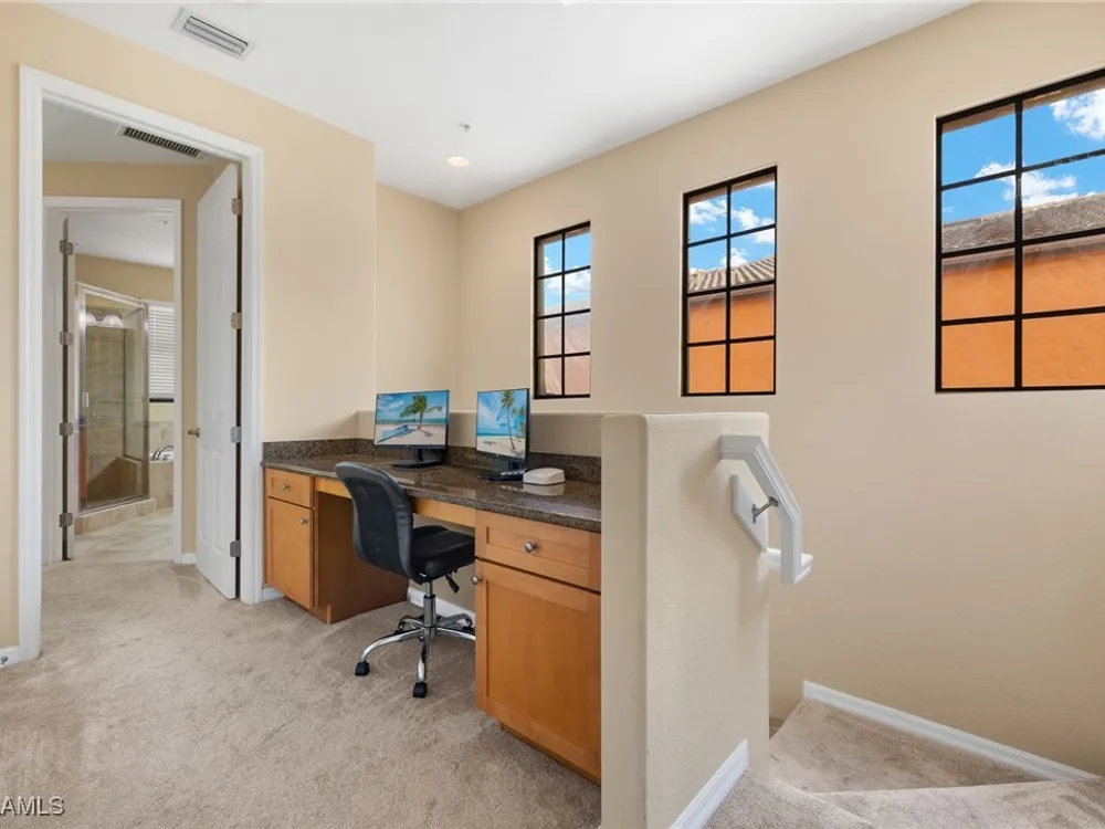 The BEST PRICE 2 CAR GARAGE UNIT IN PASEO. Seller says SELL! Paseo offers a LUXURY lifestyle that’s hard to beat in the HEART of southwest Florida. This 2 bed, 2.5 bath townhome, the Beautiful Carmel Casita Model is a great fit whether you’re looking for a full-time home or a seasonal getaway. It’s two stories, with a practical layout that includes a comfortable living area, dining space, and a functional kitchen. The private pavered patio can be screened in if desired, and the 2-car garage offers plenty of storage. Upstairs, there’s a versatile loft space that works well as an office or den. Both bedrooms have en suite bathrooms and their own closets, and the laundry room is conveniently located upstairs too. What really stands out here is the community. Paseo is known for its resort-style amenities offering a resort style heated pool with cabanas, an incredible tiki bar, hot tub/spa, state of the art fully equipped gym, a movie theater, your own pub style restaurant, coffee shop, salon, and even an ice cream shop! Sports lovers, its perfect for YOU! You’ve got tennis, pickleball, bocce ball, and more. It is the perfect community for anyone looking for an active, social lifestyle in the heart of Southwest Florida!! If you’re considering a move or just want to learn more, I’d be happy to show you around.