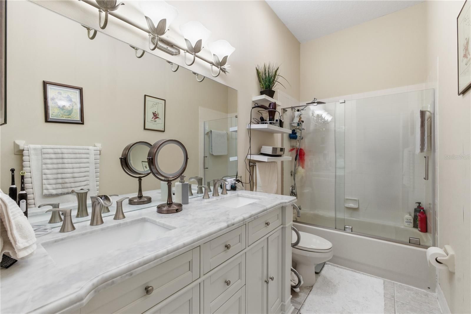 Beautifully Updated 3 Bedroom + Office/Den, 2.5 Bath Home with full house generator, huge screened Lanai and Park-Like Private Yard and Room for a Pool — Located in the Gated Community of Grand Haven An absolute rare find! This beautifully updated home blends comfort, quality, and timeless charm, surrounded by lush landscaping, court yard garage with deep paved driveway. Featuring 3 bedrooms plus a private office/den, 2.5 bathrooms, and a spacious split-floor plan, this residence offers an inviting flow both inside and out. Step into a bright, open living space featuring tall ceilings, elegant trim, and rich hardwood floors in all living and bedroom areas and tiled in the rest. The formal dining room flows effortlessly into the cozy family room with an electric fireplace, creating the perfect setting for gatherings and relaxation. The brand-new truly eat-in kitchen (updated 2018) showcases light quartz countertops, newer stainless-steel appliances, large soft-close cabinets, and a walk-in pantry — almost a second prep area — with an additional refrigerator and extra counter space. Sliding doors open from the breakfast nook to an expansive covered porch with summer kitchen, leading to a pavered lanai and private park-like backyard with plenty of room for a future pool or garden retreat. The spacious master suite is filled with natural light and includes a large walk-in closet and luxurious bath featuring dual vanities, a garden tub, and a walk-in shower. Two guest bedrooms on the opposite side of the home share a stylish bath with double sinks and a tub/shower combination. The office/den with plenty of room for a Murphy bed, making it perfect for working from home or accommodating guests. Recent Upgrades and Features: Whole-house generator (2020) — includes 5 years of warranty remaining New roof (2022) and fresh exterior paint (2022) Paver driveway (2018) and lanai pavers (2018) Stone exterior accents (2021) with new trim (2024) New irrigation pump (2023) and system updated over time Quartz kitchen counters, new sink & faucet, disposal (2020), microwave (2022), dishwasher (2022), refrigerator (2024) All bedrooms feature hardwood floors (2018) Master bath renovated (2020) with new vanities, sinks, toilet, mirrored cabinets, and custom closet Guest baths updated (2020) with new vanities and sinks Lanai features Silas stone counters (2021) and screened enclosure (2017) Garage with built-in cabinets and counter (2019) AC (2013) and hot water heater (2014) Just one block from one of two heated saltwater community pools with hot tub, large gym, and a restaurant with indoor and outdoor dining. Enjoy a short walk or bike ride to the Intracoastal Esplanade and miles of scenic walking and biking trails, Tennis, Bocci and Pickle Ball courts. This move-in-ready home offers a perfect blend of elegance, updates, and resort-style living — a rare opportunity to own a beautifully maintained property in Grand Haven!