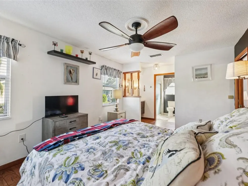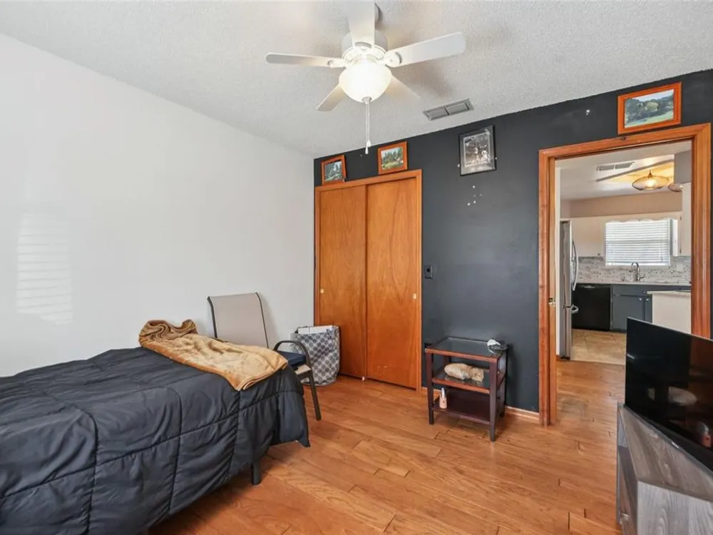 - Ceiling Fan(s), Open Floorplan, Main Level Primary, Solid-Wood Cabinets, Split Bedrooms, Stone Counters, Walk-In Closet(s)