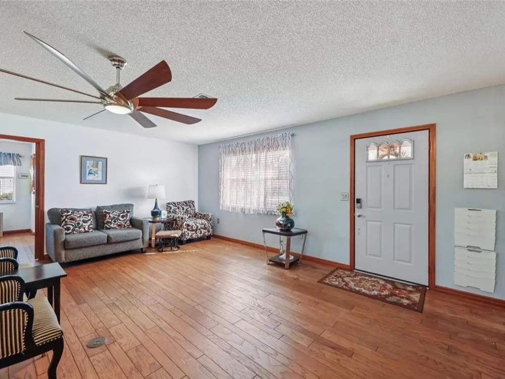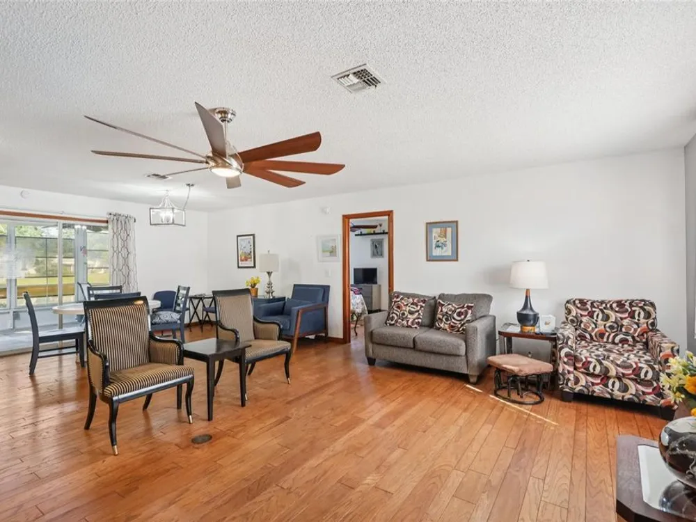 Welcome to this attractive 2-bedroom, 2-bathroom home on an oversized lot with a serene water view and a new roof (2022). Nestled in the peaceful, amenity-rich 55+ Scottish Highlands community, this home offers the perfect blend of comfort, convenience, and scenic beauty. Inside, you’ll find a spacious living area with real hardwood floors and tranquil water views that set a relaxing tone. The updated kitchen features modern appliances, perfect for both everyday cooking and entertaining. The primary suite offers a private retreat with water views, an updated ensuite bath, a huge walk-in closet, and direct access to the rear patio. Step outside to enjoy your morning coffee or evening gatherings overlooking the picturesque water. The second bedroom provides flexible space for guests or a home office. Beyond the home, Scottish Highlands offers exceptional amenities, including two pools, tennis, billiards, and year-round activities. Conveniently located near shopping, dining, hospitals, Mt. Dora, and The Villages, this community makes it easy to enjoy the best of Central Florida living. Don’t miss the chance to see this inviting home—schedule your showing today!