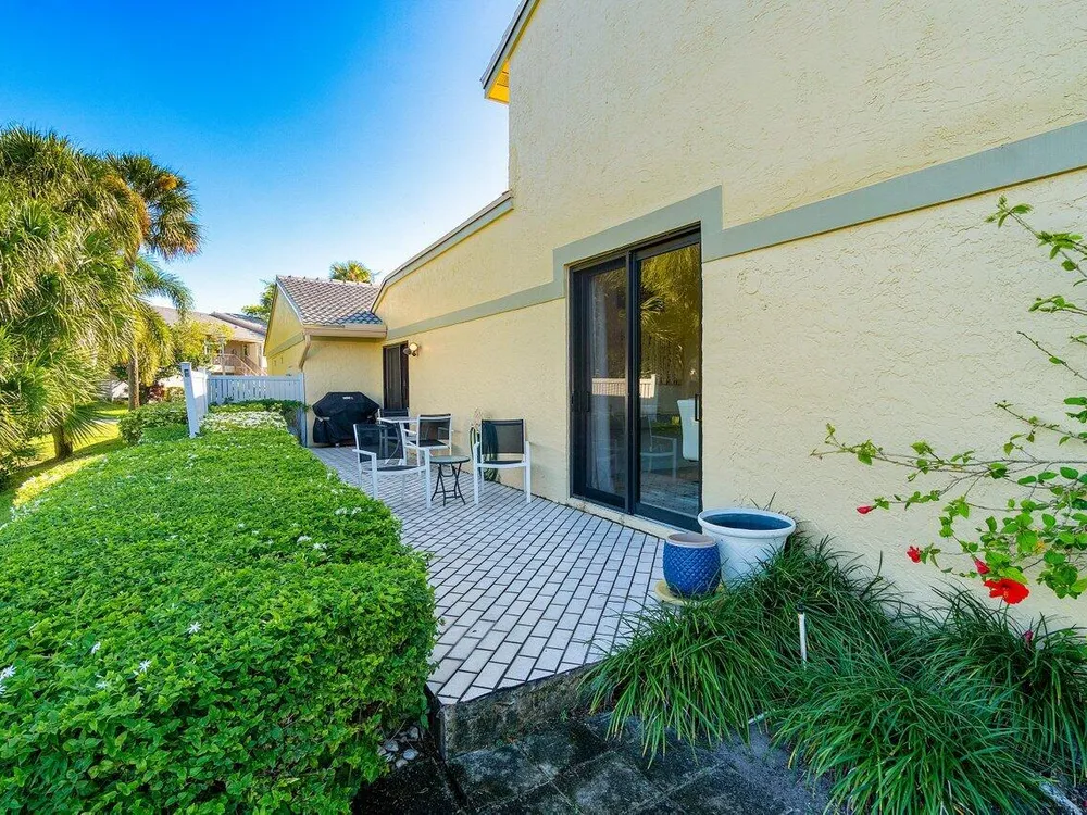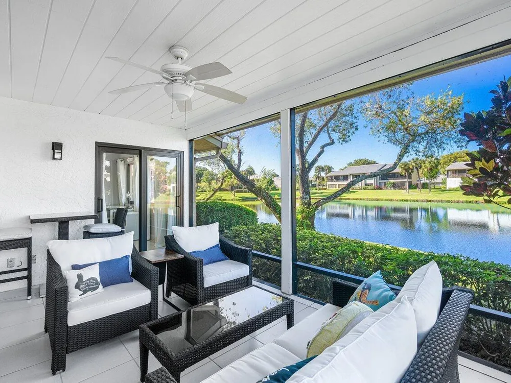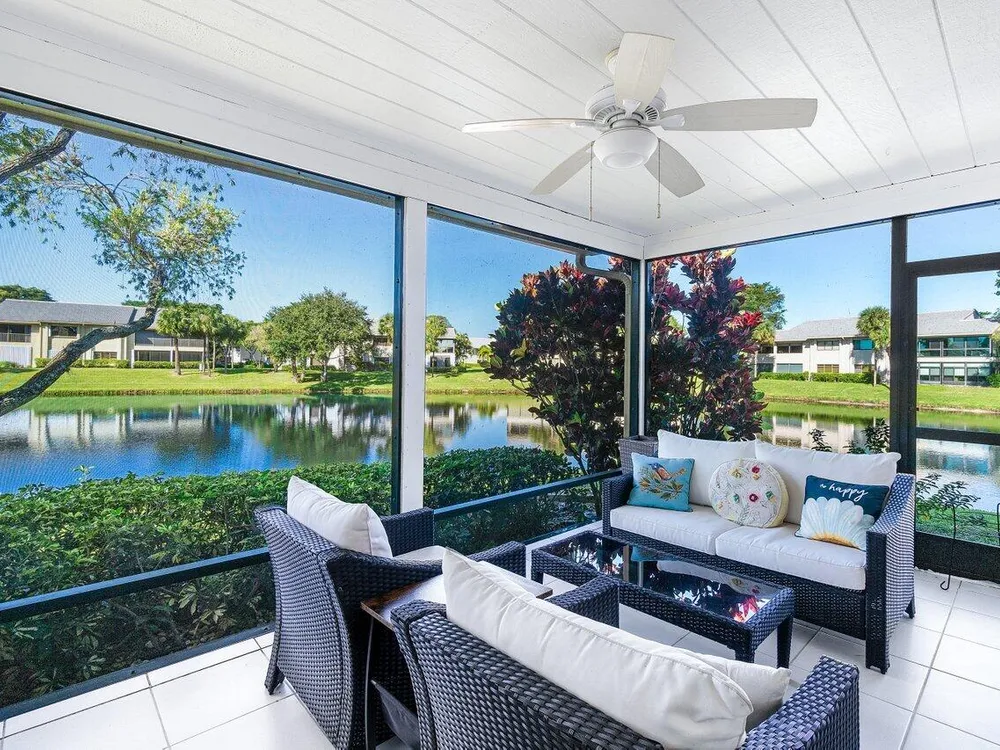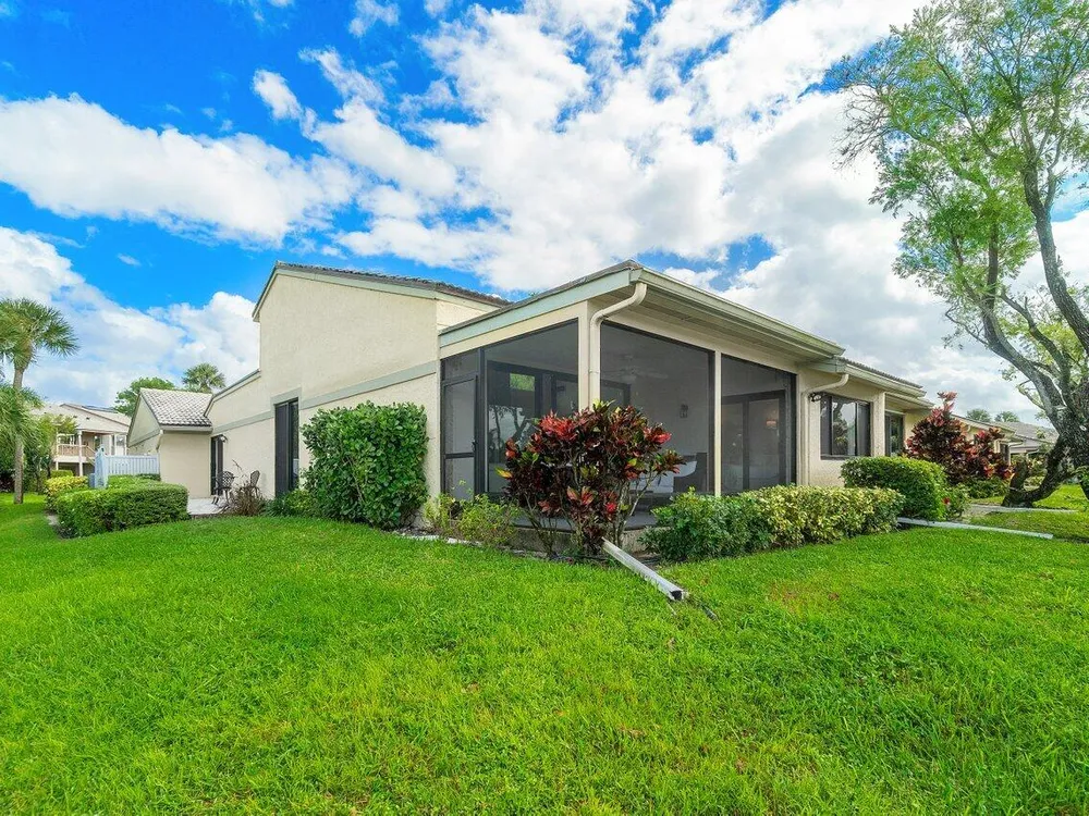 *PRICED TO SELL!* Tenant Occupied through 06/2026, with option to extend through 09/2026. Discover unparalleled privacy & panoramic water views from this bright and airy, impeccably maintained 2-bed corner villa in Eastgate at Hunters Run Country Club. This ideally located residence offers tranquility with its east-west orientation. Enjoy sunrise & morning coffee on the front patio, or unwind with sunset drinks & friends on the screened lanai. Other highlights include contemporary fixtures & tasteful hardware updates, expansive vaulted ceilings, hurricane-impact windows, 1.5-car garage, new roof installed 2024 & more. This exceptional villa is a rare find for the discerning buyer, ensuring hassle-free living at an unbeatable price for private club living. Furniture/furnishings negotiable.