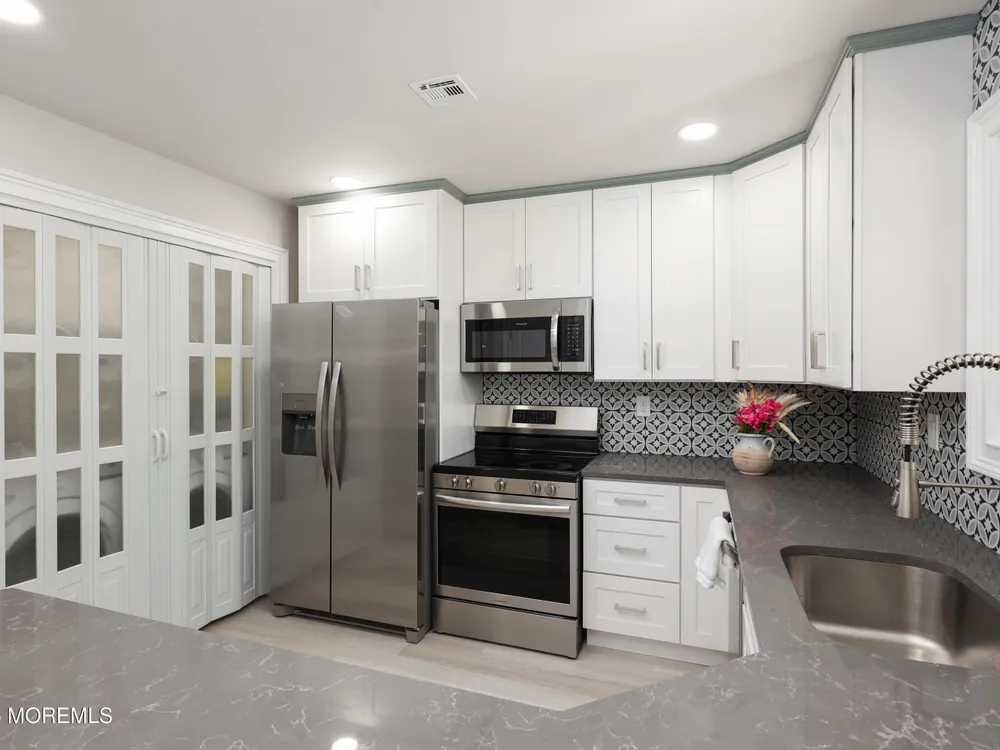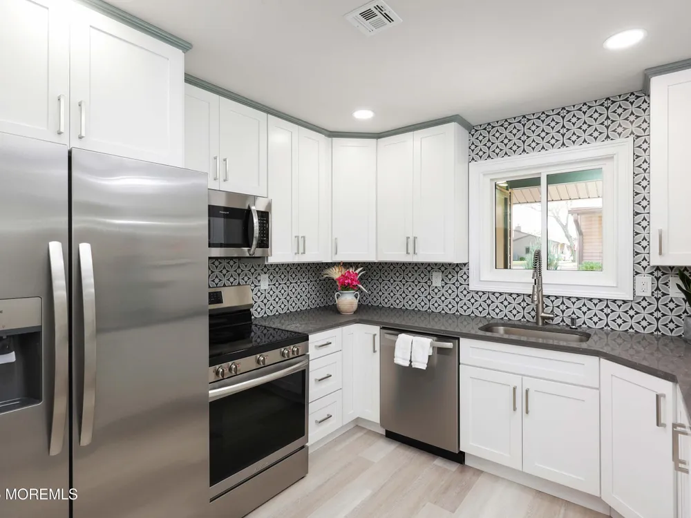 Coming Soon can't be shown until 10.2.2025. Presenting 12 Ellsworth Ct at Shadow Lake Village, an active adult community in the heart of Middletown. A stunning property that showcases the embodiment of elegance & modern living. Newly renovated custom-designed Villa 600 Ranch model with assigned parking spot right outside your front door, offers a spacious, comfortable layout perfect for those seeking a relaxed, maintenance-free lifestyle & boasting two bedrooms, two bathrooms & a den. The primary bedroom has a large custom closet, offering plenty of storage options & ensuring a clutter-free environment. The bathrooms have been redesigned to include spa-like custom tile showers, extra storage & beautiful vanities with granite countertops. Step into the living space & be captivated by the many contemporary touches. A wall of glass doors seamlessly connects the outside terrace to the den, providing an easy place to entertain or enjoy the picturesque surroundings. Recessed LED lighting illuminates the condo throughout, enhancing the modern aesthetic & creating a warm & welcoming feeling. This ranch has several upgrades designed to enhance comfort & convenience. Glass French doors, new thermostats for optimal climate control, luxury vinyl flooring in every room, new sliders & entrance door. The new HVAC system keeps the home cool during hot summer & cozy during the chilly winter months. The heart of this home is a brand-new kitchen blending functionality & style featuring stainless steel appliances, white shaker cabinets & granite countertops. Residents of Shadow Lake Village enjoy a host of amenities & community features, including access to a clubhouse, fitness center, swimming pool, & beautifully landscaped grounds. With convenient proximity to shopping, dining, & entertainment options, this property offers a truly exceptional lifestyle.