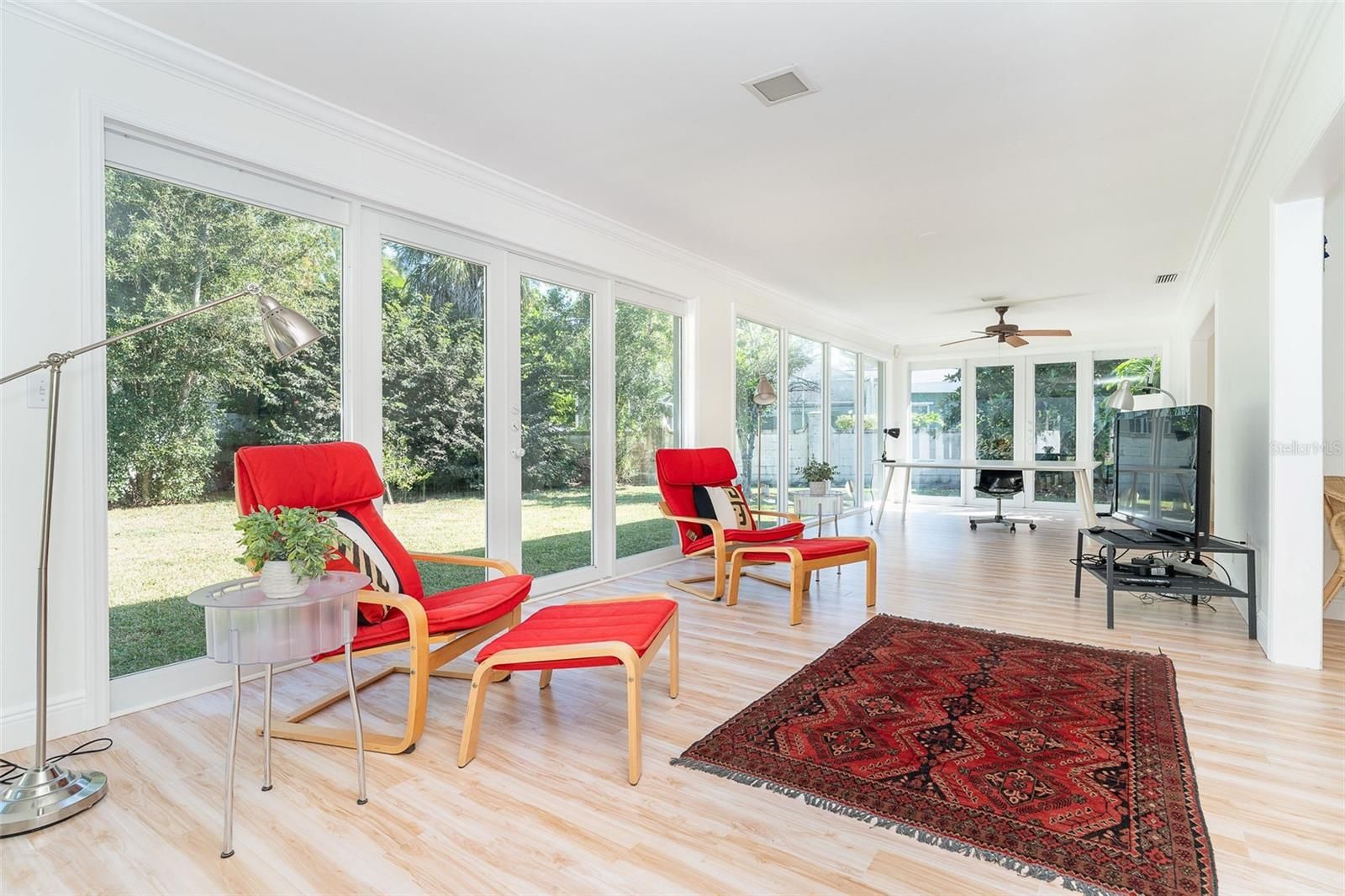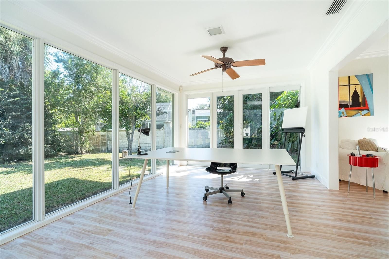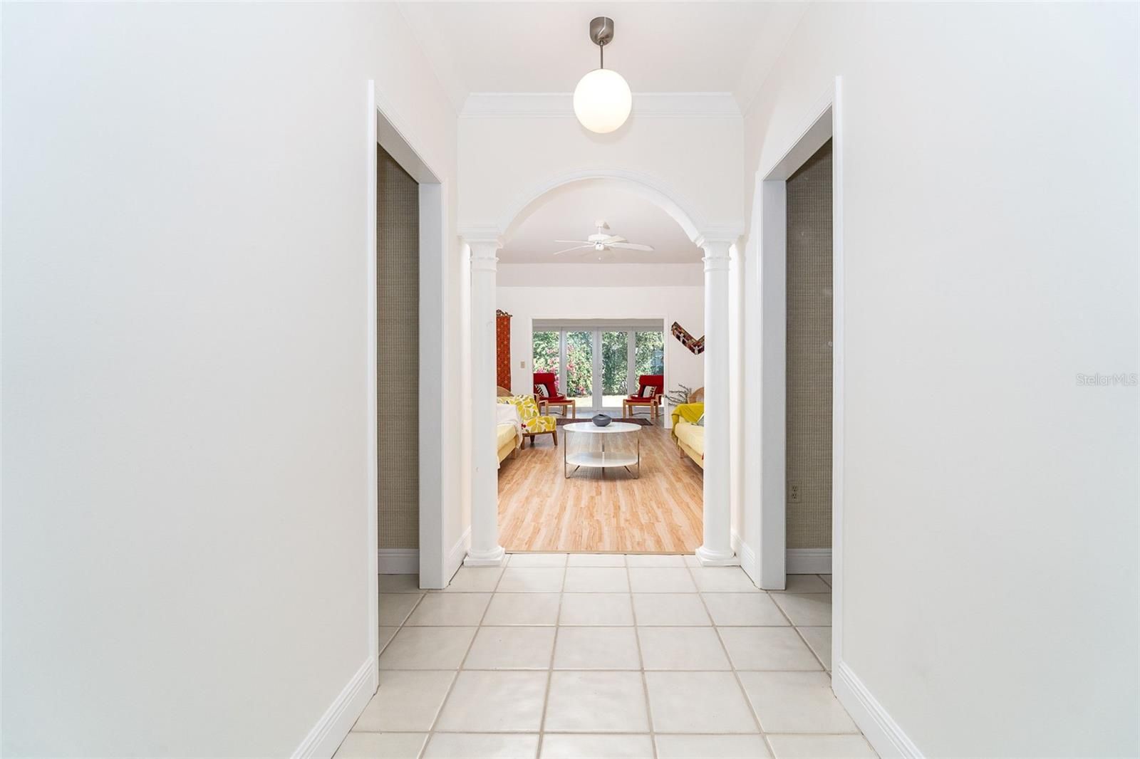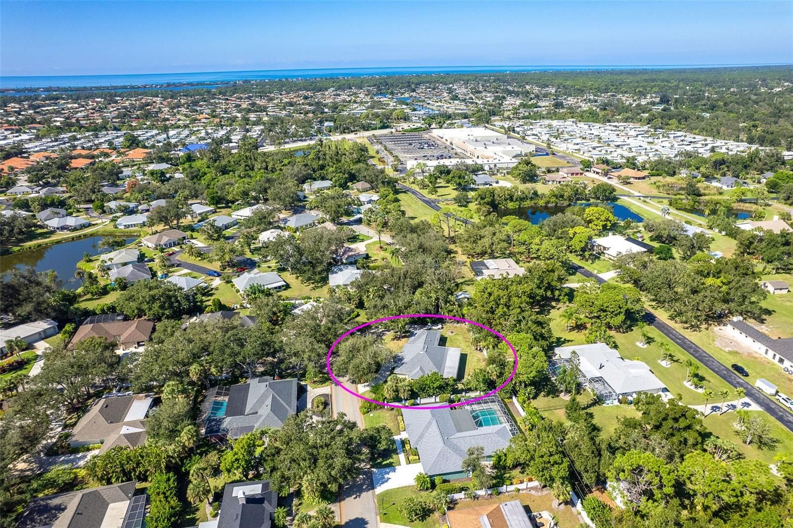Experience the charm of Old Florida living in this elegant 1980s home nestled in the desirable original neighborhood of Boca Royale Golf & Country Club. Offering over 2,600 sq. ft. of living space, this residence blends timeless character with modern updates, featuring 10-ft ceilings and an extended floor plan overlooking lush, oak-shaded grounds. Listed as a 3-bedroom in tax records, the owners have opened walls to create a spacious 2-bedroom layout—easily convertible back to include a master suite. Each bedroom enjoys its own private bath, and light laminate flooring brightens the space with a fresh, modern look while offering durability and easy maintenance—perfect for everyday living. The cheerful kitchen features charming vintage style with light blue cabinetry, ample counter space, and plenty of storage. A large overhead light fixture brightens the room, while the window above the sink brings in natural sunlight for a warm, inviting feel. Spacious and sun-drenched, this home is filled with natural light, creating an open, airy, and inviting atmosphere perfect for relaxing or entertaining. Expansive glass doors and windows line the back of the home, creating a seamless connection between the indoors and outdoors. The patio offers a perfect spot to relax or entertain while overlooking the spacious, lush backyard. Major updates include a new roof (2020), re-pipe (2015), electrical replacement (2014), and new HVAC (2019). Enjoy the resort lifestyle with golf, tennis, dining, and fitness amenities, just minutes from Manasota Key and Boca Grande beaches.