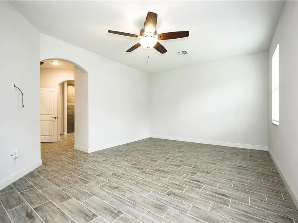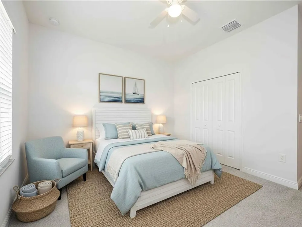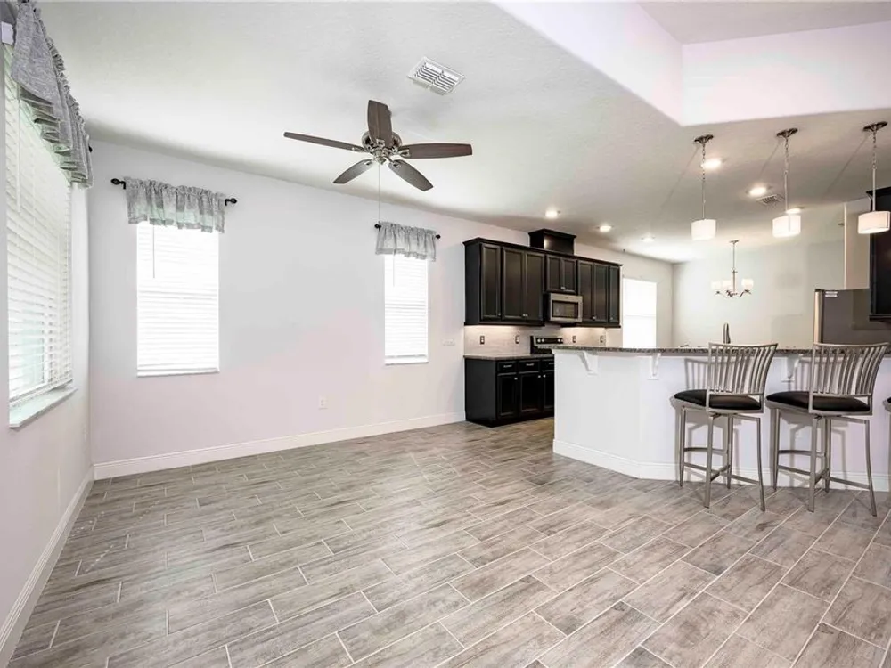 - Attic Ventilator, Ceiling Fan(s), Eat-in Kitchen, Living/Dining Room, Open Floorplan, Main Level Primary, Solid Surface Counters, Thermostat, Walk-In Closet(s), Window Treatments