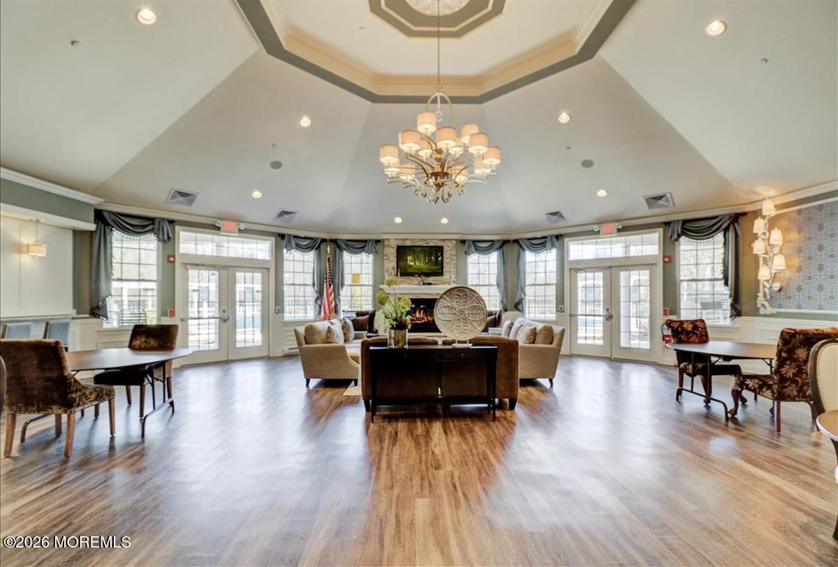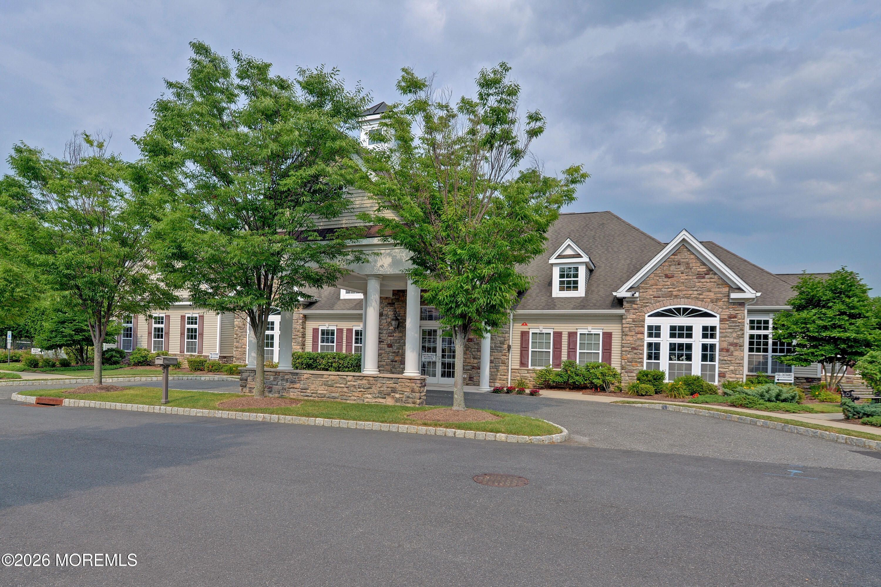 Discover luxury living in the highly sought-after Madison Crossing 55+ community. This rarely available Breckenridge model spans 2,307 sq. ft. of pristine living space and features a PRIVATE ELEVATOR. The home shines with hardwood floors throughout the foyer and a spacious eat-in kitchen featuring a center island. Relax by the gas fireplace in the living room, or step out onto your UPGRADED COMPOSITE deck to enjoy serene views of the wooded lot. The primary suite is a true retreat, boasting vaulted ceilings, two w.i.- closets, and a spa-like ensuite with a soaking tub. Large ground-floor bonus room with porch access. Both a deck and a patio overlooking lush greenery. Premium Amenities: 7,500 sq. ft. clubhouse, heated pool, fitness center, and courts for tennis and bocce. Prime Location: Walking distance to NYC transit and minutes from the best shopping and dining on Rt. 9.