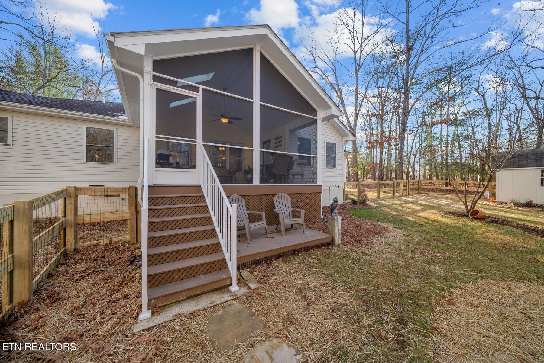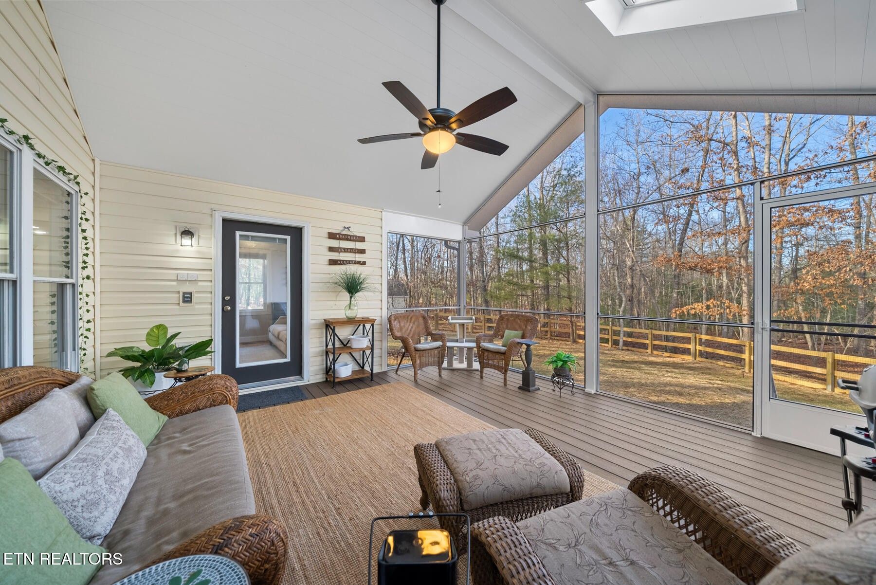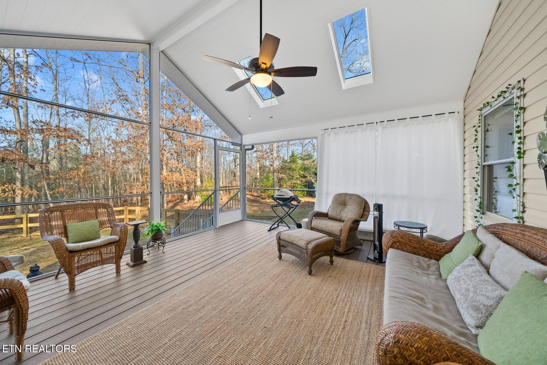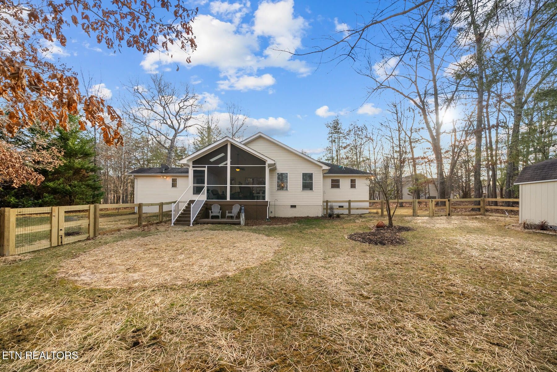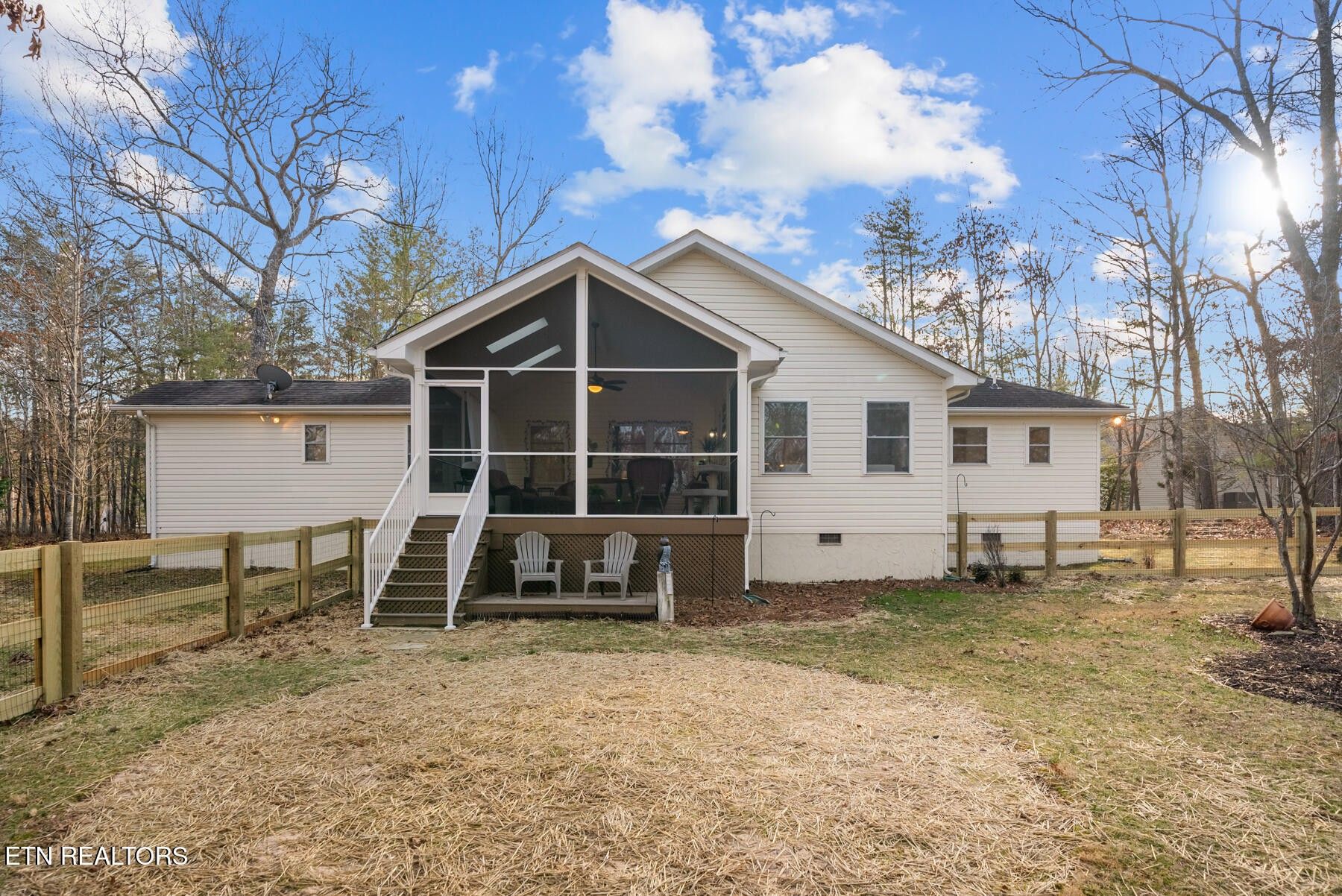 Tucked away on a quiet cul-de-sac, this beautifully upgraded 3-bedroom, 2-bath home sits on a rare double lot totaling .62 acres—already merged, so you enjoy the space while paying just one HOA fee. Surrounded by woods and nature, this property offers exceptional privacy and a peaceful setting that feels like a retreat, yet remains close to marinas, golf, and everyday conveniences. Inside, you'll find a bright, open layout filled with natural light from multiple skylights and solar tubes, complemented by gorgeous hardwood floors throughout. The fully updated kitchen is a standout, featuring all-wood Medallion cabinetry with soft-close drawers, quartz countertops, glass tile backsplash, and a full suite of brand-new Whirlpool stainless steel appliances, including a wine cooler. A new disposal and pull-down faucet complete the space, making it both stylish and functional. The primary suite is a true haven, offering a renovated en-suite bath with new Kohler toilet, updated fixtures, designer wall detailing, and a spacious sitting area. A huge walk-in closet and a conveniently located laundry room—with LG stackable washer and dryer included—add everyday ease. Secondary bedrooms provide flexibility for guests, crafts, or a home office. One of the secondary bedrooms features a walk-in closet, while the additional bedroom offers built-in shelving, making it ideal for an office, hobby room, or creative space. The dining room is currently used as a den but can easily be converted back. Enjoy outdoor living at its best with both front and back screened porches. The newly constructed rear screened porch by Sunset Builders features a soaring vaulted ceiling, tongue-and-groove boards, remote-controlled skylights, ceiling fan, and code-compliant screens that provide unobstructed views of the wooded backyard—perfect for relaxing year-round. The oversized fenced backyard includes multiple gates and has been freshly seeded for a lush lawn.