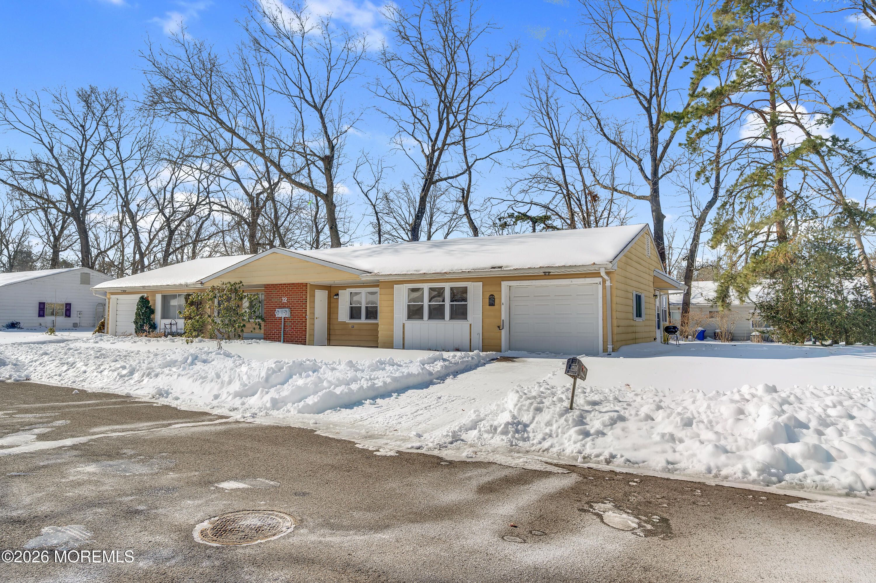 Move-in ready and well maintained, this spacious 2-bedroom, 1-bath Madison model duplex in Cedar Glen Lakes offers comfortable single-level living in a vibrant, pet-friendly 55+ community. Features include a large living room, a large country eat-in kitchen with stainless steel appliances, central A/C, walk-in closets, and a full bath. Freshly painted with newer carpet, this home also offers outdoor storage and an attached 1-car garage. The low HOA covers taxes, water/sewer, lawn care, snow removal, trash, roof maintenance, and more. Community amenities include a clubhouse, activities, and bus service. Conveniently located near Routes 70 & 539, and close to shopping, banks, and medical offices. Schedule your showing today!