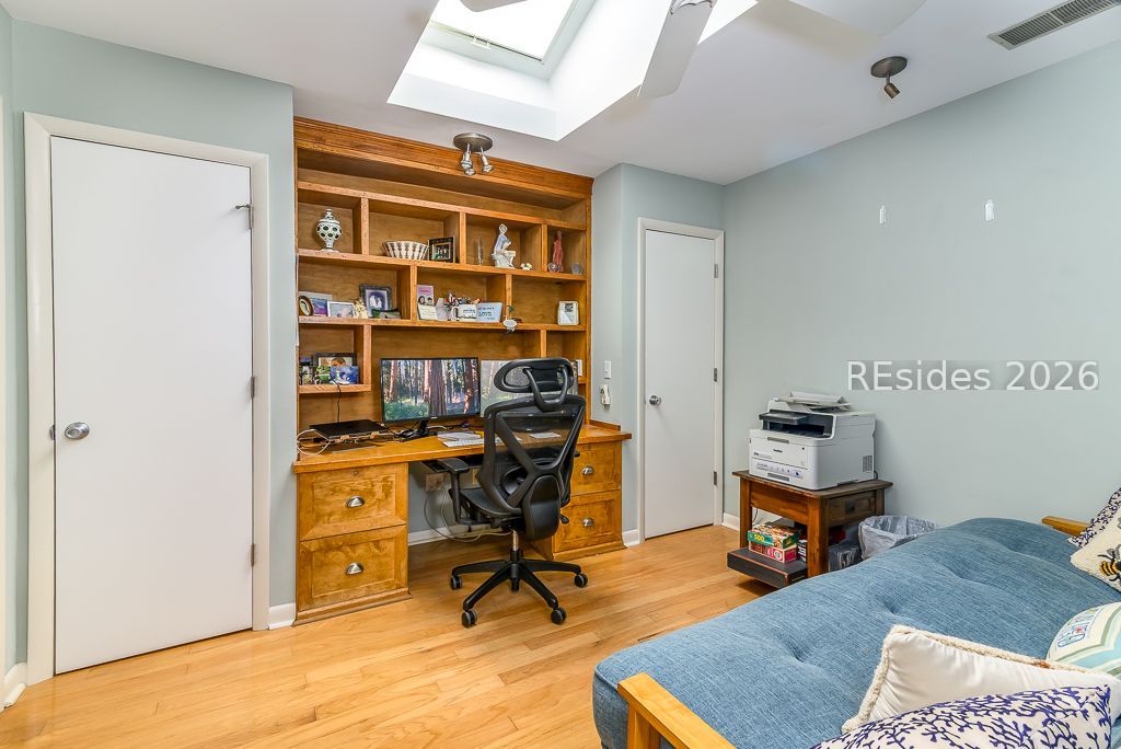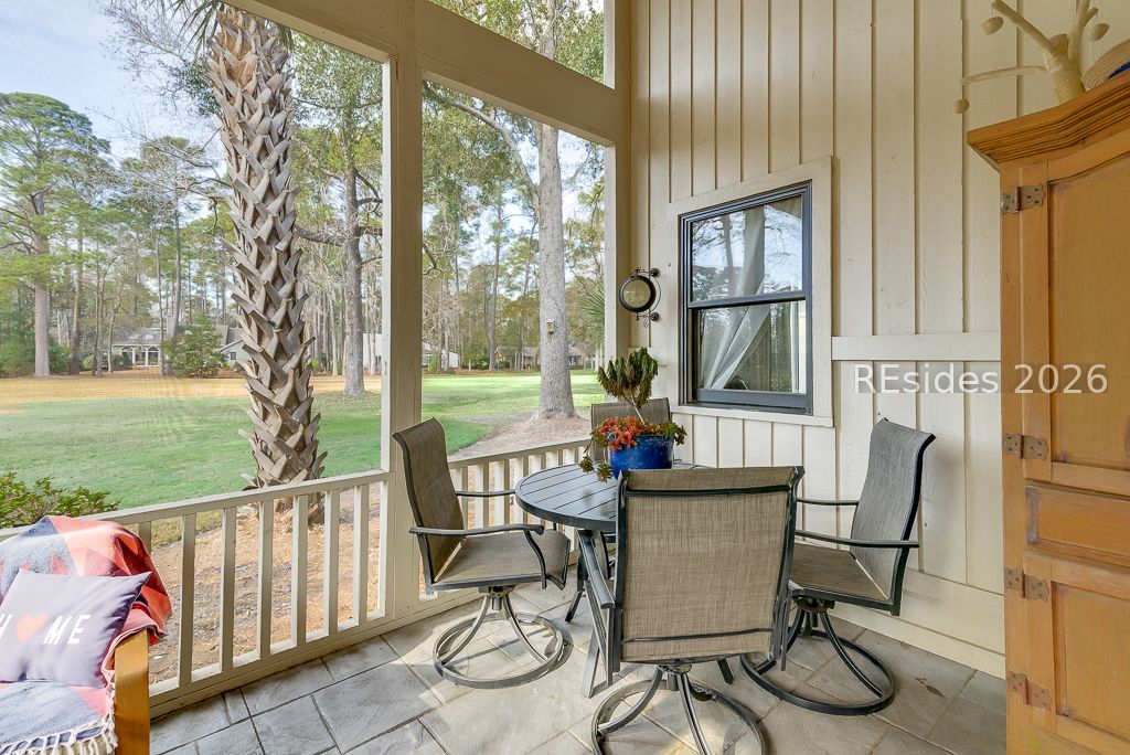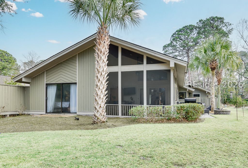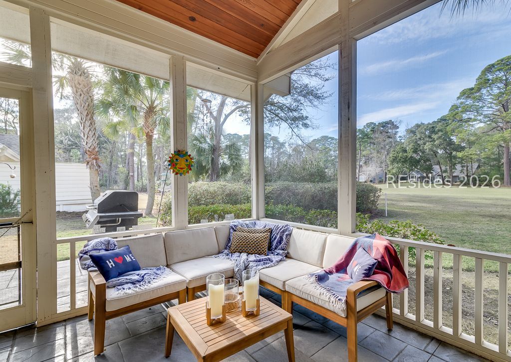 Move in ready home offering relaxed Island style balanced with polished aesthetic, including inviting color palette. This open flow three bedroom home includes a home office/flex space (great for overflow guests or studio) updated baths, shiplap acccents, decor lighting, sunny kitchen, stone counters, fireplace and smooth ceilings. The (hard to find) screen porch with high wood ceiling is the ideal spot for morning coffee or evening drinks overlooking the expansive golf view. Outdoor space includes a lovely paver patio for al fresco dining and a private outdoor shower. The landscape has been updated with trees removed, sod and irrigation enhanced and expanded concrete driveway. A must see home, located in amenity rich Hilton Head Plantation, minutes from Dolphin Head Park. * Be sure to click link for professioal video.