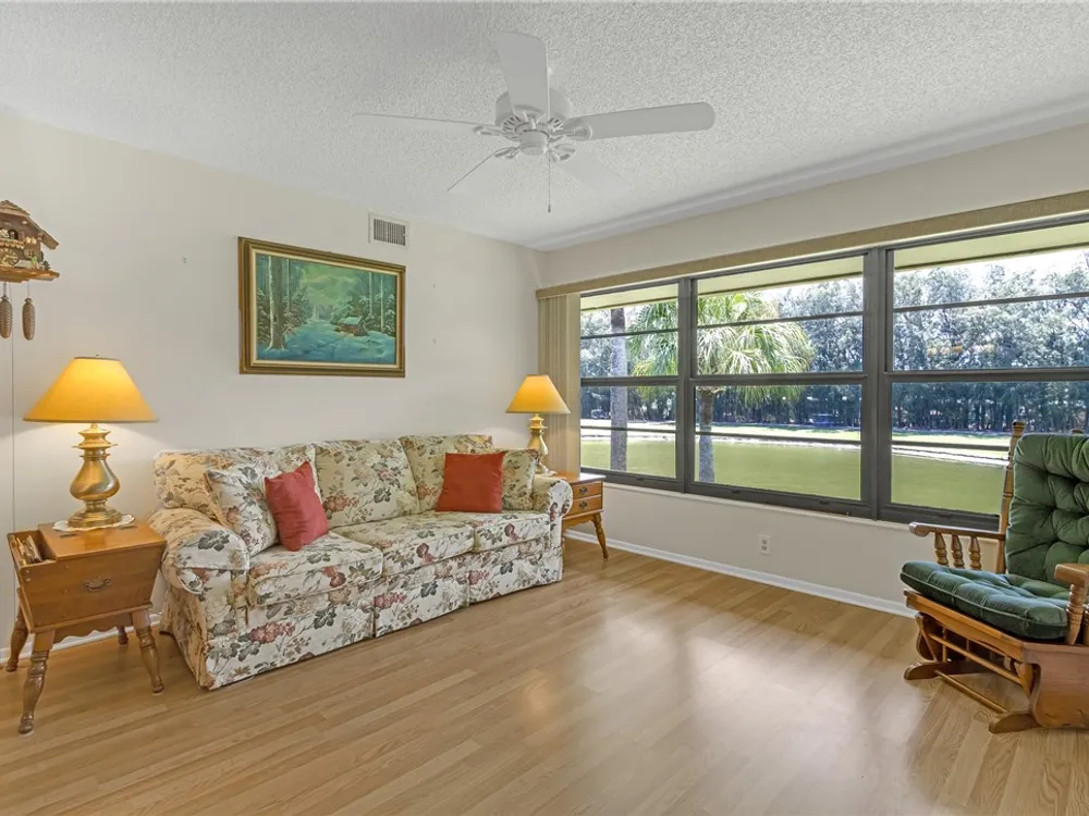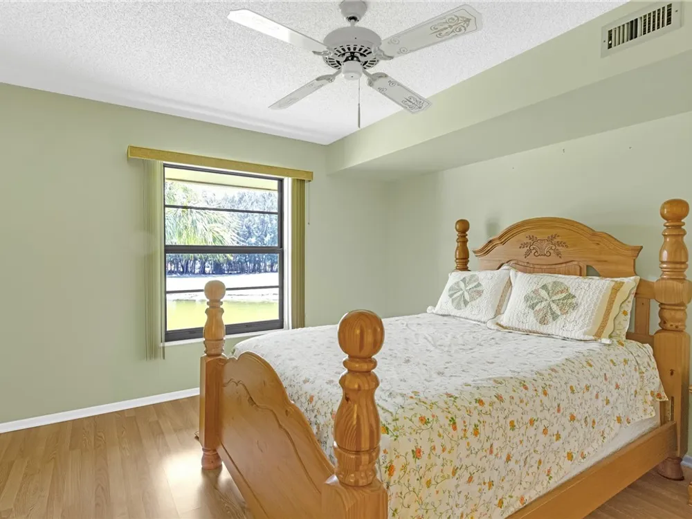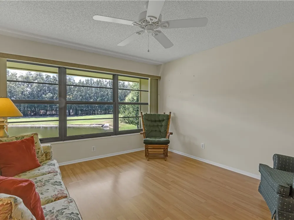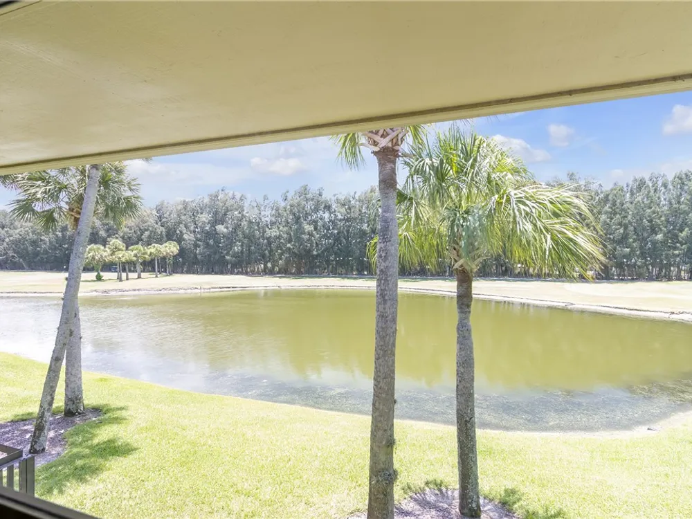 Come cozy up in this charming condo boasting picturesque lake and golf course views! Simply perfect for relaxing sunsets! Furnished-turnkey! Live in or make usage as a rental immediately! Spacious floor plan w/ oversized bedroom, HUGE walk-in closet, plus ex. storage & linen closet! Feel at home with tile & laminate floors throughout-easy to clean! Enjoy 2019 A/C, your own Washer/Dryer, impact windows, concrete walls and assigned covered parking! Dive into heated pools, pickle ball, bocce ball or 18-hole golf course & driving range-open to public! This gem is waiting for you to call it home!