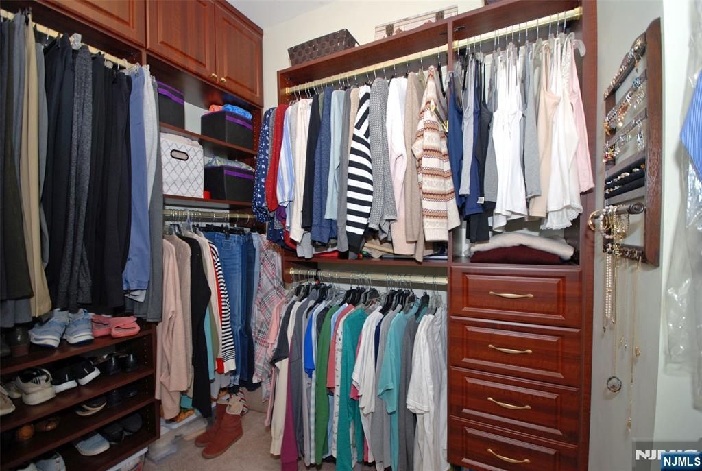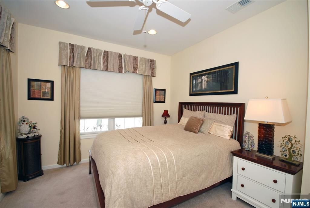 HIGHLY Desired GRENACHE Villa Style Home in a 55+ PREMIER GATED COMMUNITY! Everything is on one level offering an ideal layout of rooms with fantastic finishes throughout. Custom kitchen with light cabinetry, granite countertops, center island & 5-burner stove. Primary bedroom suite has a large sitting area (easily convertible to a separate den), double-sized walk-in closet (quality shelving/drawer solid wood organizers), luxurious bathroom & 2nd deck. Featuring upscale lighting, amazing ceilings, hardwood floors (also under DR/LR carpet), plantation shutters & new hot water heater/AC condenser. Relax & enjoy outdoor space on the deck with sunset views. Convenient access through a private two-car garage plus two spots in driveway. Resort style living with a 25,000 sq. ft. clubhouse and BEST amenities: indoor/outdoor pool, tennis/pickleball, putting/driving, fitness center, card rooms/Mahjong, ballroom, activities & clubs. Bordering Upper Montclair with great restaurants, theaters, shops, boutiques. Short distance to NYC Bus & train station. Truly, a wonderful lifestyle!