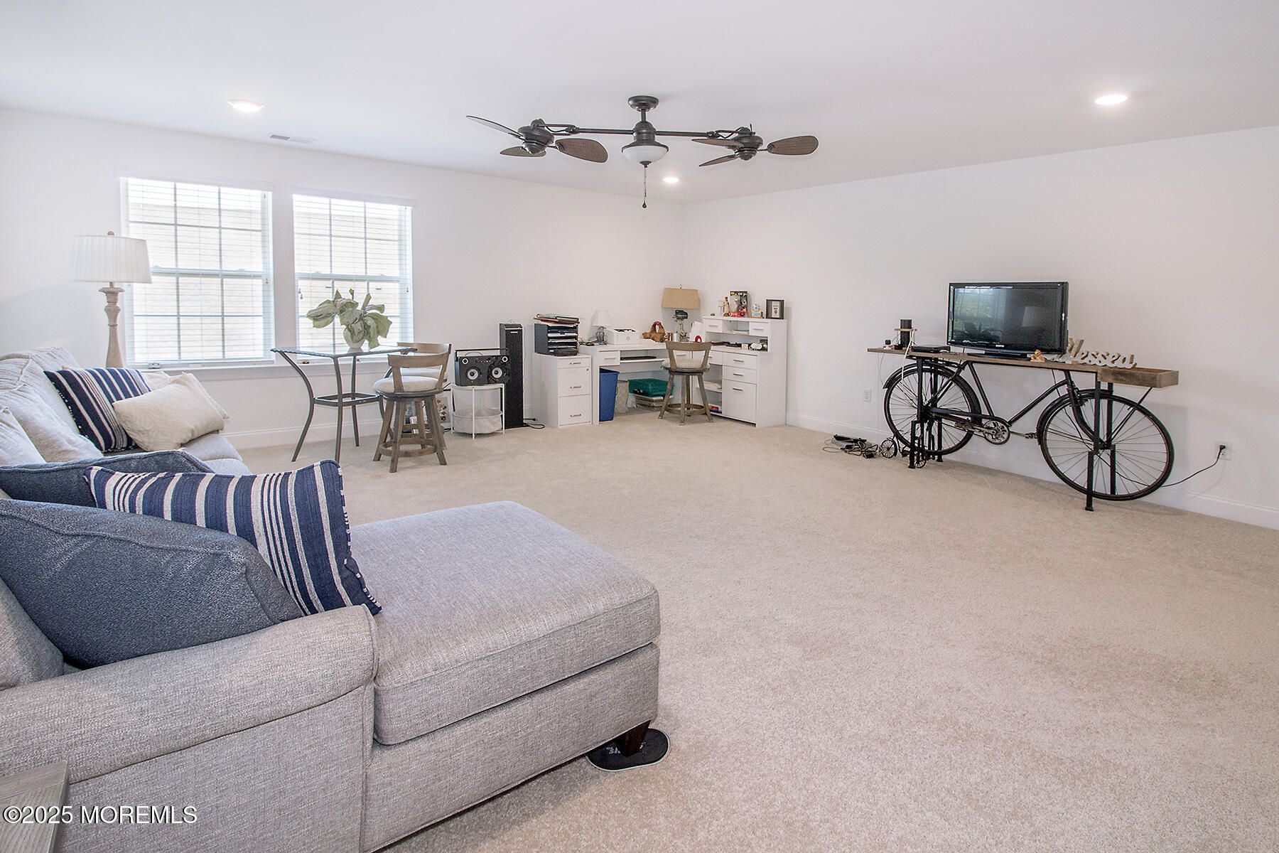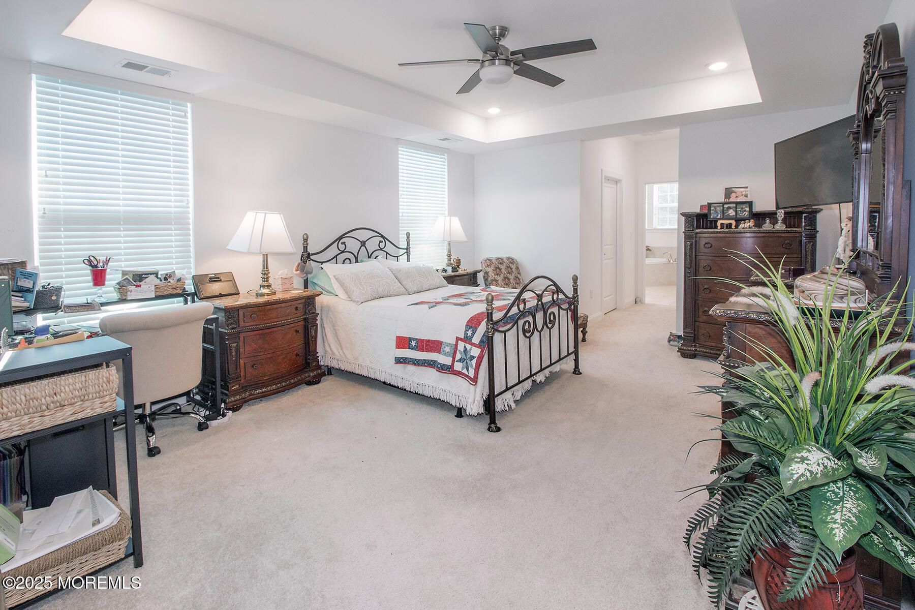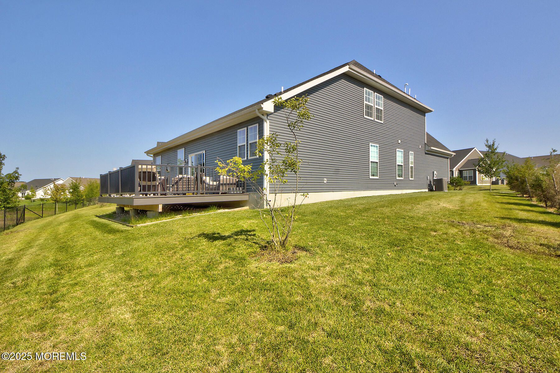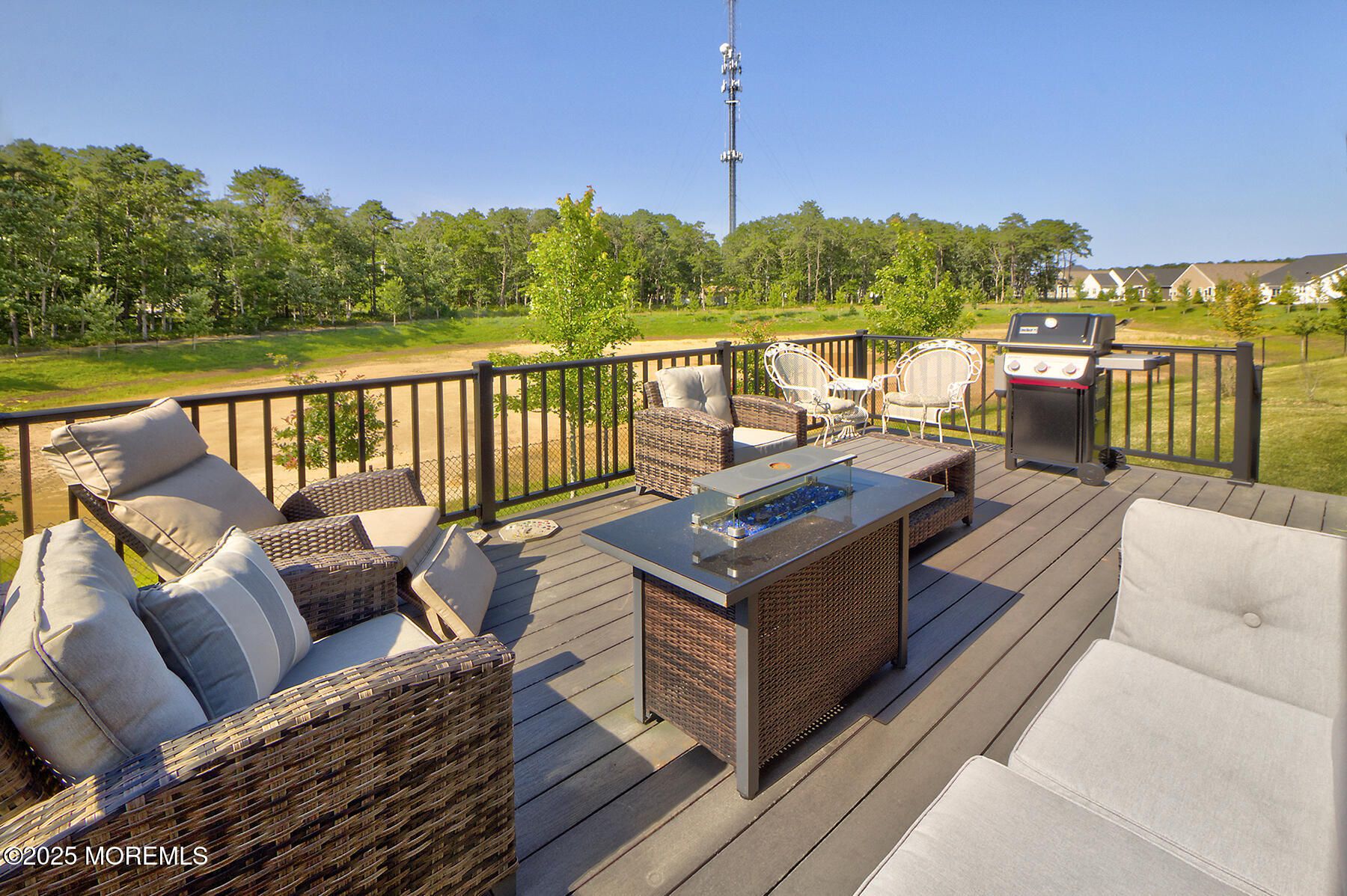 Experience effortless coastal living in this beautifully designed single-family home in one of Barnegat's premier active adult communities. Built in 2022, this 3-bedroom, 3.5-bath Belmont Model home is the largest model in the community and blends modern comfort with timeless style—perfect for those seeking low-maintenance living with luxury finishes and a strong sense of community. From the moment you arrive, you'll be impressed by the home's charming coastal curb appeal, featuring shake siding, stone accents, manicured landscaping, and a spacious two-car garage. Step inside to a bright and airy open-concept layout, where soaring ceilings and sun-filled living spaces create an inviting atmosphere. The great room flows seamlessly into the formal dining area and gourmet kitchen, making it an ideal space for entertaining. The kitchen is a chef's dream, offering granite countertops, stainless steel appliances, a large center island with seating, a stylish glass tile backsplash, under-cabinet lighting, and designer finishes throughout. Just off the main living space, a composite deck offers the perfect outdoor retreat. With a freestanding fireplace and serene views of the natural landscape behind the home, it's a peaceful setting for morning coffee or evening gatherings with friends. The first floor includes two spacious bedrooms, including a well-appointed primary suite with ample closet space and a luxurious en-suite bath. A cozy front den provides a quiet space to read, work, or relax. Upstairs, you'll find a third bedroom along with a large loft that can serve as a guest suite, home office, or media room. Venue at Lighthouse Station offers resort-style amenities designed for an active and social lifestyle. Residents enjoy access to a sparkling pool, a fully equipped fitness center, a welcoming clubhouse, and sports courts. HOA dues cover lawn maintenance, snow removal, and use of all amenities, allowing you to spend less time on chores and more time enjoying life. Centrally located at the Shore, this home is just minutes from beautiful Jersey Shore beaches, Barnegat Bay, quaint local restaurants, shopping, and the Garden State Parkway for easy travel up and down the coast. Don't miss your opportunity to enjoy modern living in one of Barnegat's most desirable 55+ communities. Schedule your private tour of 12 Samuel Drive today and discover the lifestyle you've been waiting for.